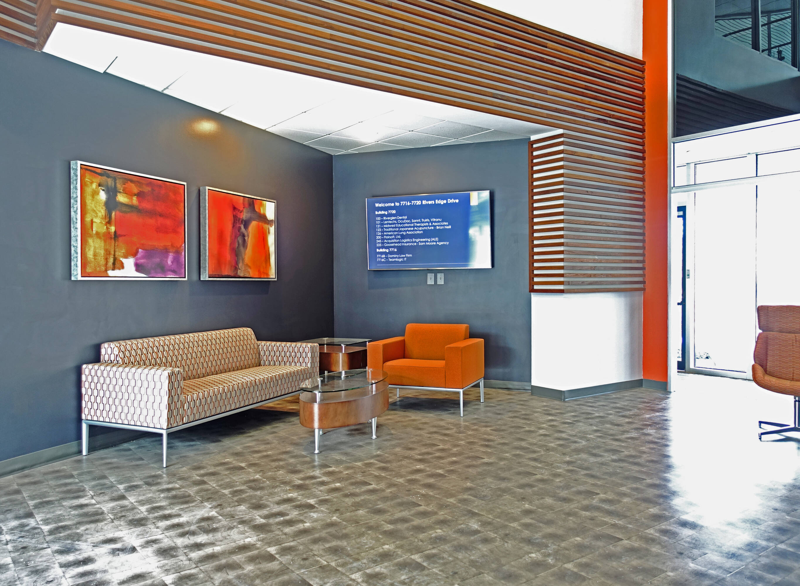 Multi-tenant office building with microsuites available for lease.