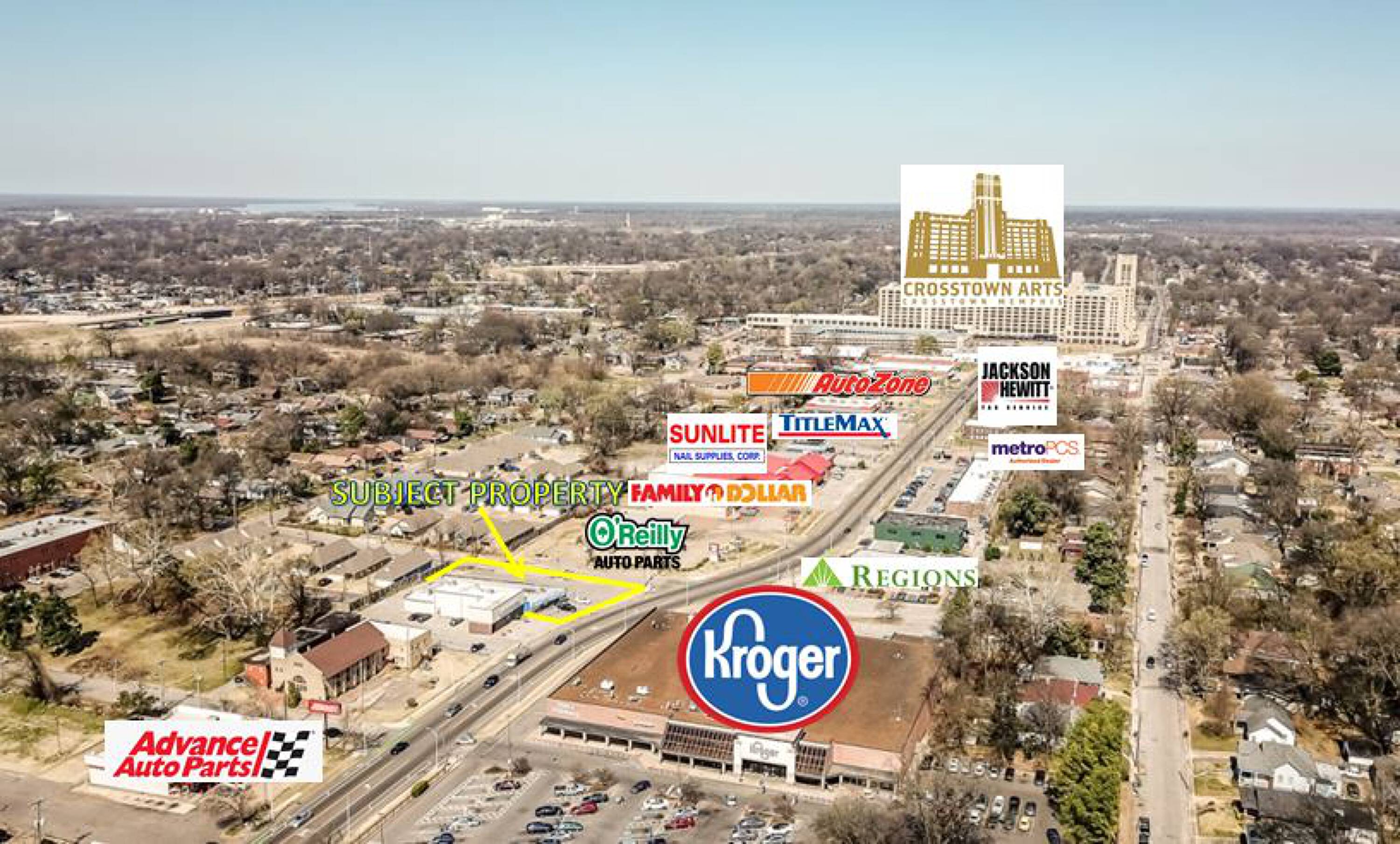 This 4,840-square-foot retail space is situated in a key retail district of Midtown, across the street from a Kroger location. The property is located just off the intersection with the Crosstown Concourse redevelopment, a local destination. The surrounding area features other national retailers.