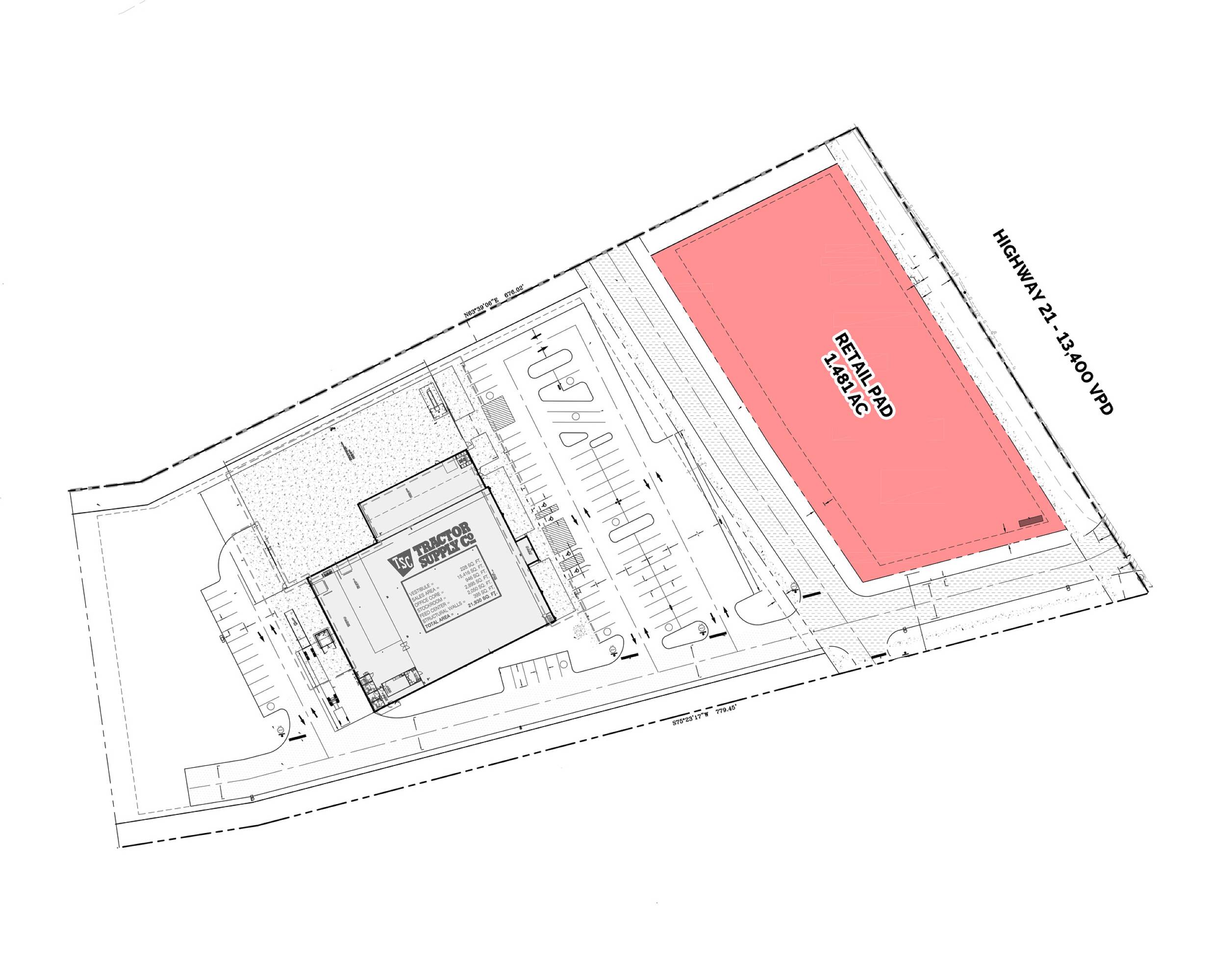 Pad-ready commercial land with high visibility and accessibility.