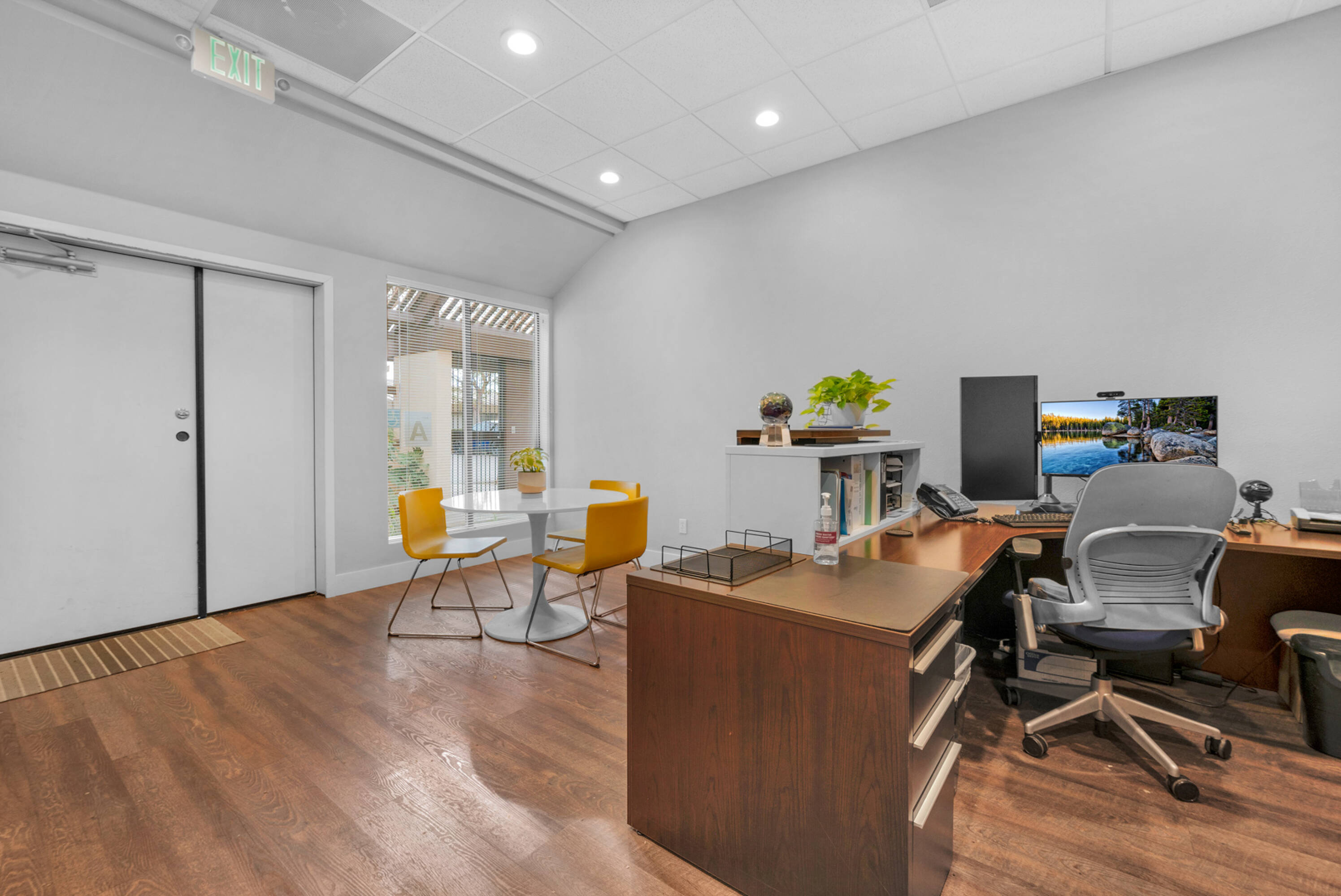Remodeled office suite with modern amenities and high-traffic location.