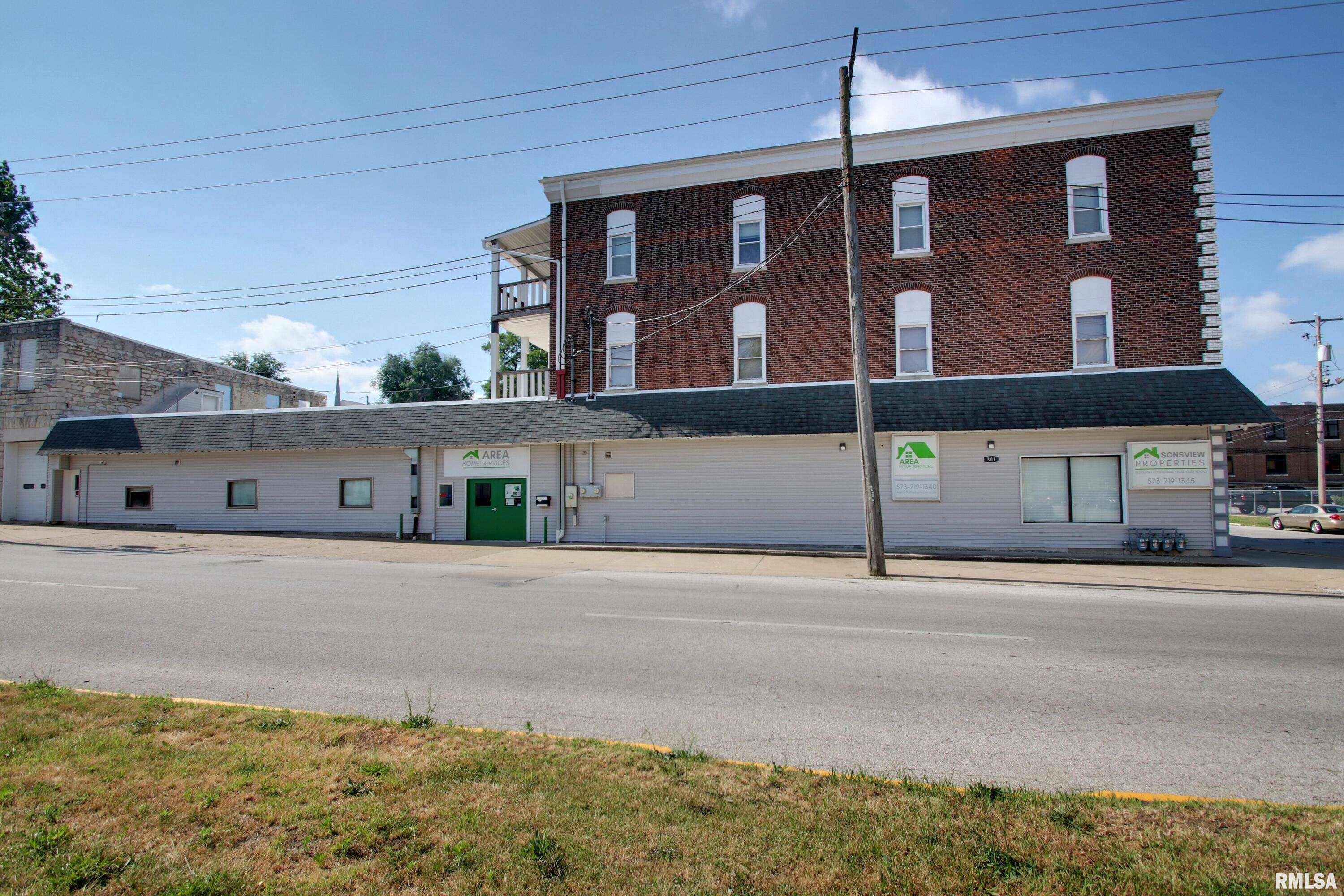 Versatile property with warehouse, office, and apartment income potential.