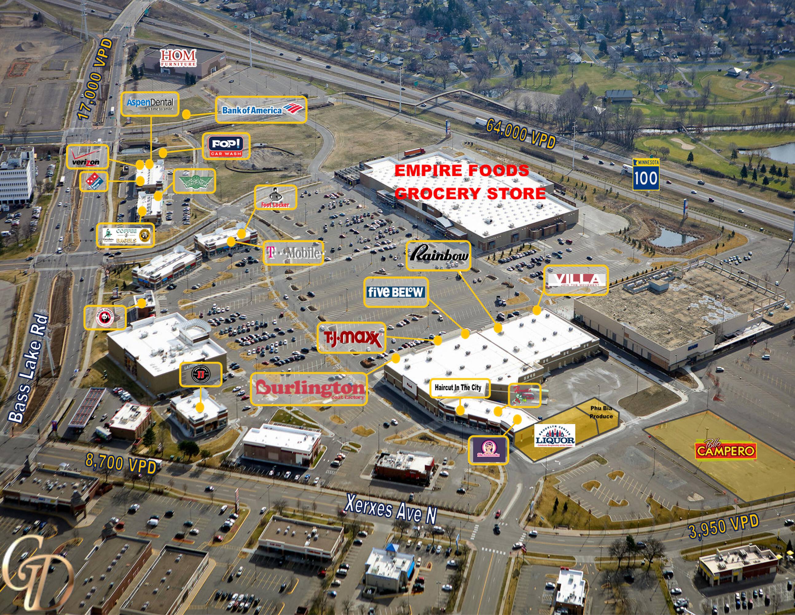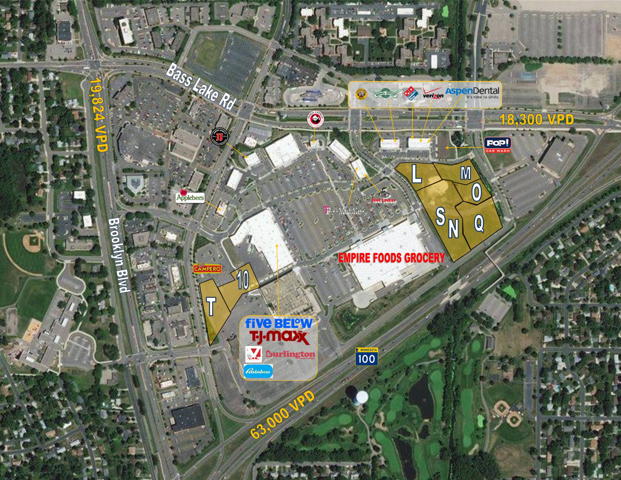Retail spaces available for lease in Brooklyn Center, MN.