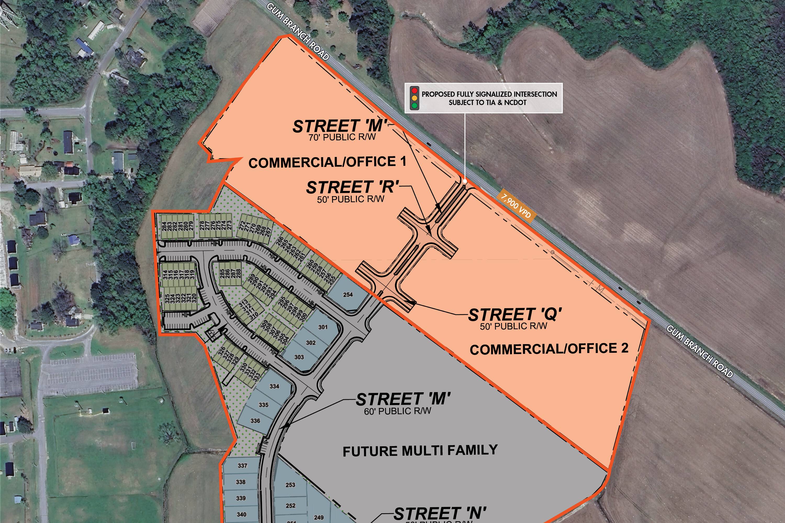 This property features: Located within a high‑growth corridor.; Adjacent to a future 750‑unit, mixed‑use master‑planned development.; **High visibility site along Gum Branch Road with 7,900 VPD.**
