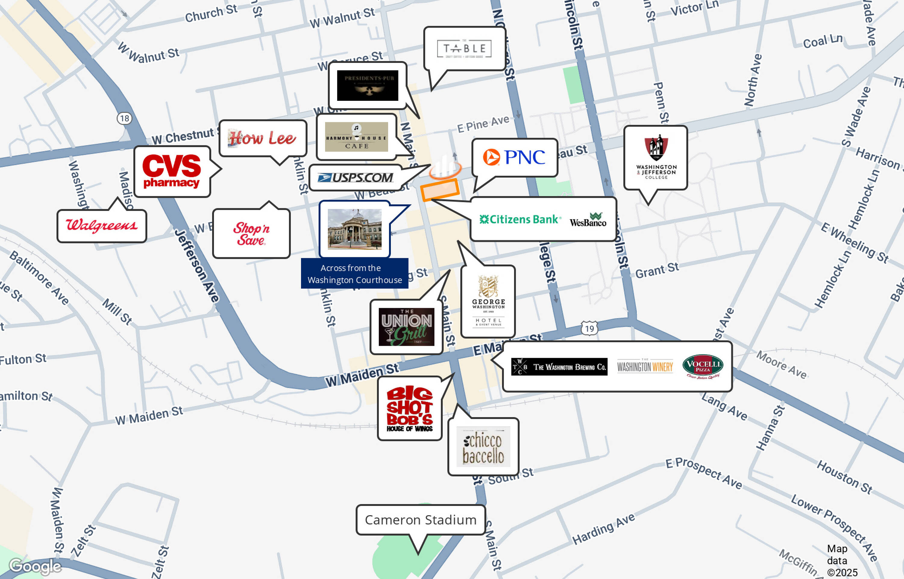 Prime office spaces for lease in downtown Washington, PA.