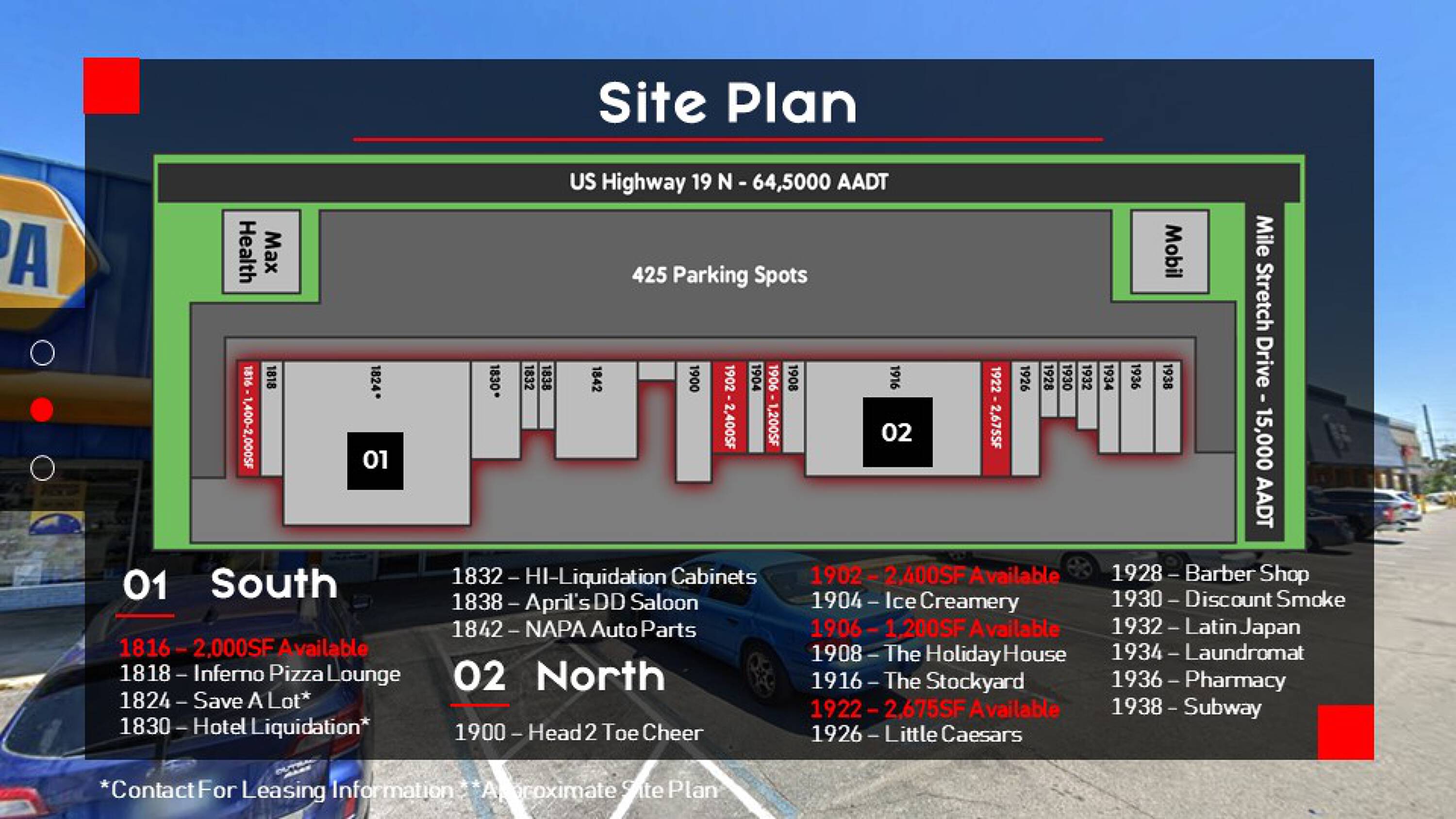 This property features: High‑traffic location at the intersection of US 19 and Mile Stretch near the Pinellas/Pasco county border.; NNN Triple Net leases offer a streamlined and comprehensive leasing experience.; Anchored by national tenants including Save‑a‑lot, NAPA Auto Parts, UPS, Little Caesars, and Subway.