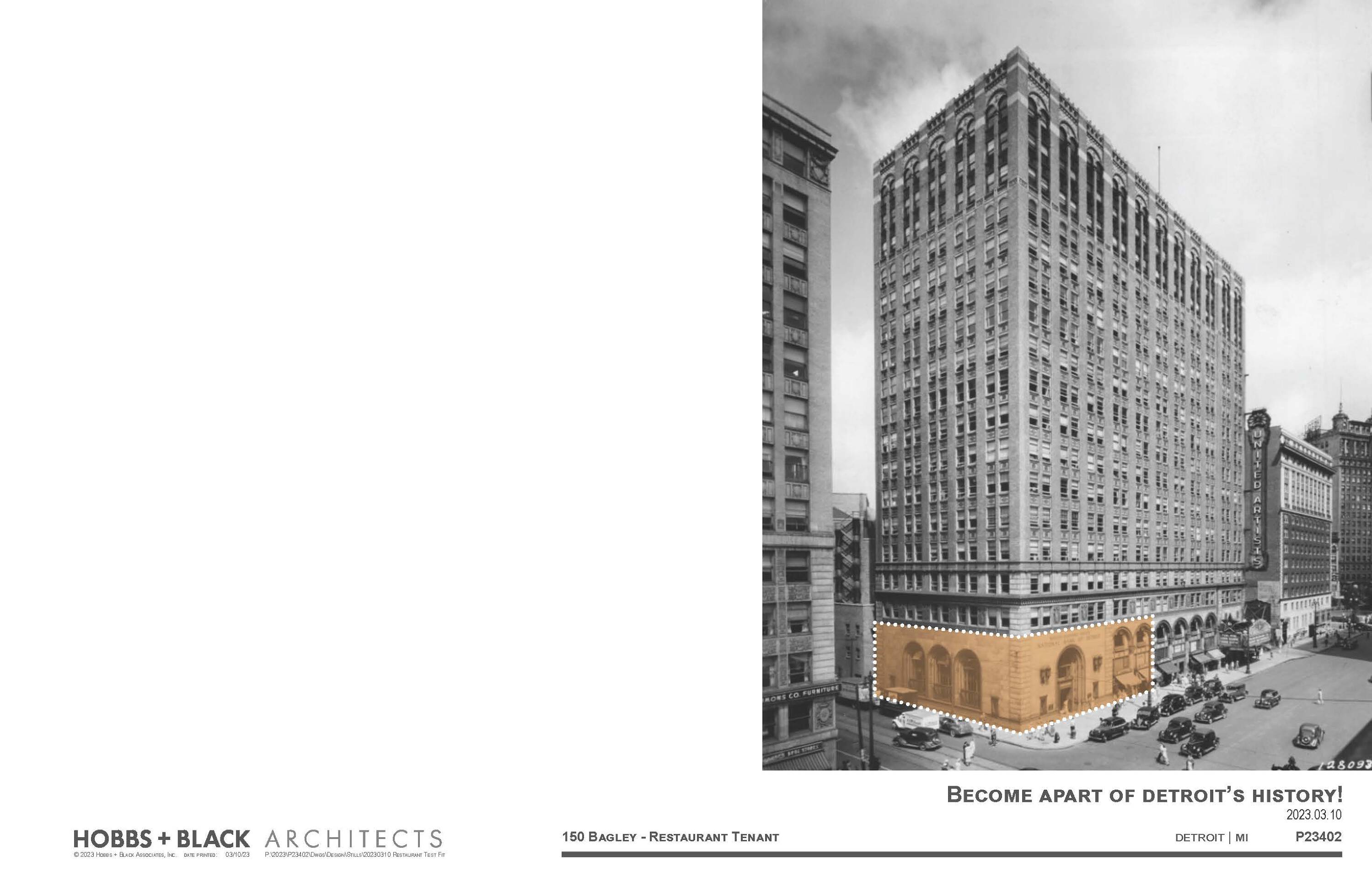 Restaurant and retail spaces for lease in Detroit, Michigan.