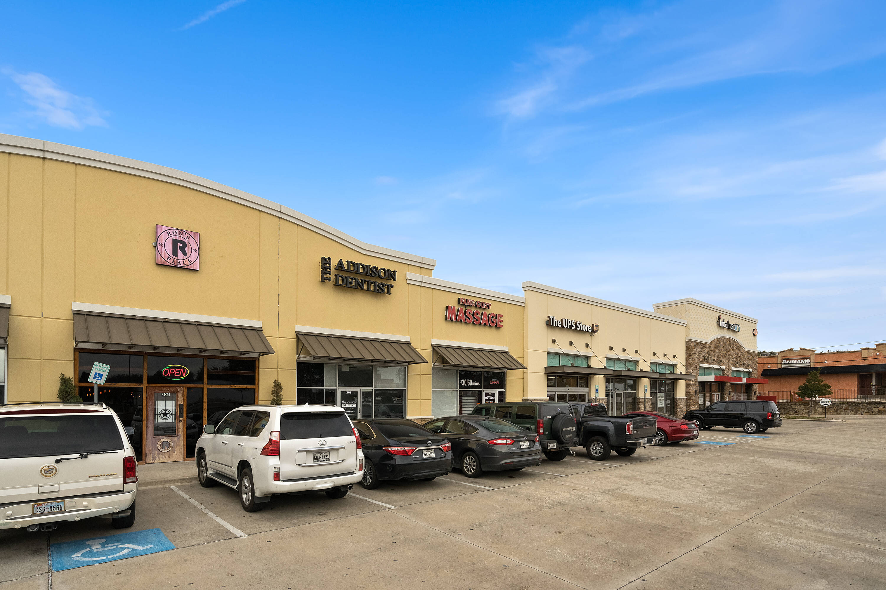 Strip mall - Retail spaces available in high-traffic Addison location.