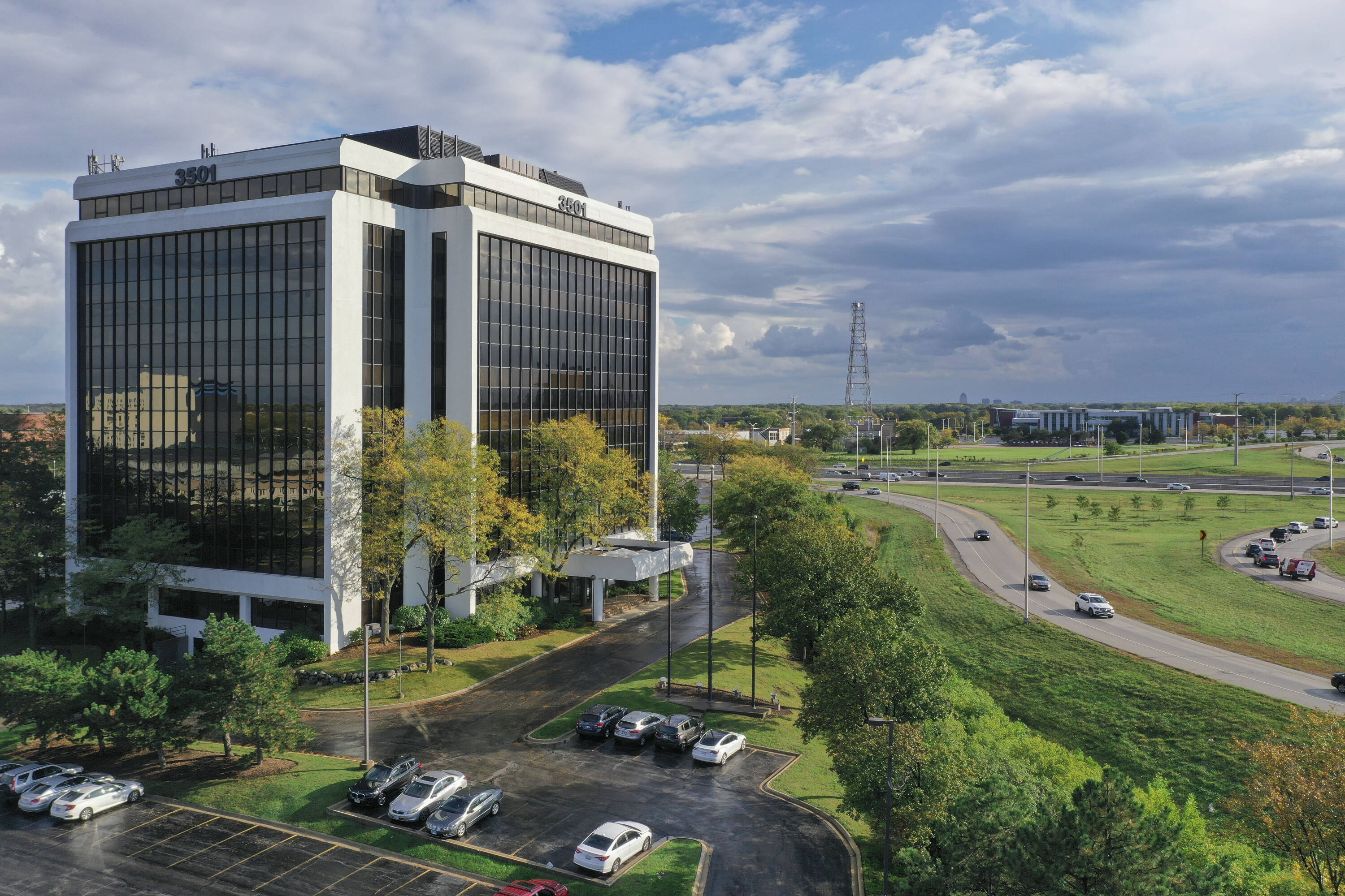 Ten-story office building in Rolling Meadows, Illinois available for lease.