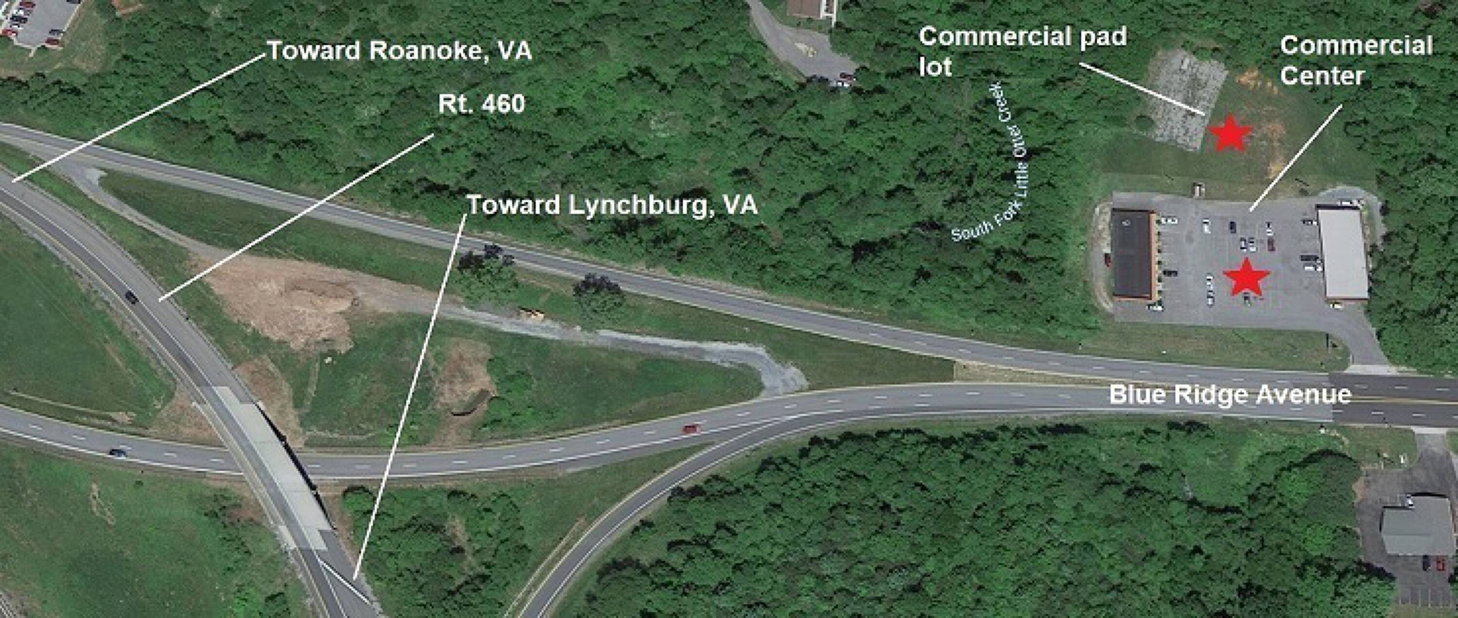 Two-building commercial center with expansion potential in Bedford, Virginia.