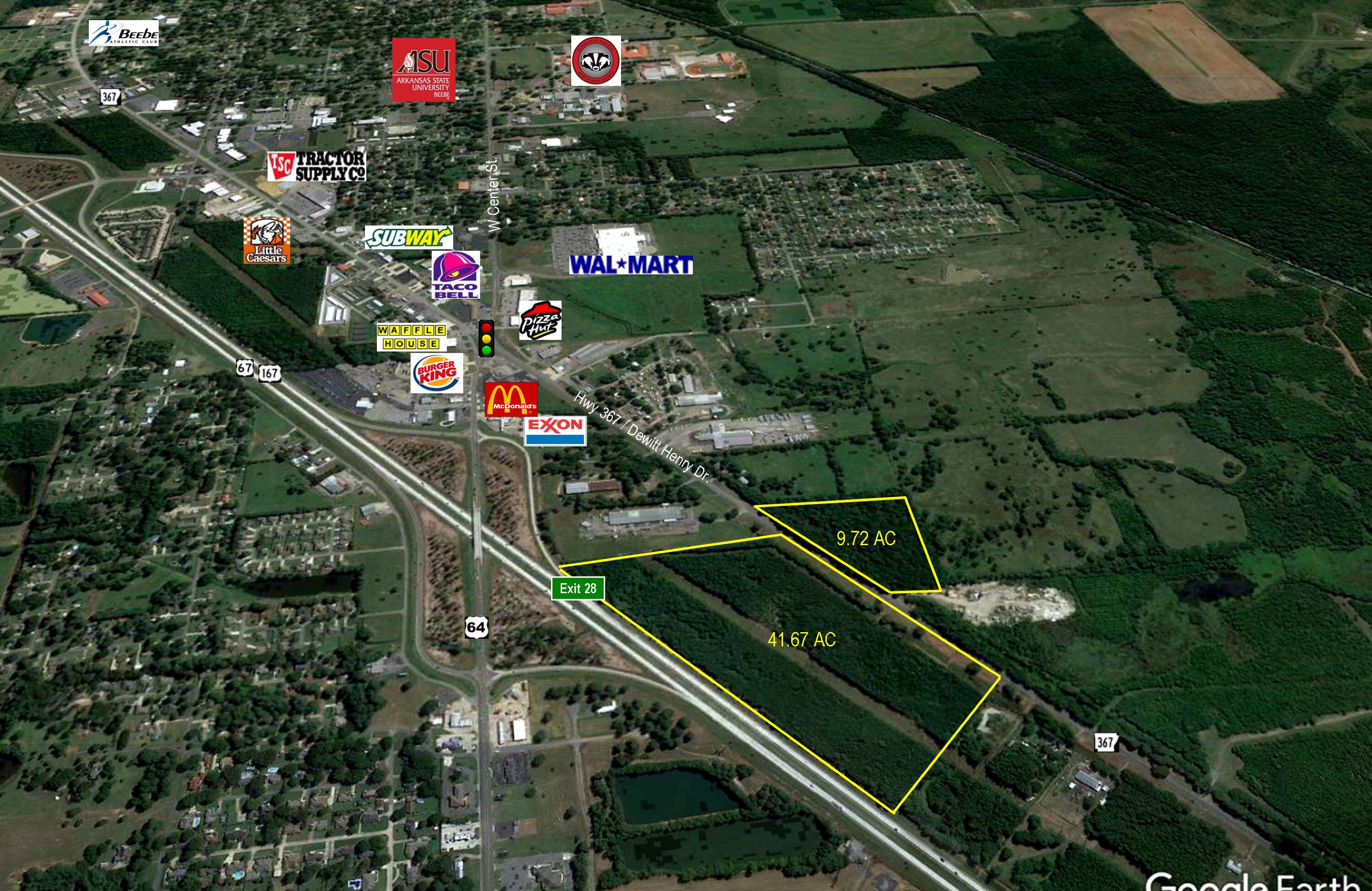 This property features: Prime location with superior visibility from Hwy 67/167 and future I‑57.; Fronts W. Dewitt Henry/Hwy 367 and backs up to freeway at Beebe Exit 28 (Hwy 64).; Excellent location for large commercial development, multi‑family, or industrial.