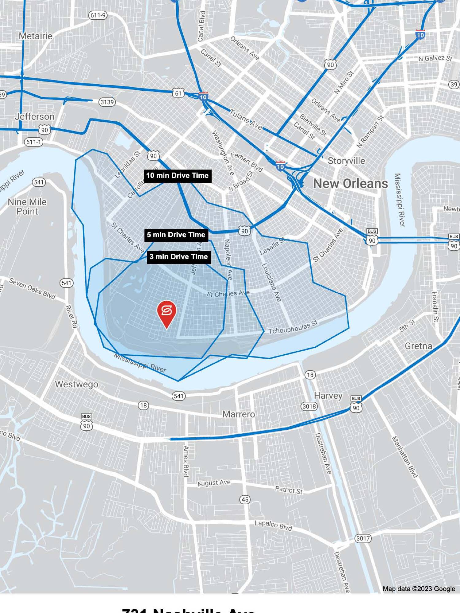 Free-standing commercial building near Magazine Street and Nashville Avenue.