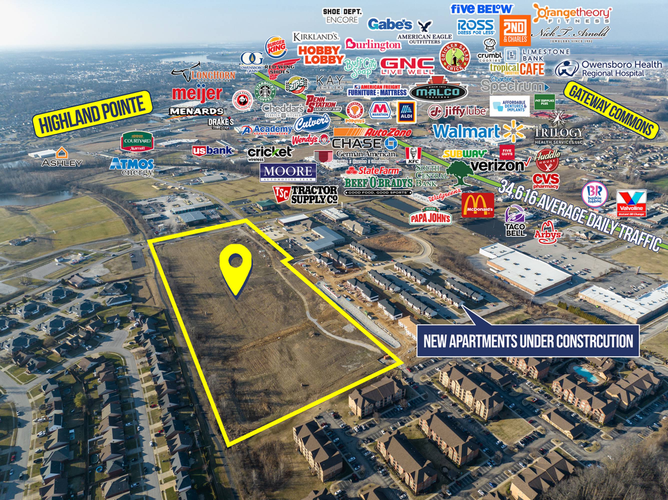 This property presents a prime investment opportunity to own approximately 16 acres of land. The site is cleared and ready for development. It is located next to the fastest-growing retail and business sector of Daviess County. The land will be subdivided at a price of $325,000 per acre.