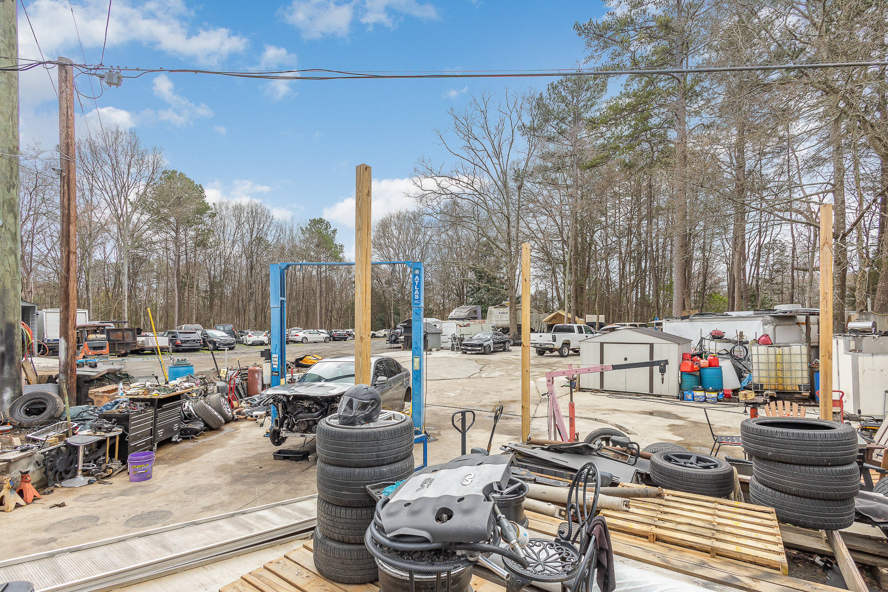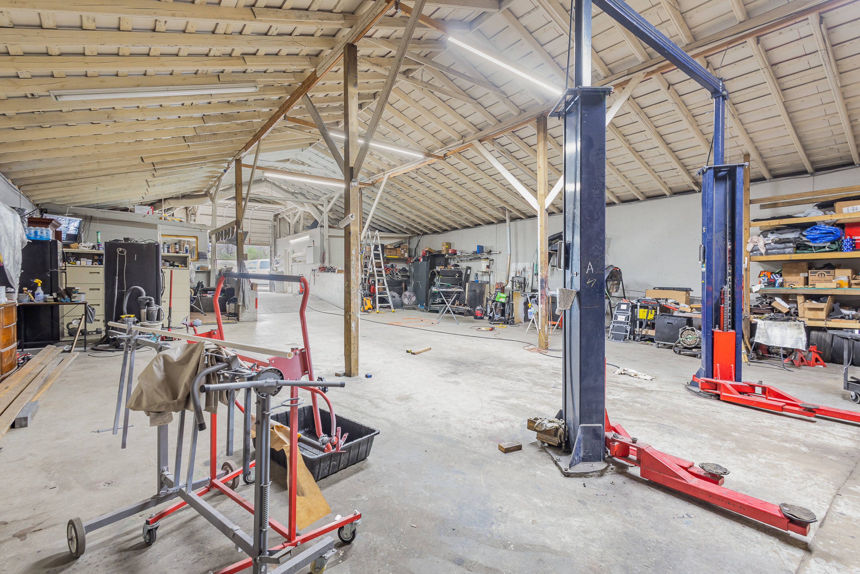 This property features: Prime location in Downtown Matthews with easy access to I‑485, restaurants, retail, and offices.; Large 8,000+ sq ft warehouse space with **17ft ceilings** suitable for automotive or other commercial uses.; Zoned R‑9 with grandfathering option for similar uses (automotive) allowed by the Town of Matthews.