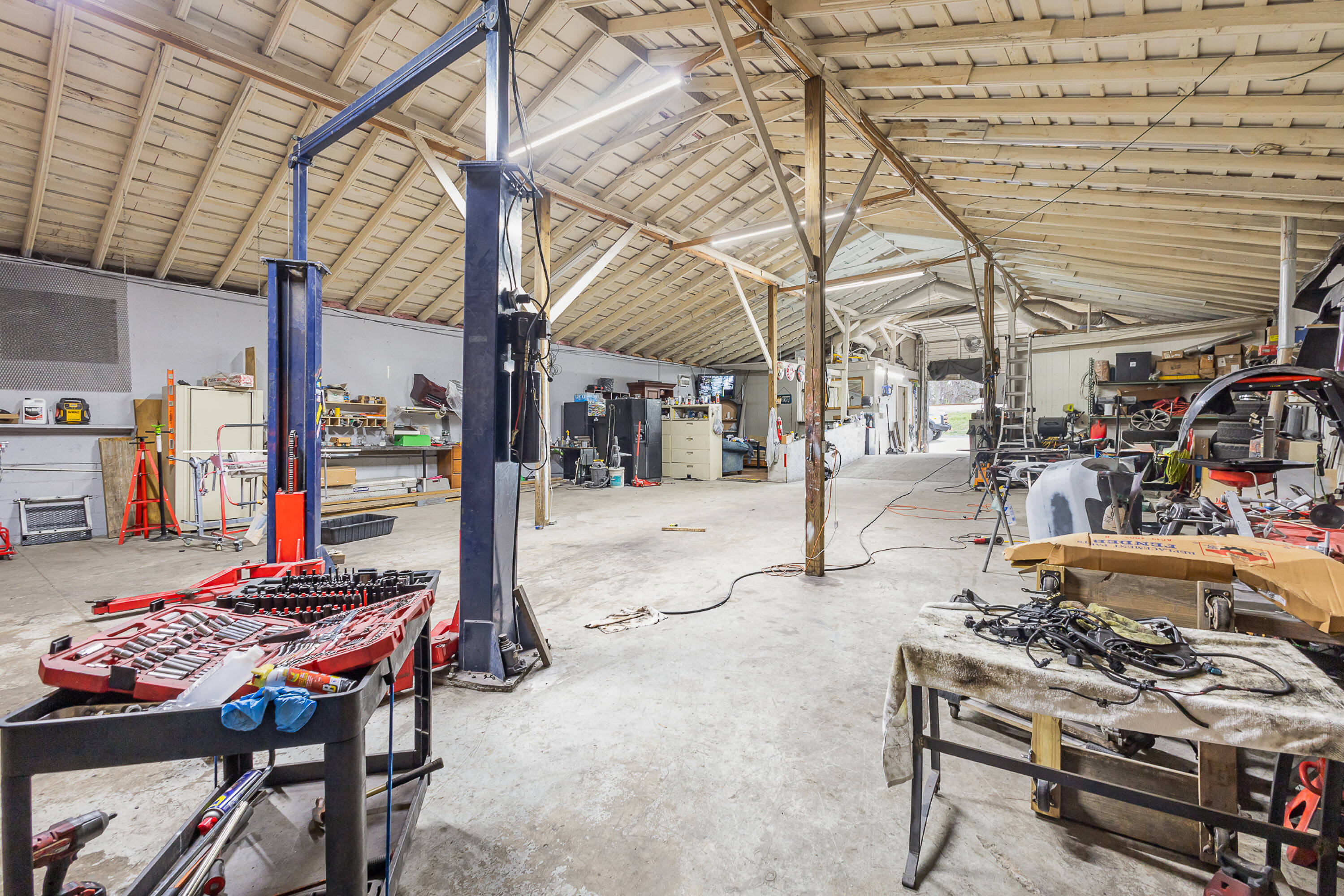 Located in Downtown Matthews, this property features an 8,023 square feet warehouse with over 17ft ceilings. Currently used for automotive and other commercial purposes, the property has upgraded LED lighting throughout. It also features ample parking, updated 2 Phase electrical, tankless water heaters, and central AC in each office. The property offers easy access to 485, restaurants, retail, and office spaces. The location is zoned R-9 with many acceptable uses, and the current automotive use may be grandfathered in with similar use, subject to the Town of Matthews approval. The property includes two parcels, 21504116 and 21504115, with CRC and R-9 zoning, respectively. The listing agent currently has 4 leases from $800-$2500, and rent can be increased. Tenants can stay or leave. The seller requires 30-60 days to move out. The neighbor at 534 E Charles Street, with .26 acres, is willing to sell, and the seller currently uses that space for parking.