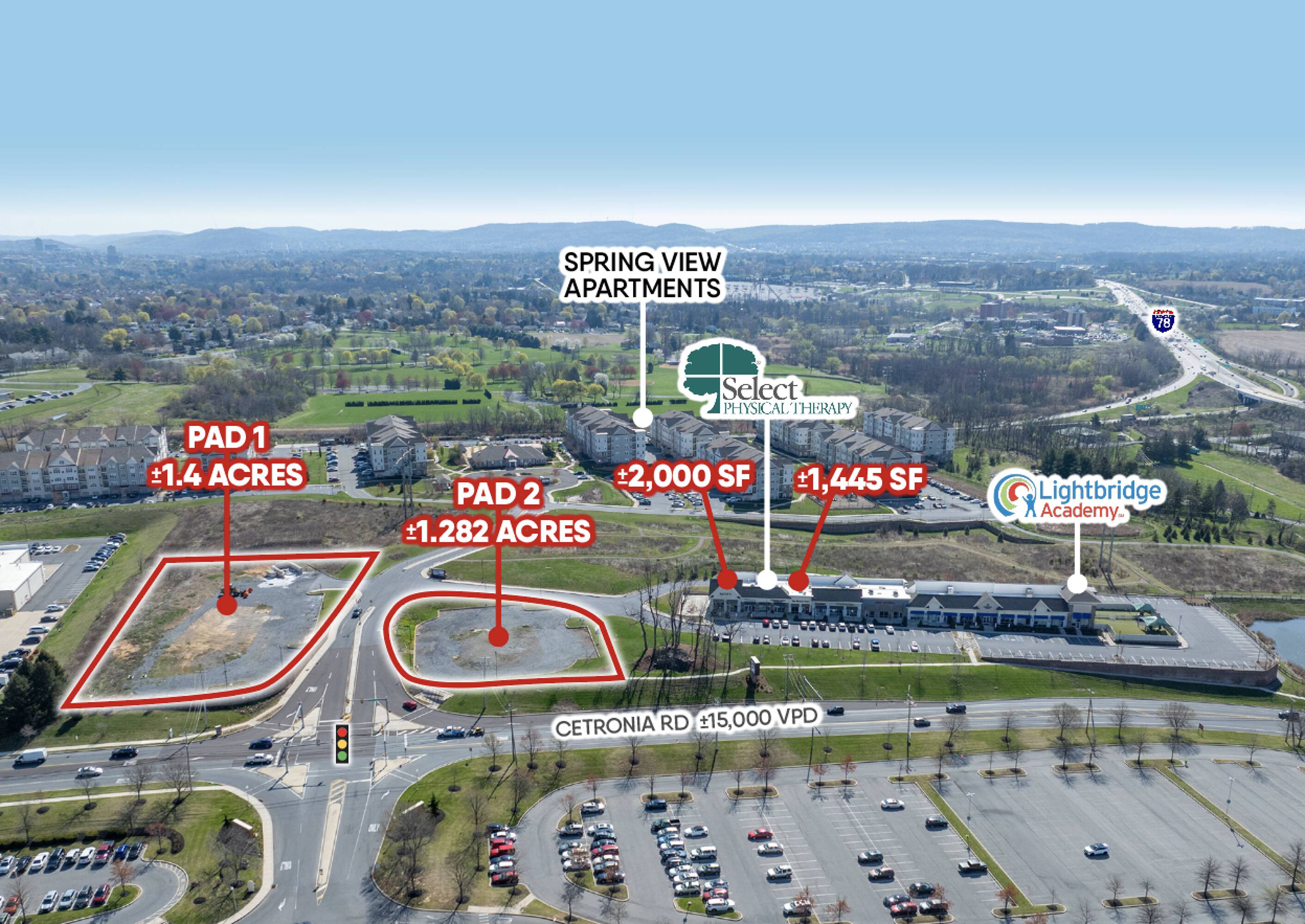 Retail and restaurant spaces available in a growing commercial area.