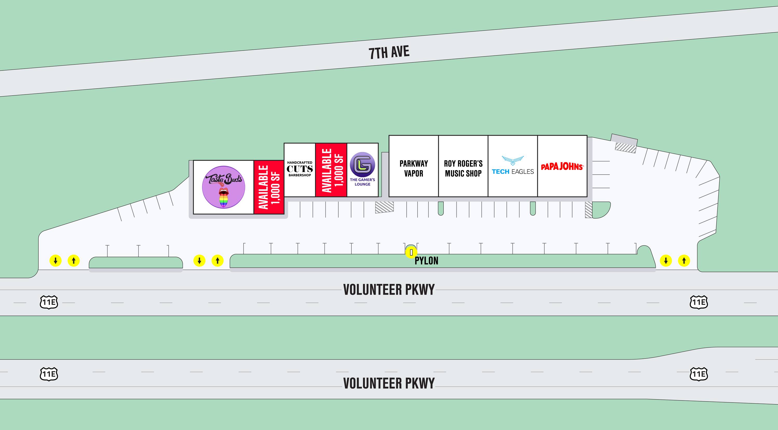 This property features: Located in a high‑traffic retail corridor with over 1 million SF within 1 mile.; Anchored by Papa John's.; High traffic count of 22,000+ CPD on Volunteer Parkway in front of the site.