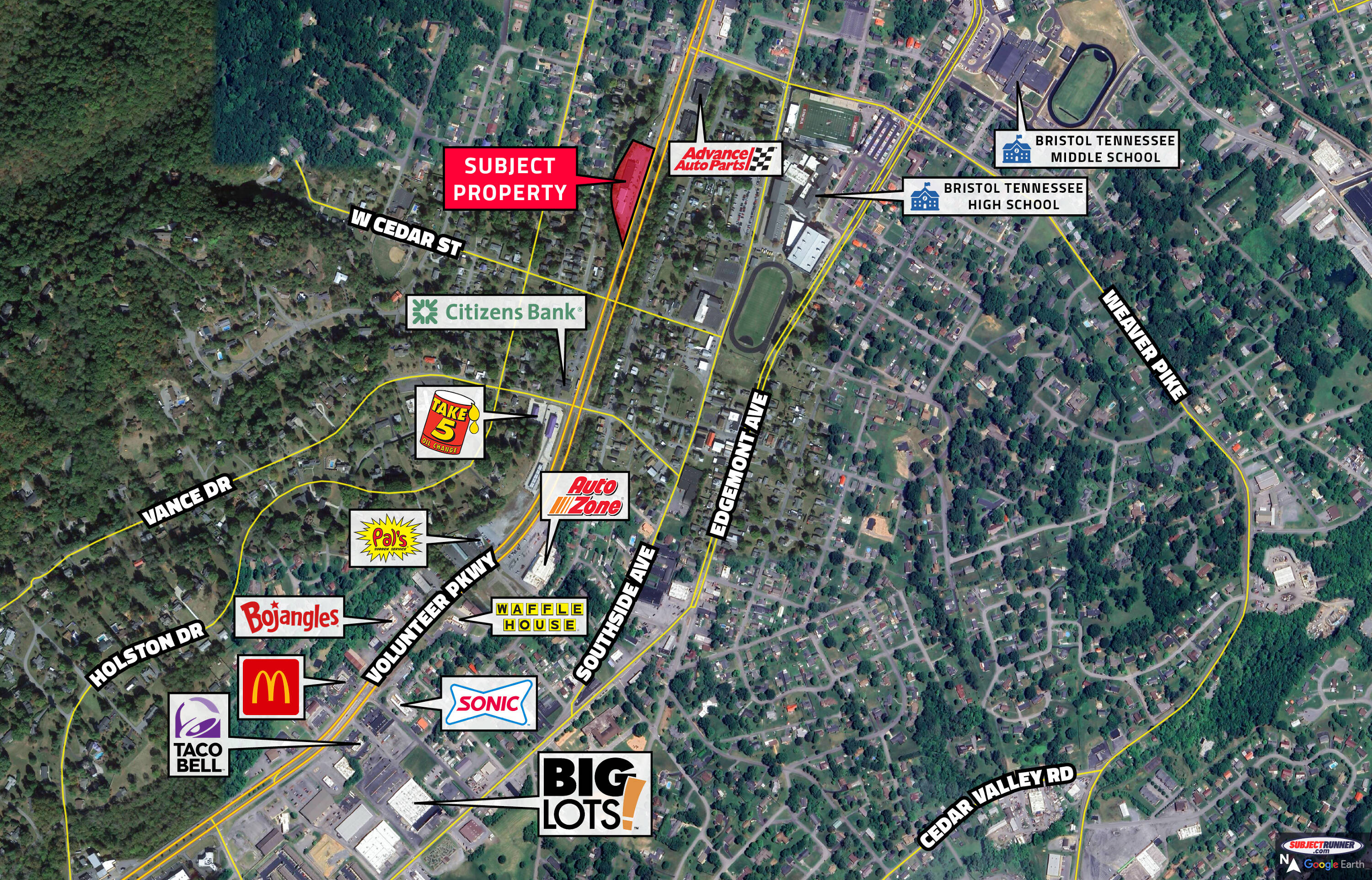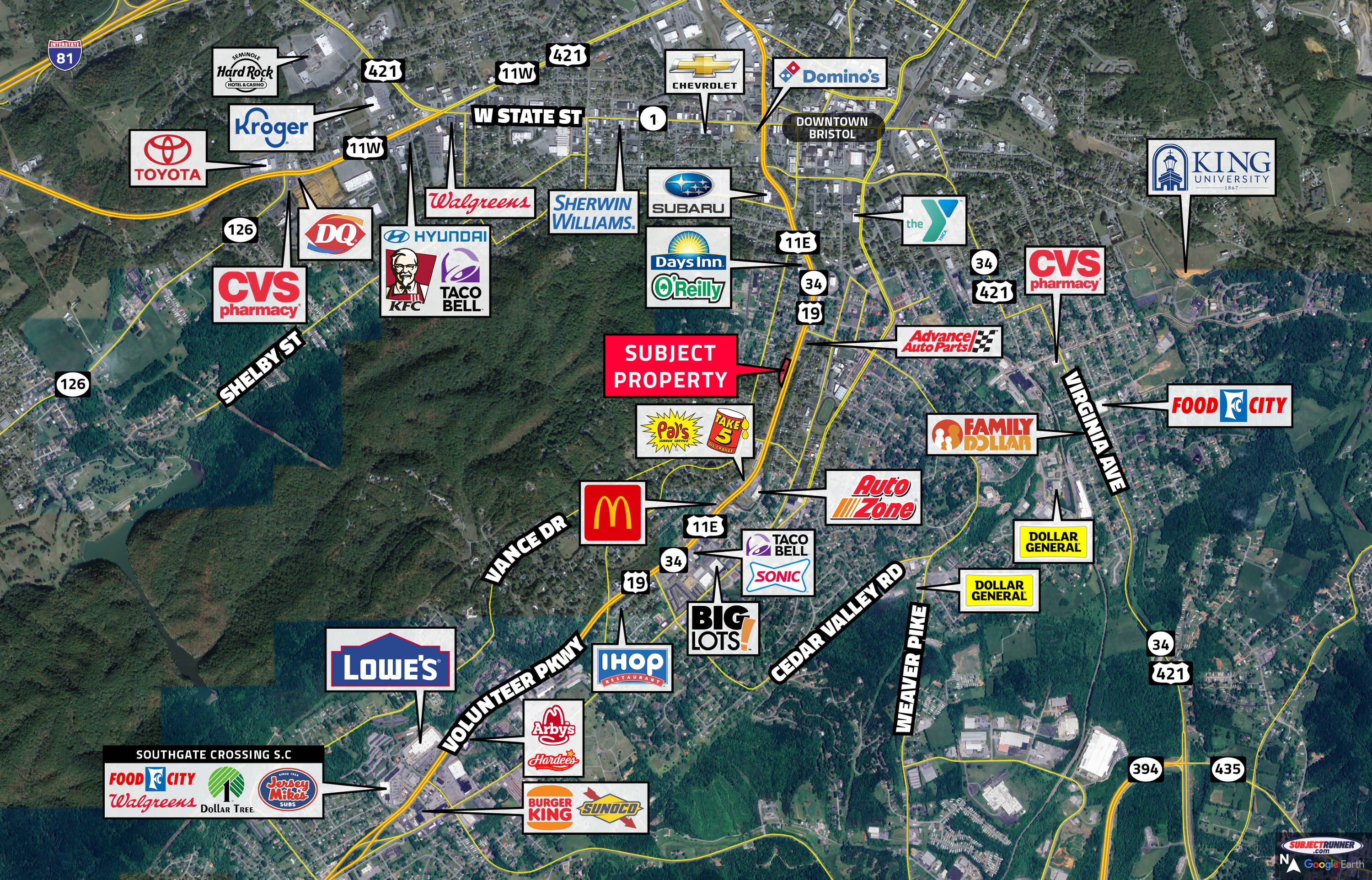 The property is located at 740 Volunteer Pkwy Bristol, TN.
