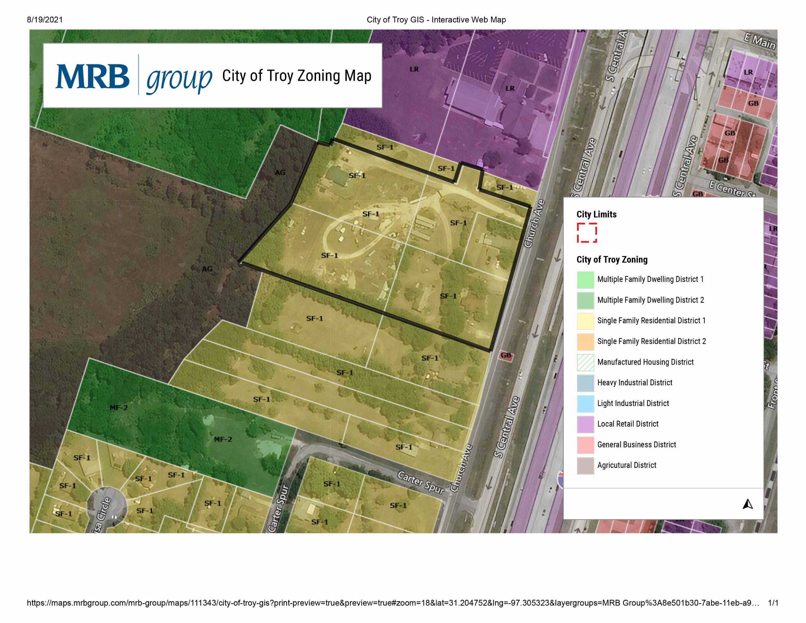 4.903 acres of commercial land in Troy, Texas.