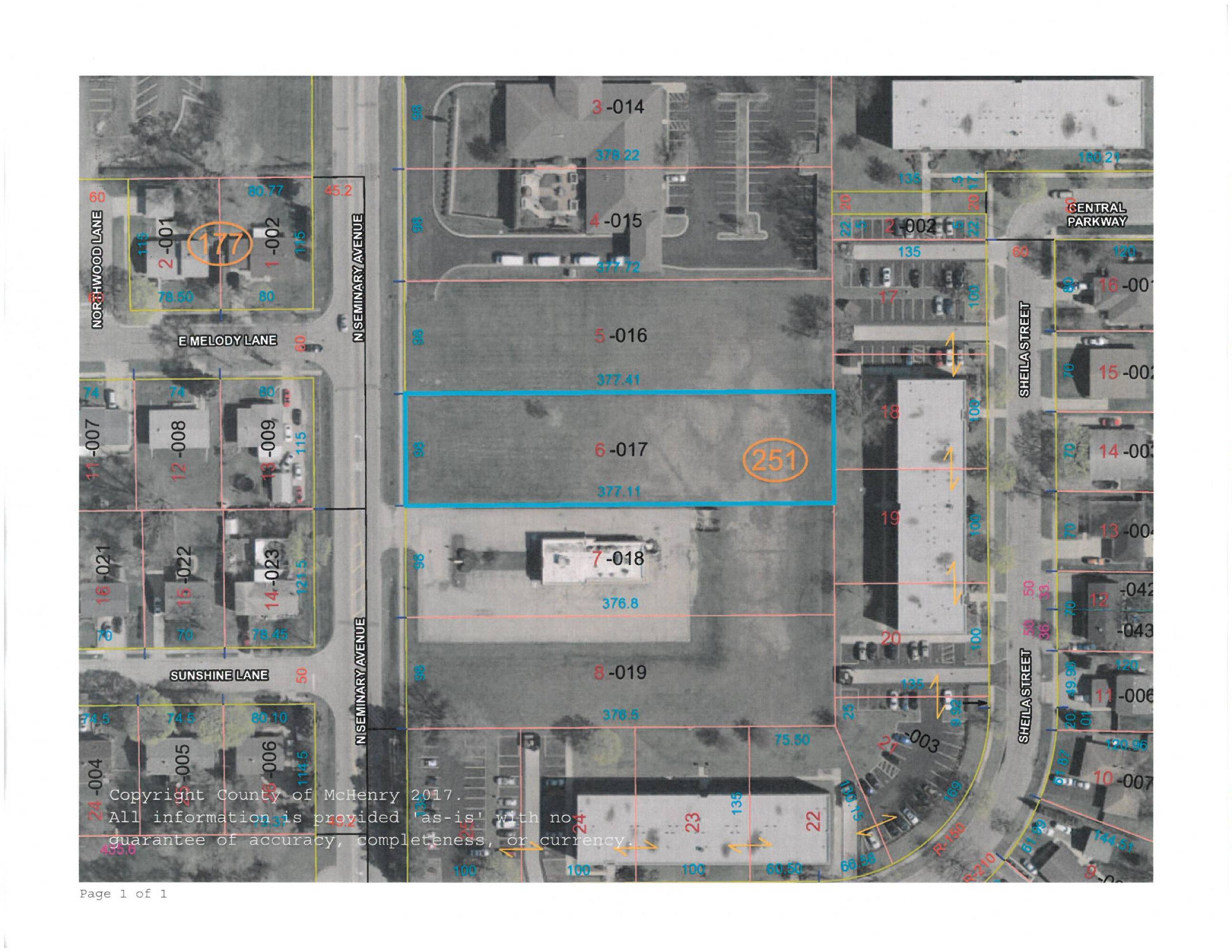 This 0.85-acre level lot features 98 feet of frontage on Seminary Avenue (Route 47), a busy road with a traffic volume of 16,400 vehicles per day. The property is situated just south of the McHenry County Courthouse. It is zoned B2 General Business District, allowing for multiple uses including retail, restaurant, professional office, medical, or mixed-use developments.