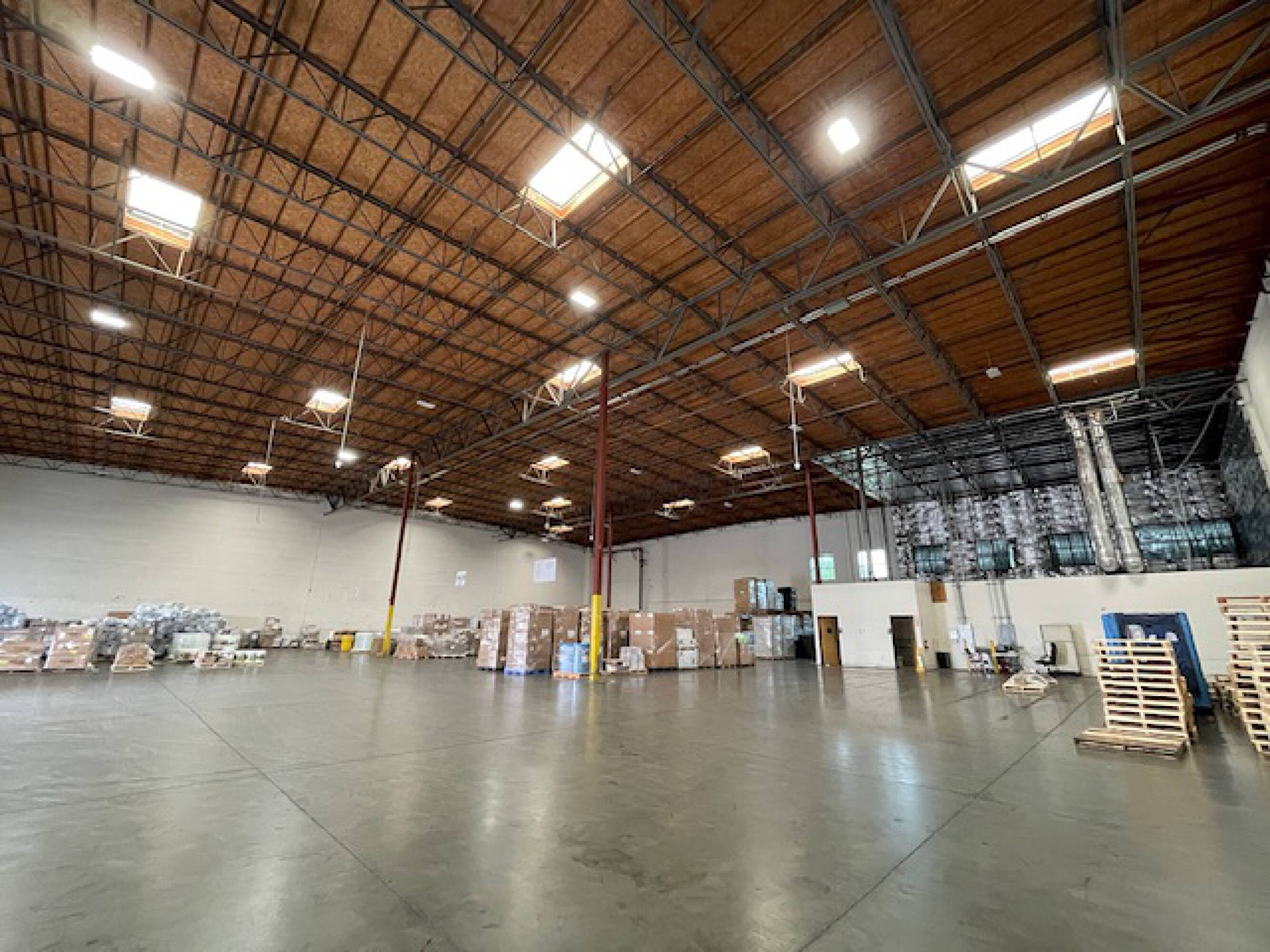 This property features: Strategic location near Ports of Long Beach and Los Angeles, rail services, and final‑mile distribution.; ESFR wet‑system for fire suppression.; 30’ minimum warehouse clear height.