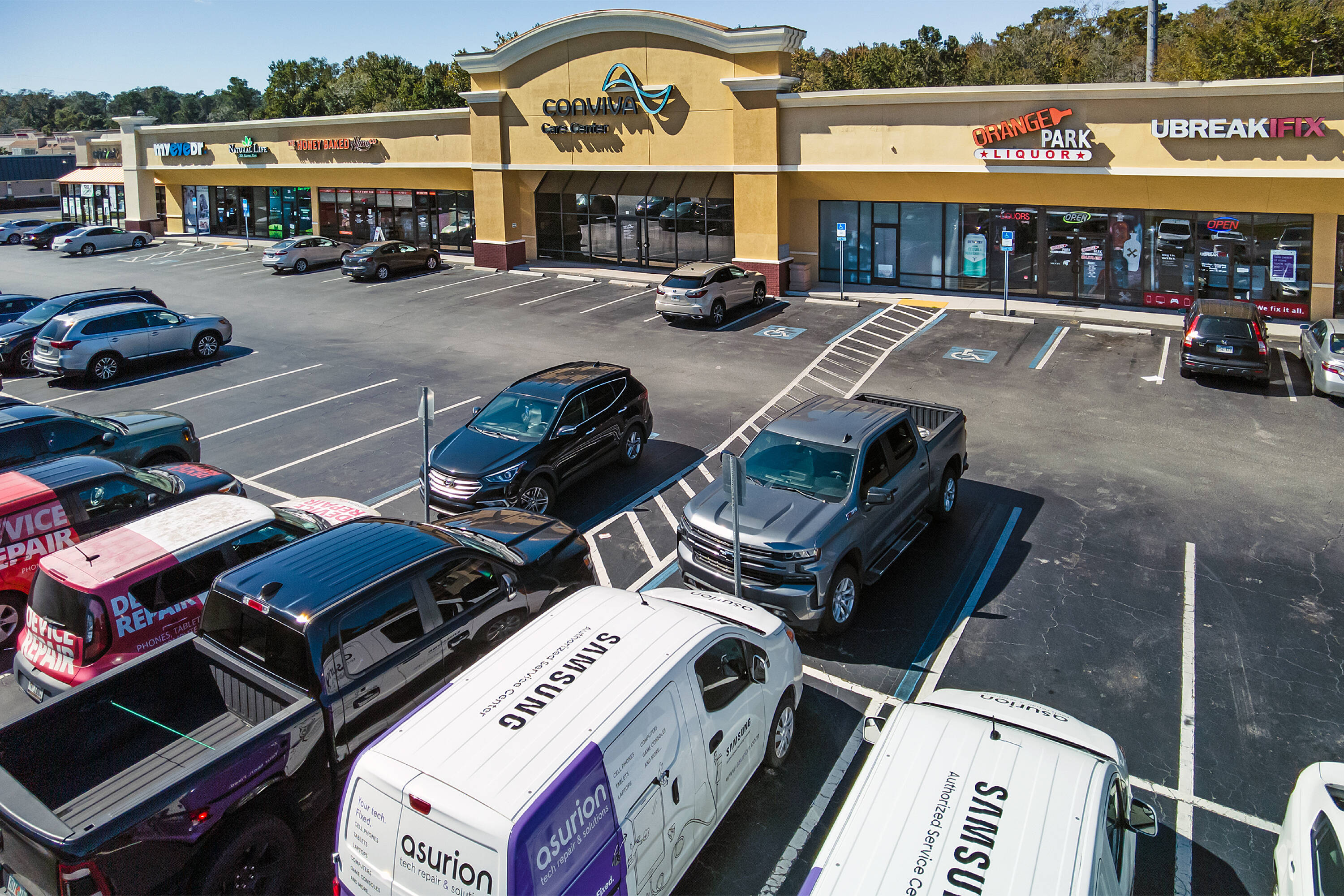 Retail spaces available at a high-traffic Orange Park location.