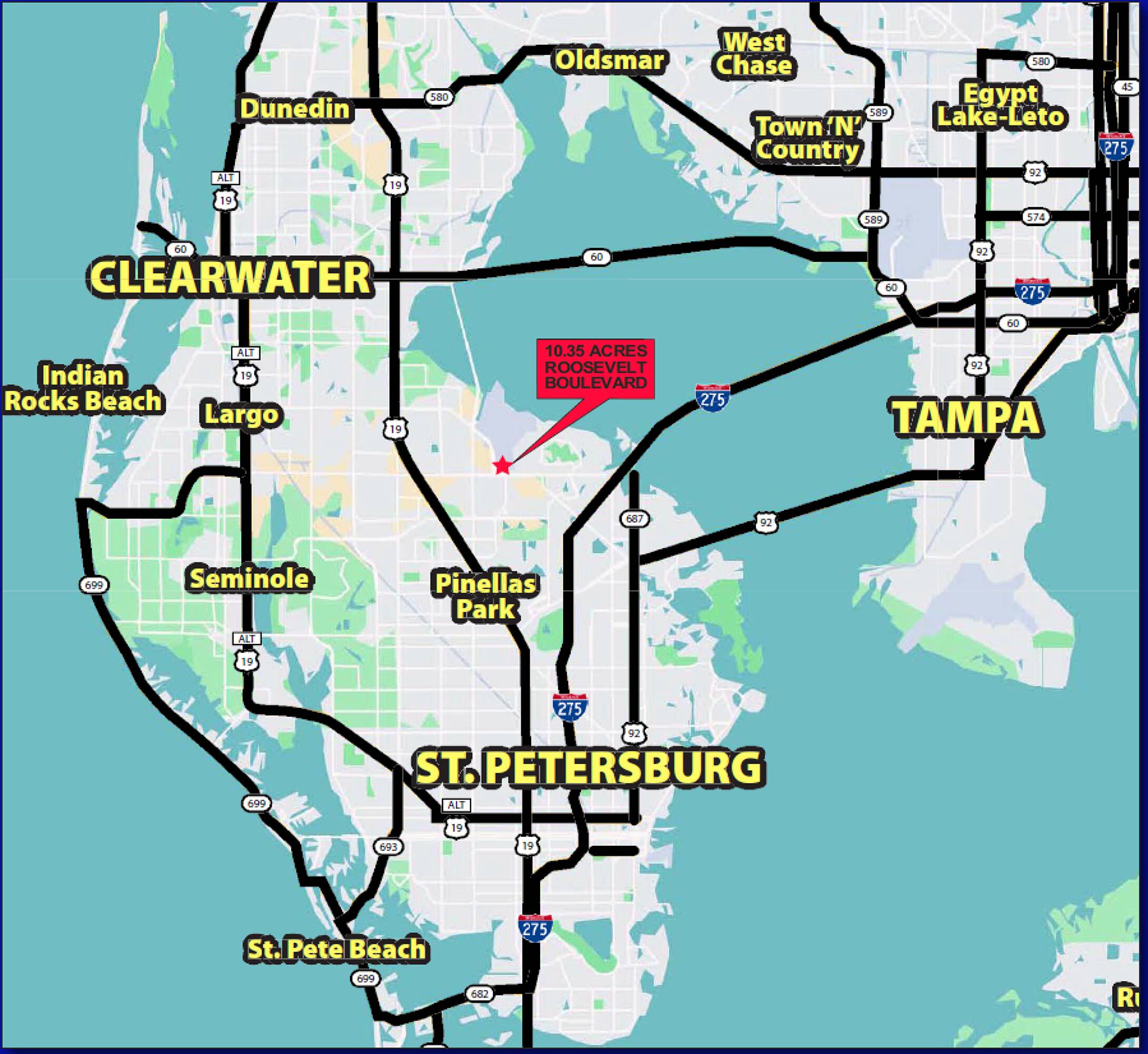 This property features: 10.35 acre MOL net usable industrial site in the highly desirable "Gateway" submarket of Pinellas County, FL.; Major road frontage on Roosevelt Boulevard & Ulmerton Road.; Excellent location: just 2.5 miles from Interstate 275/Howard Frankland Bridge and US Highway 19 North.