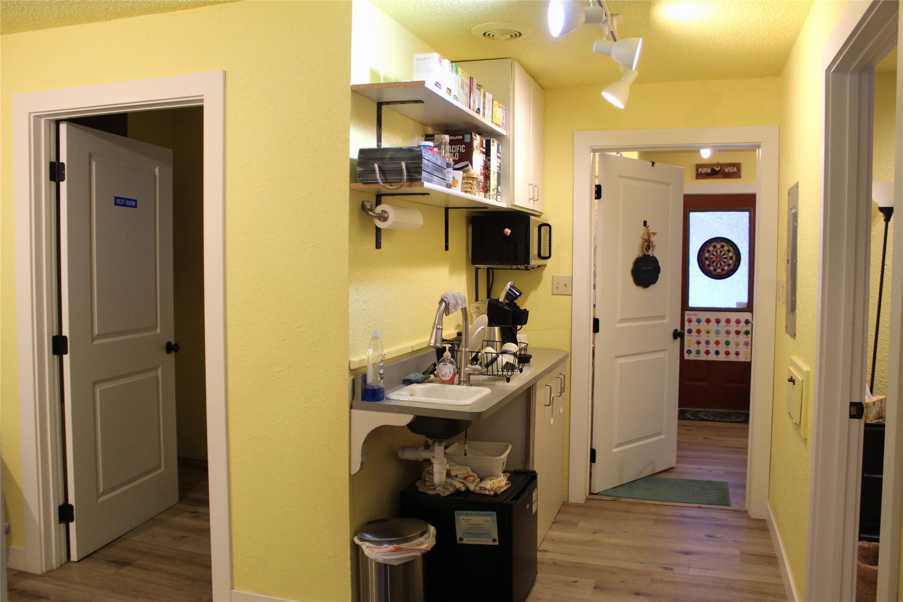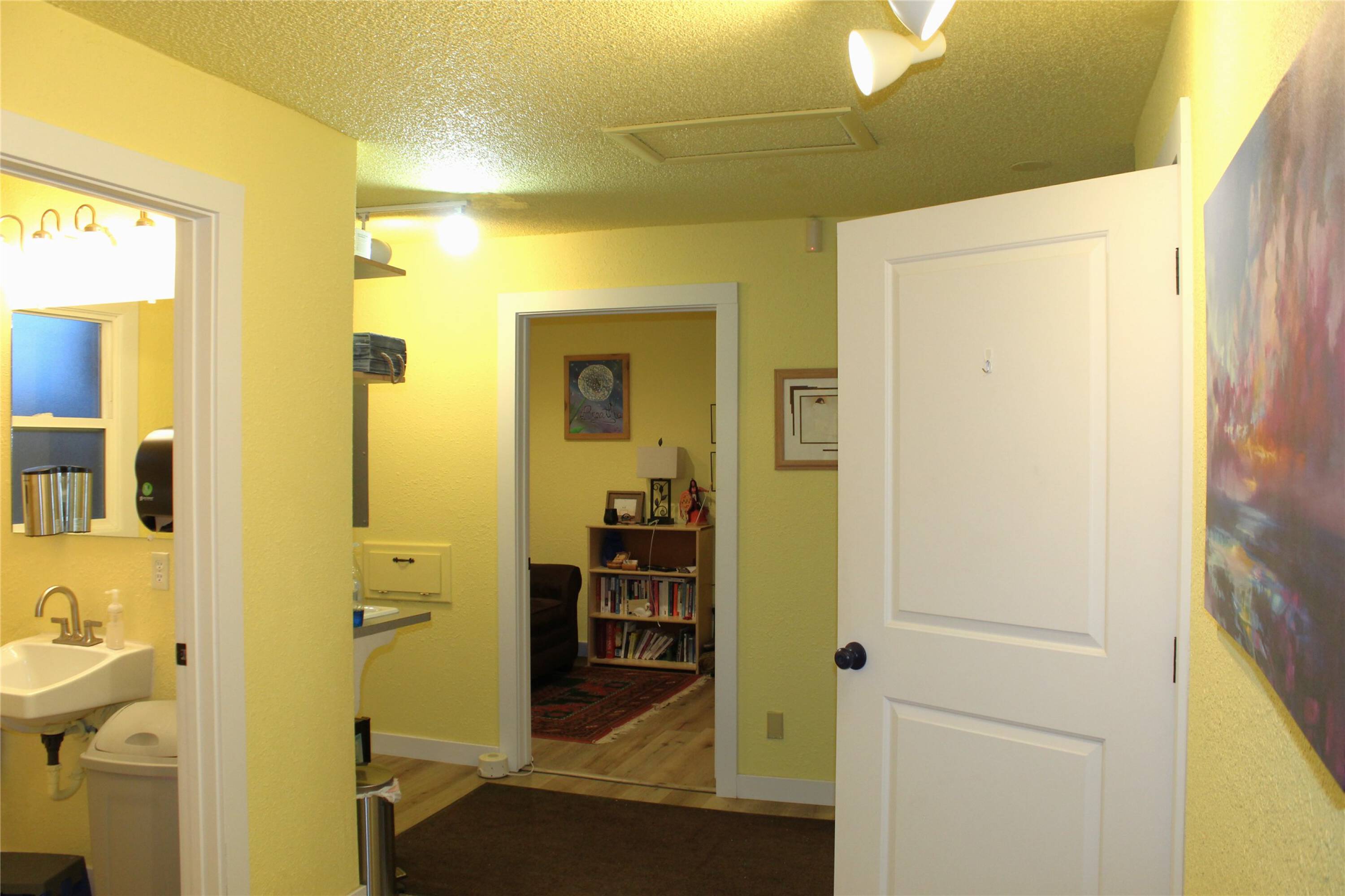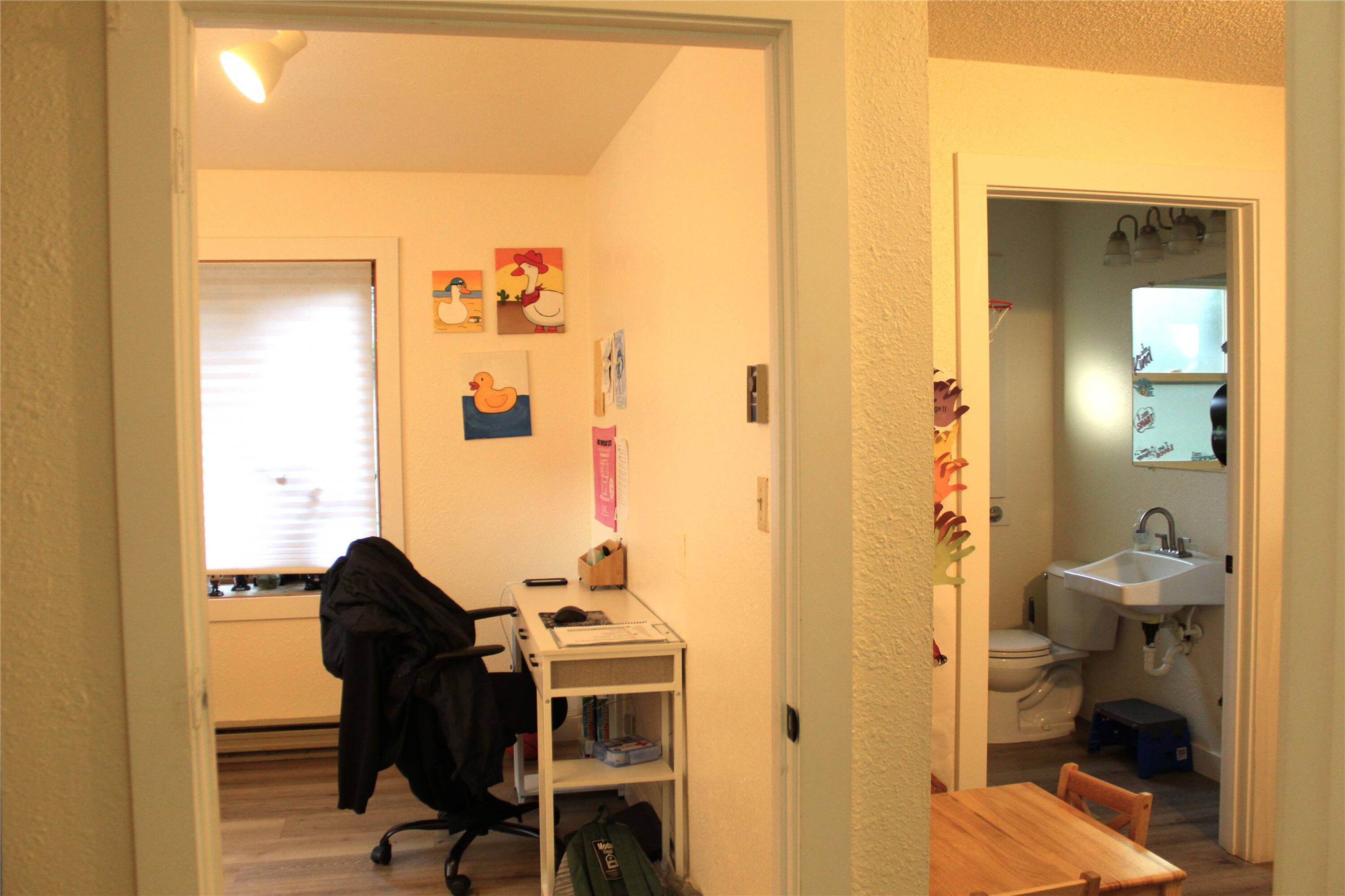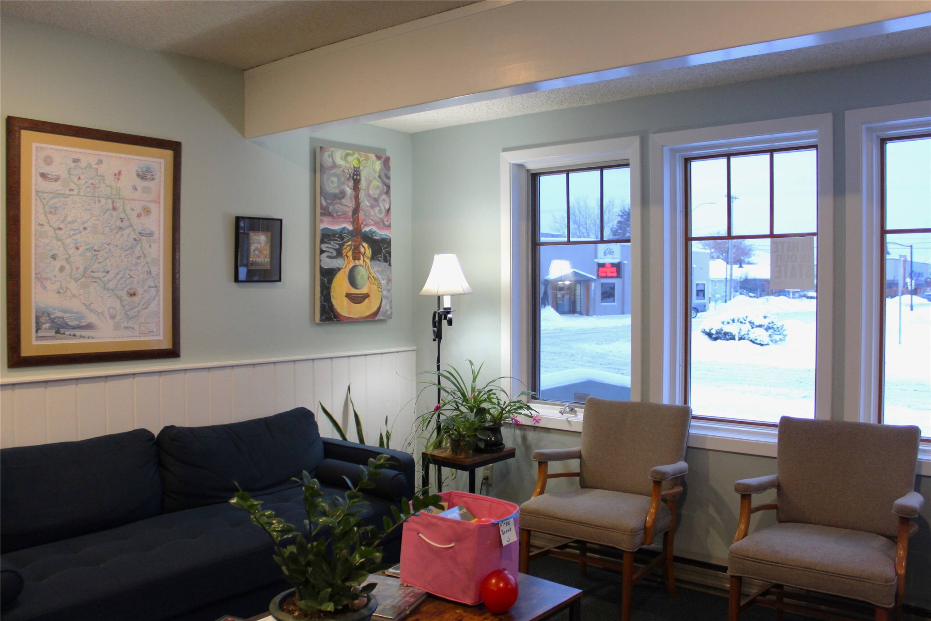 This commercial space is located off Main Street in downtown Polson, Montana. The 1,045 square foot building is zoned CBZD and features a layout suitable for various potential uses. The interior includes five separate rooms, a front reception desk in the lobby/sitting area, a kitchen space, and a half bathroom. The property also offers a separate storage unit, a backyard area, and street parking. This well-maintained property is a rare gem in the Polson real estate market.