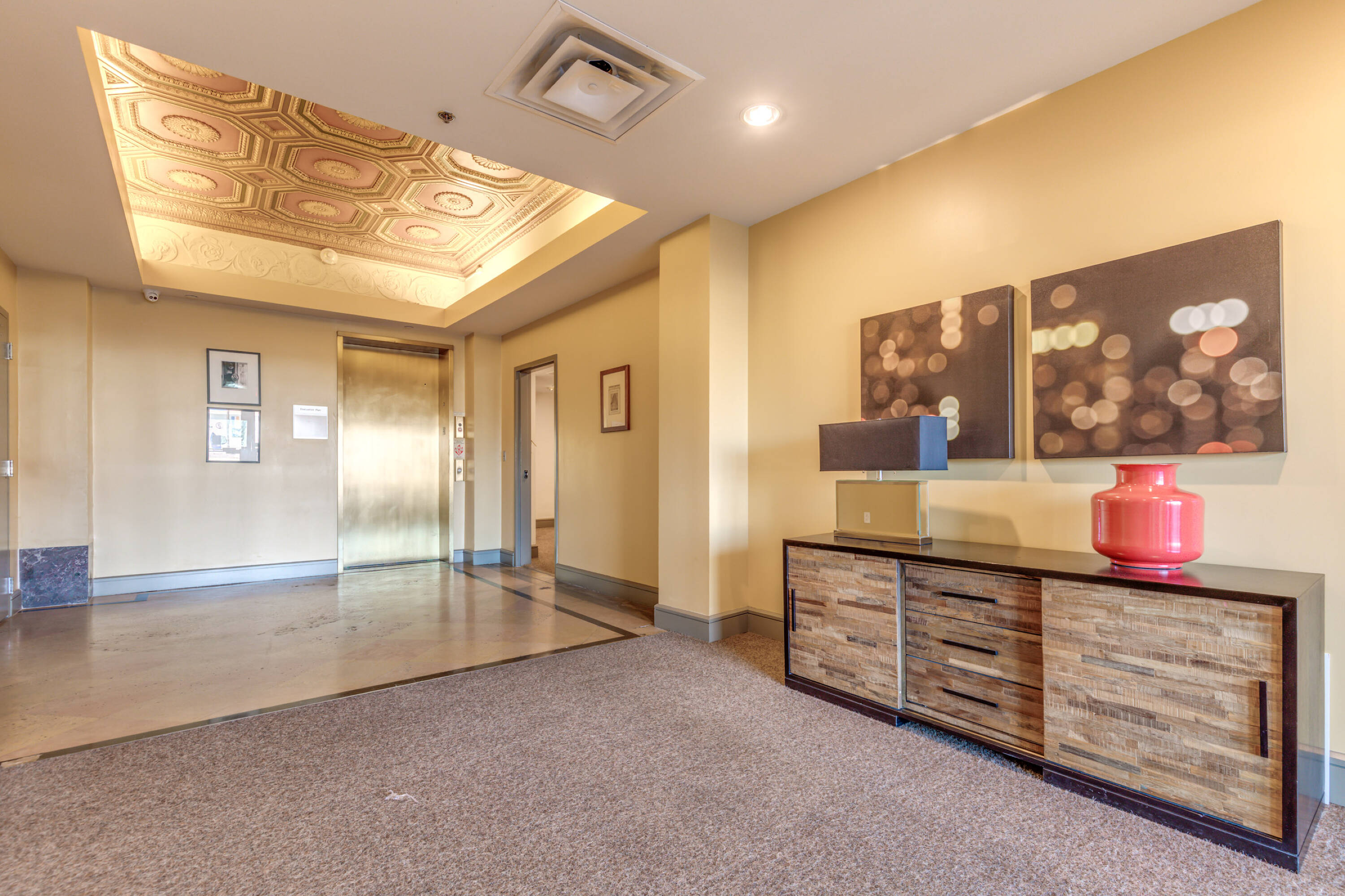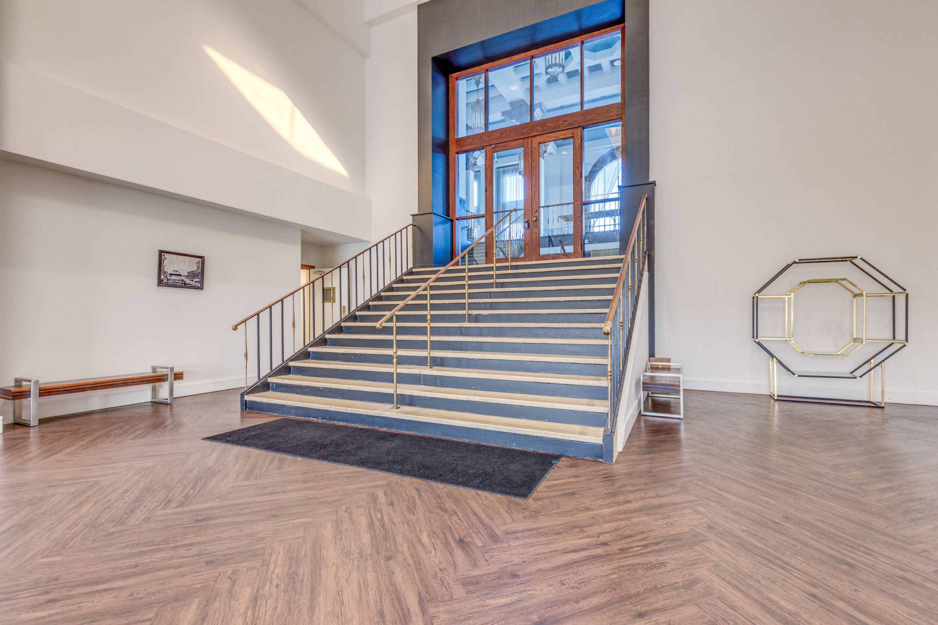 Historic 9-story building with commercial space for rent.