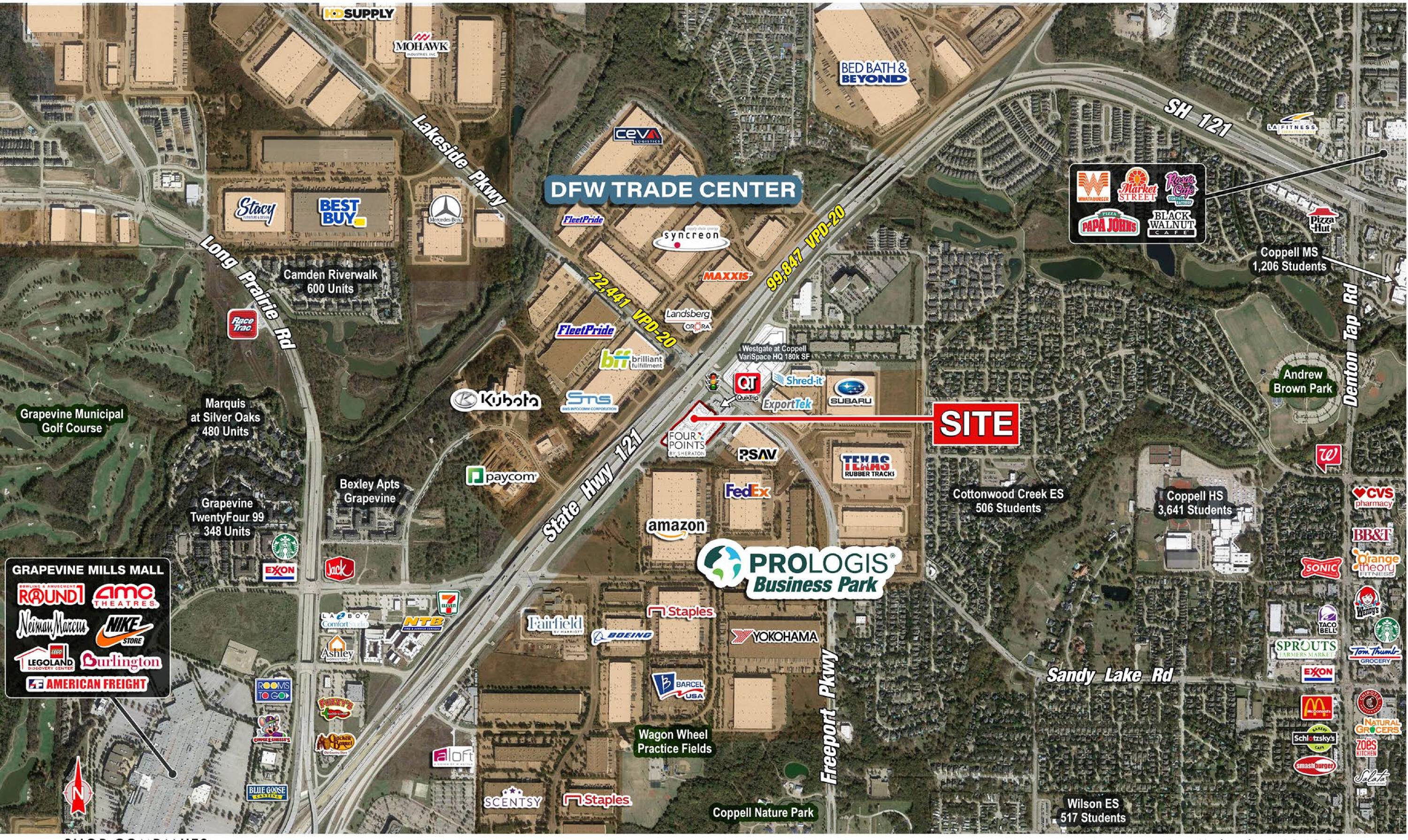The property is located at SEC of 121 Frontage Rd & Freeport Pkwy Coppell, TX.