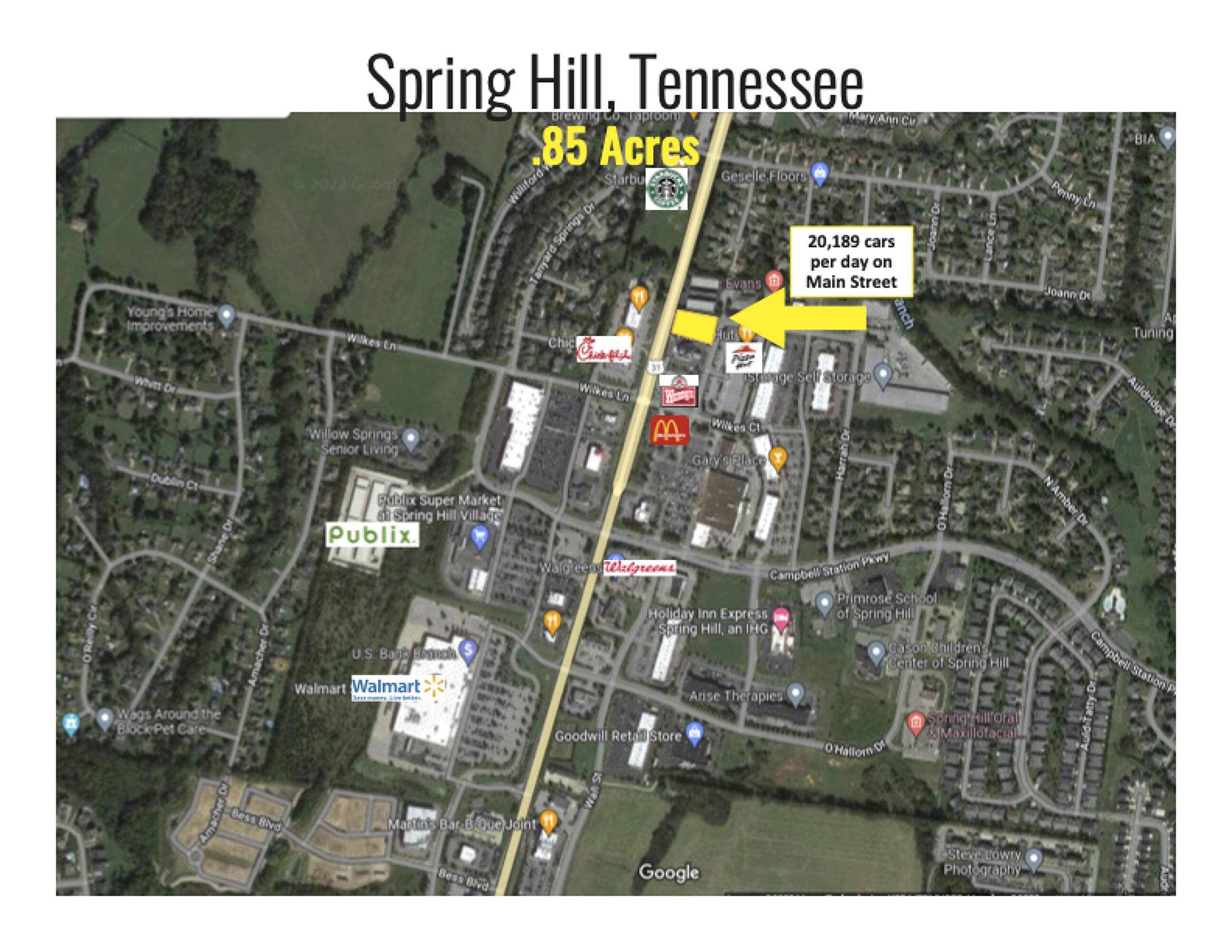 0.8 acre site on Main Street in Spring Hill.