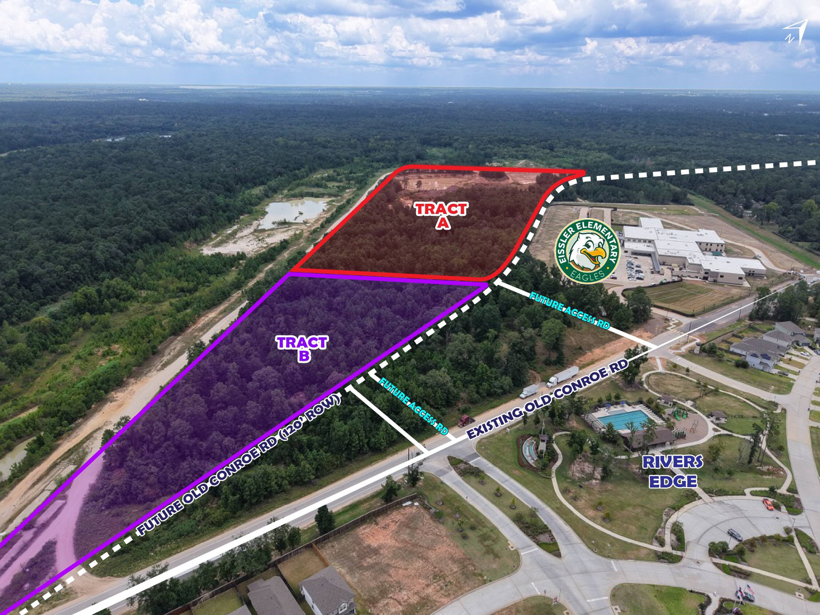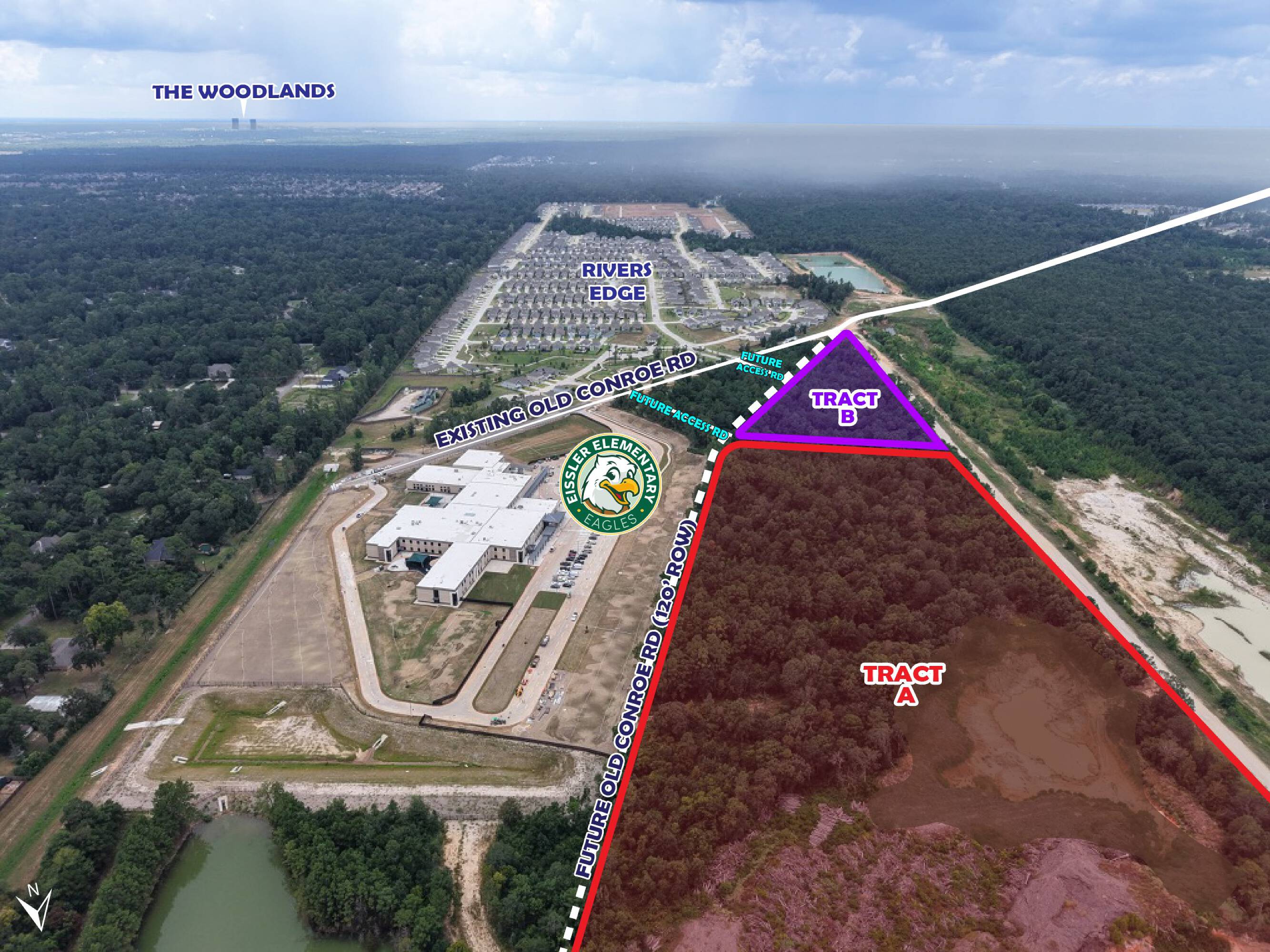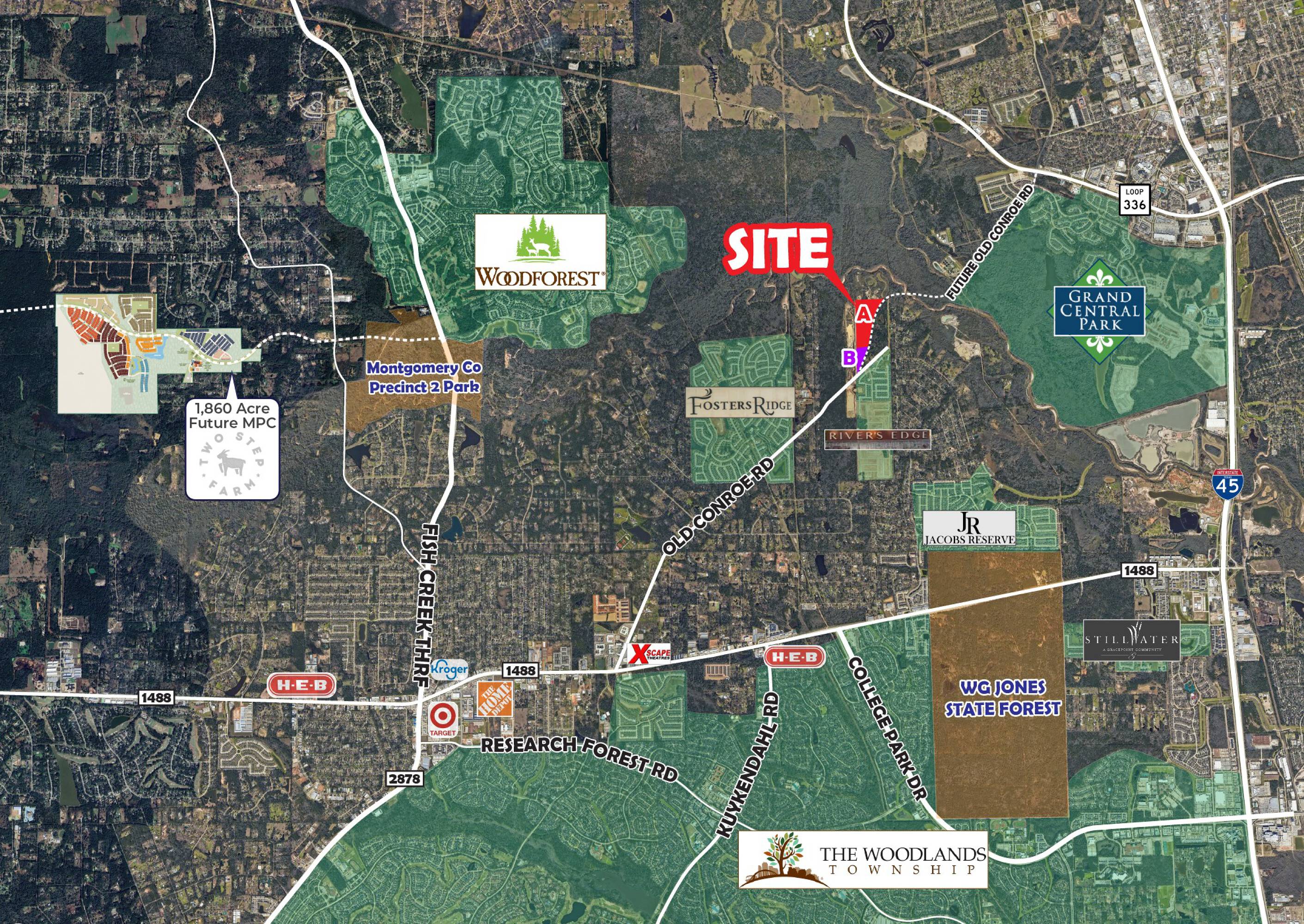 45-acre unrestricted tract near Woodlands schools and future road expansion.