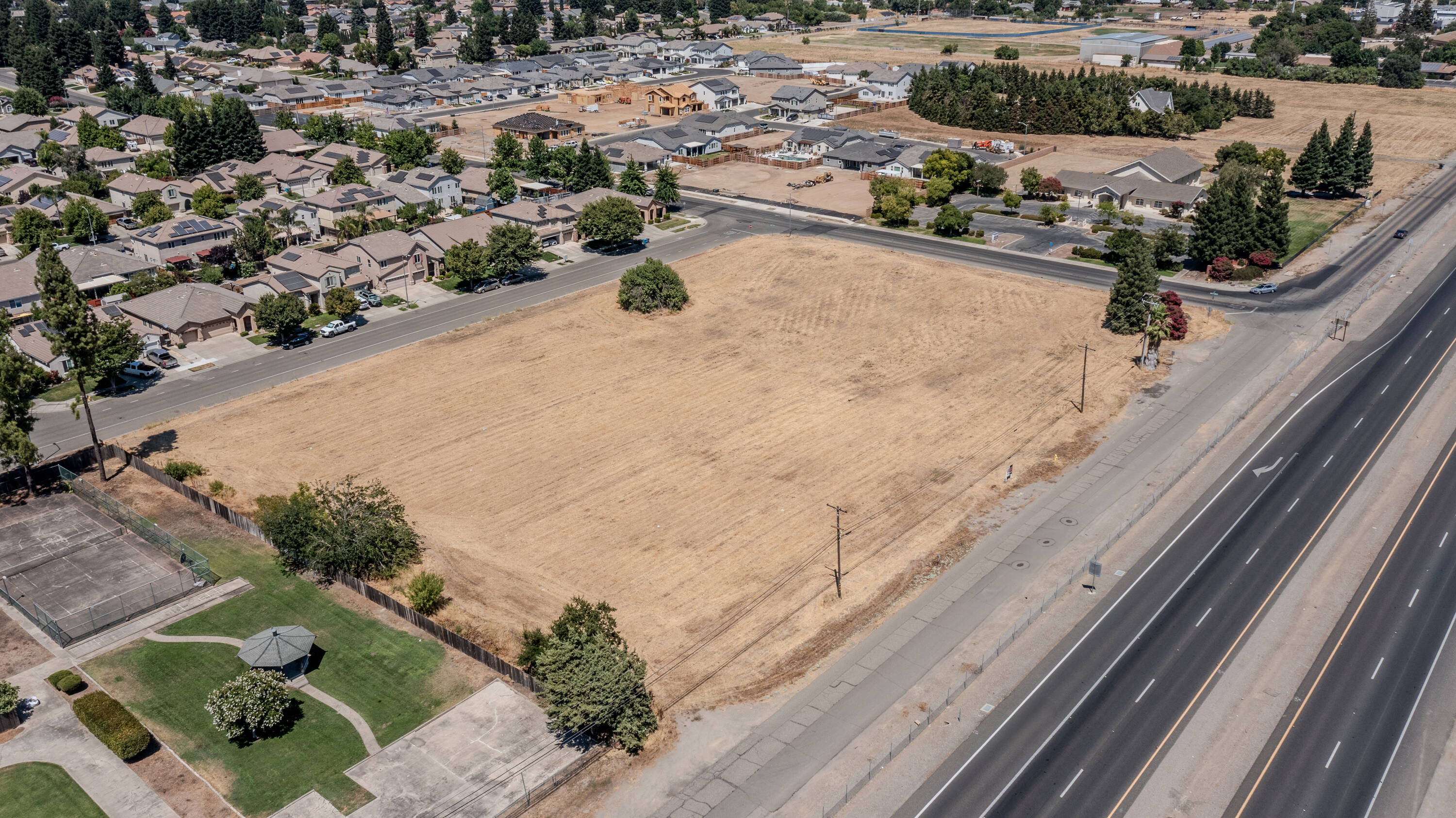 Visible land with highway frontage in a growing residential area.