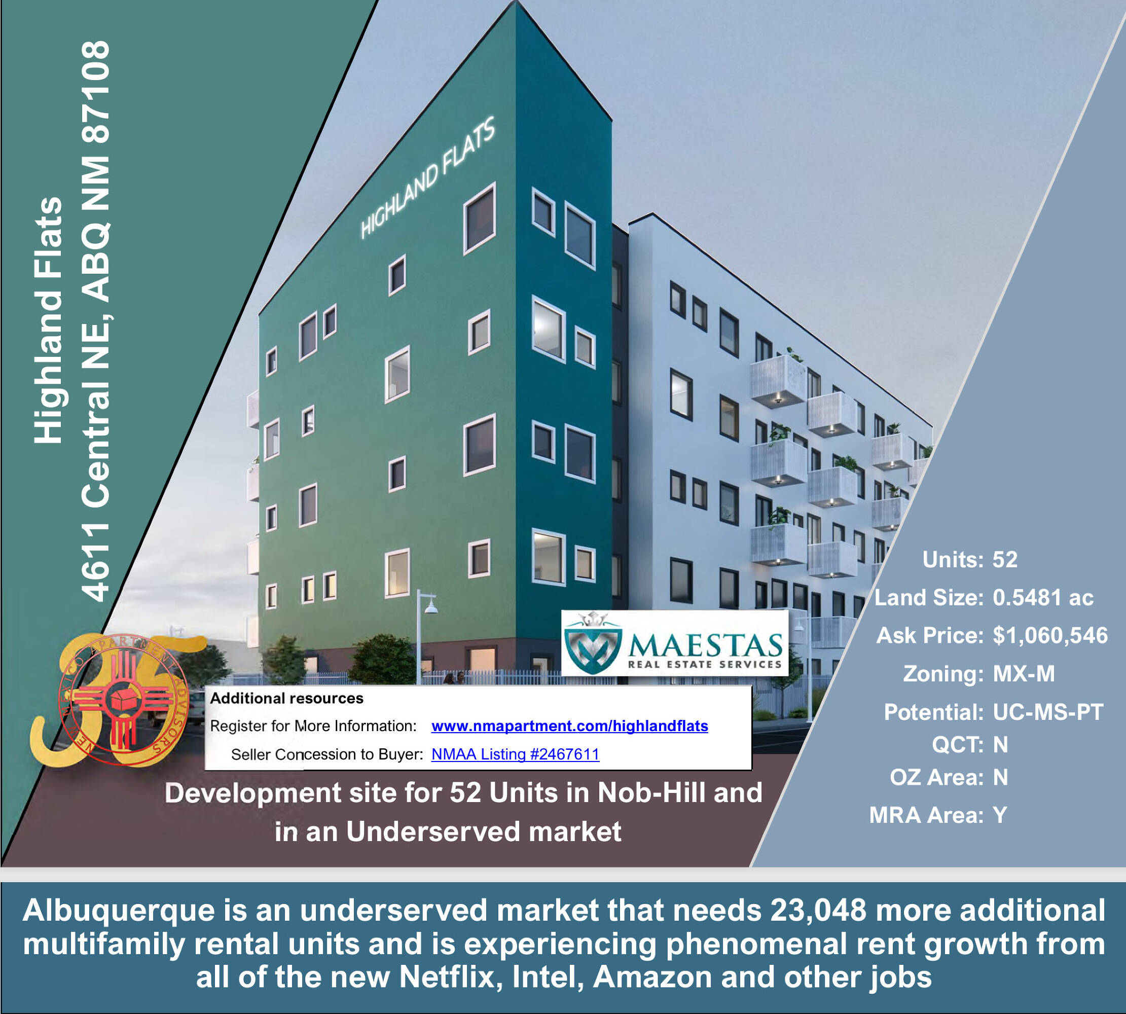 0.5481-acre site zoned for mixed-use development in Albuquerque's Nob Hill.