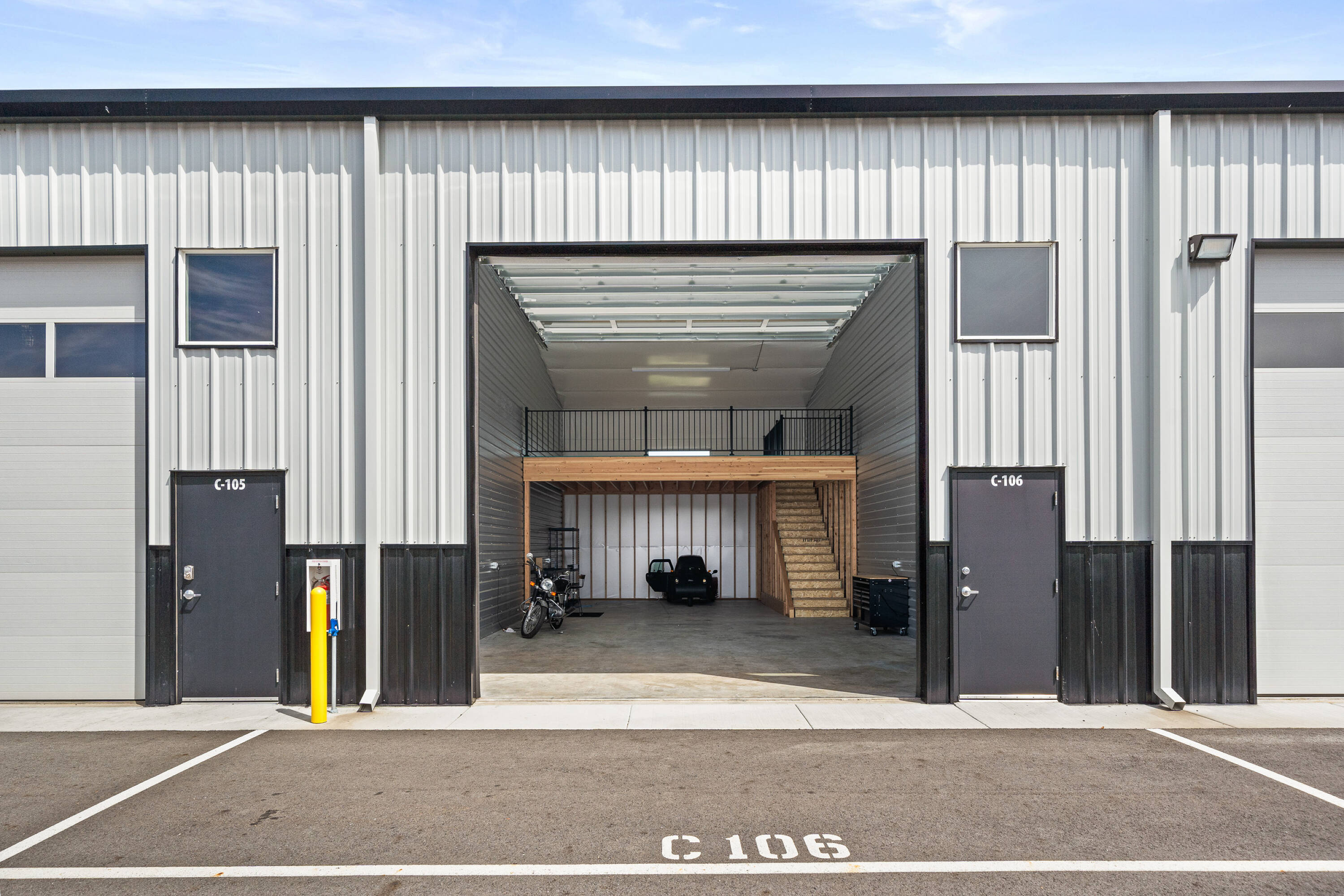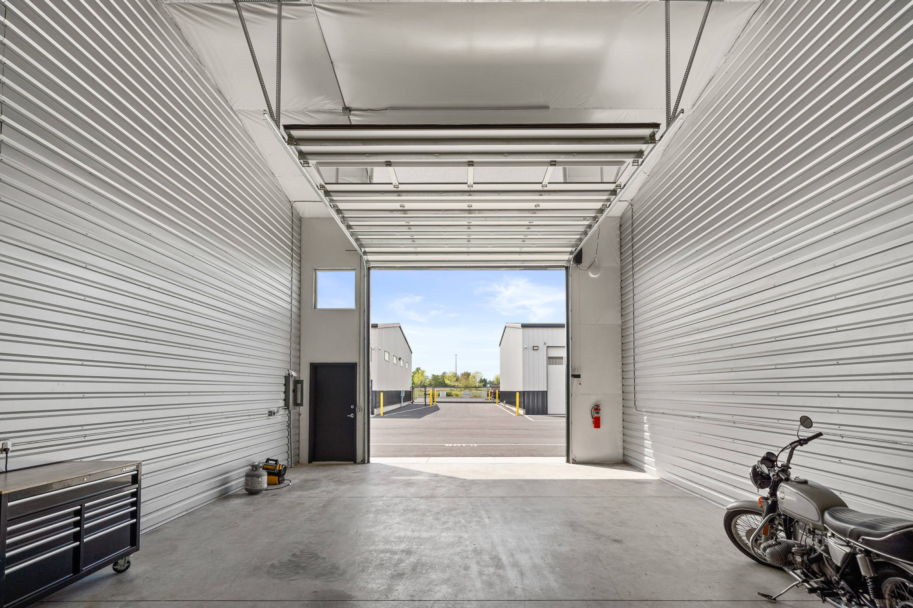 Luxury storage condos offering customizable units for warehouse, shop, or office.
