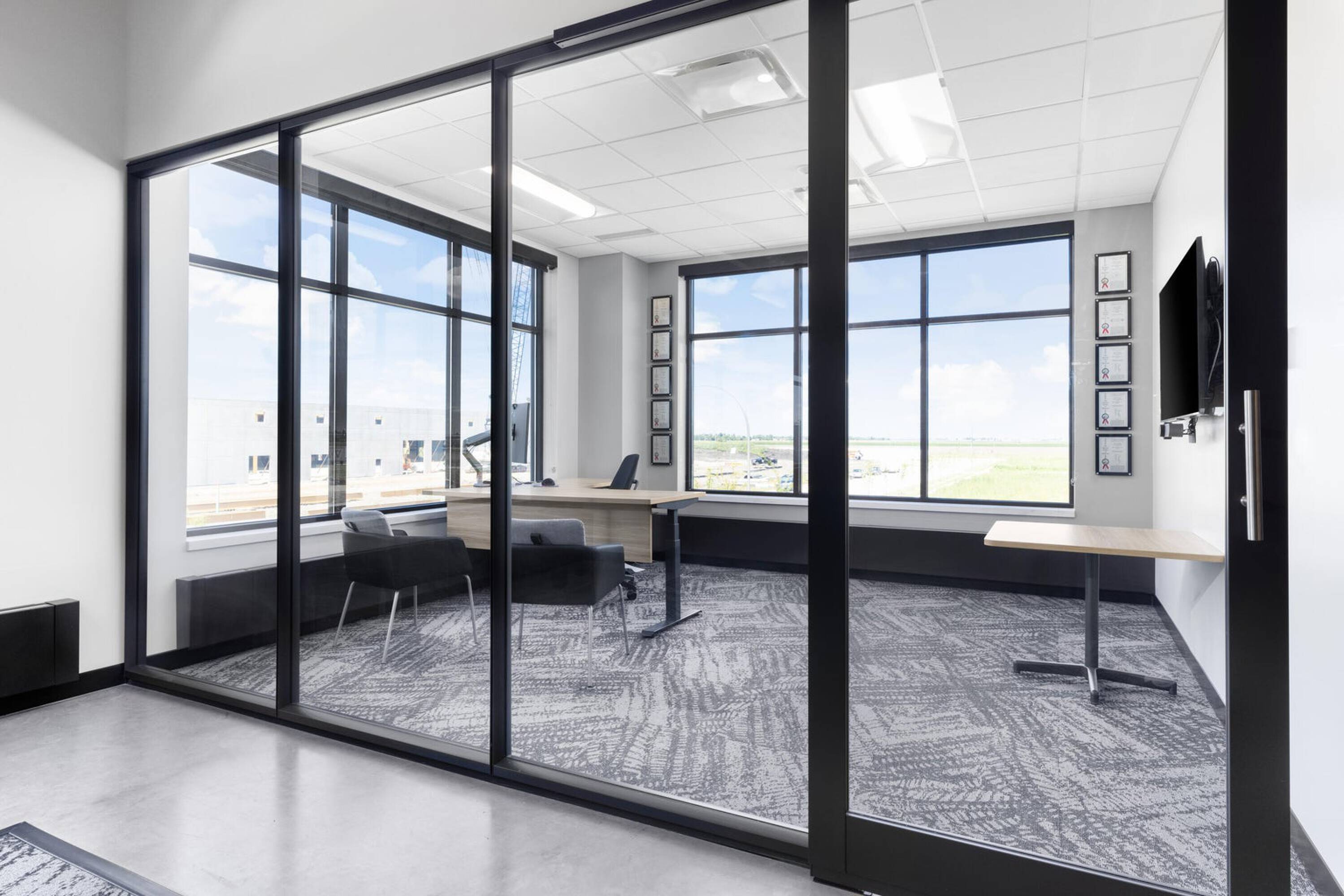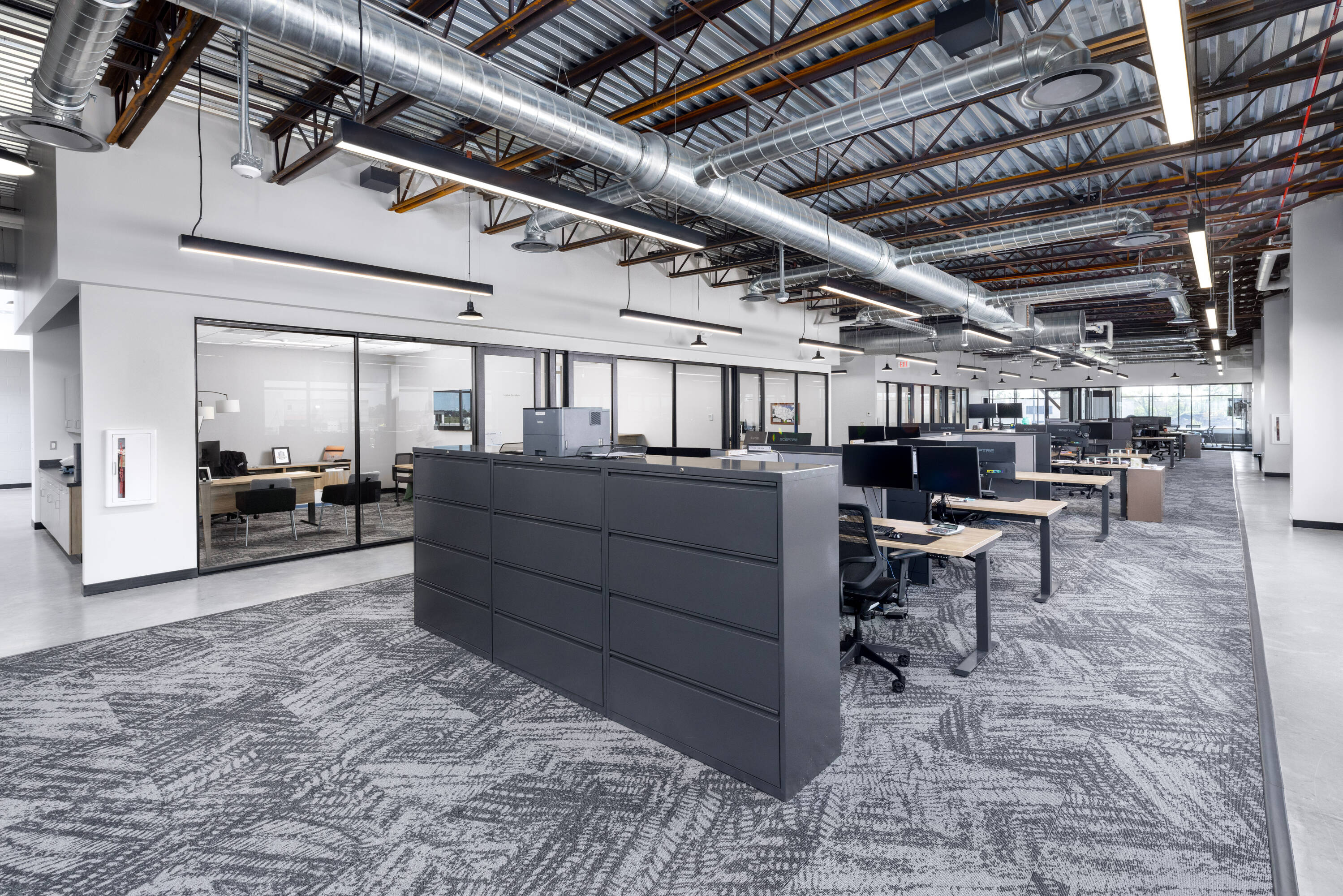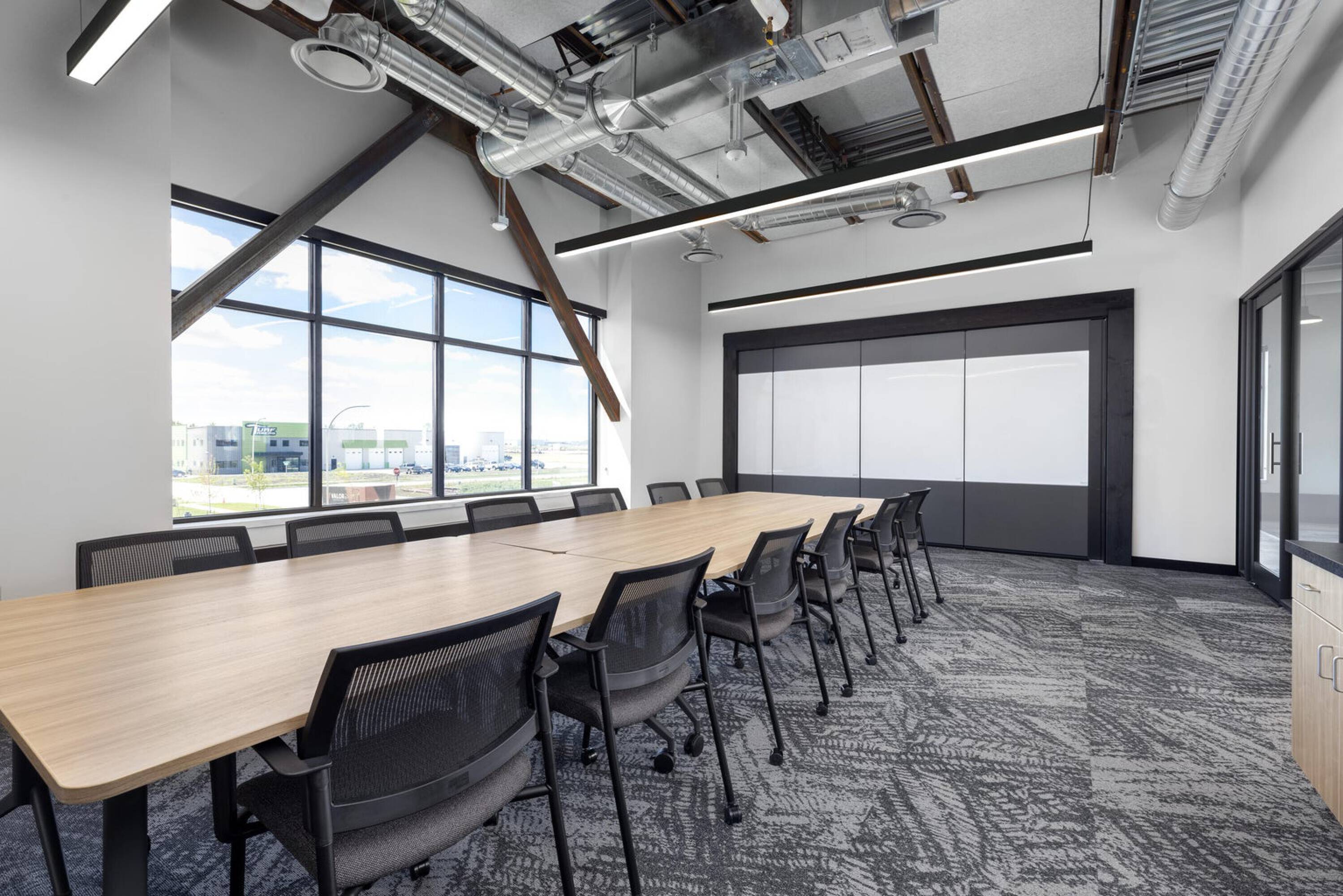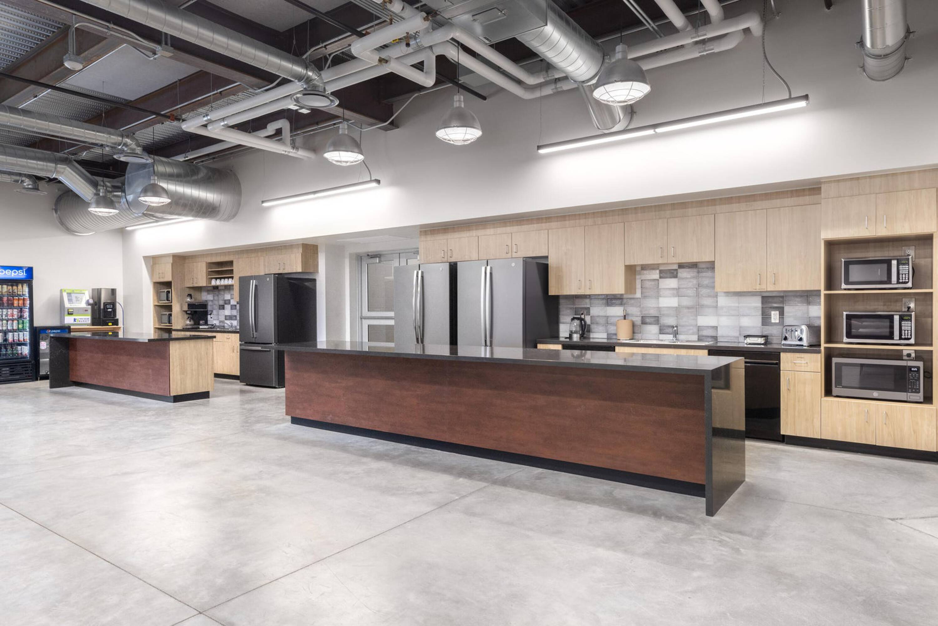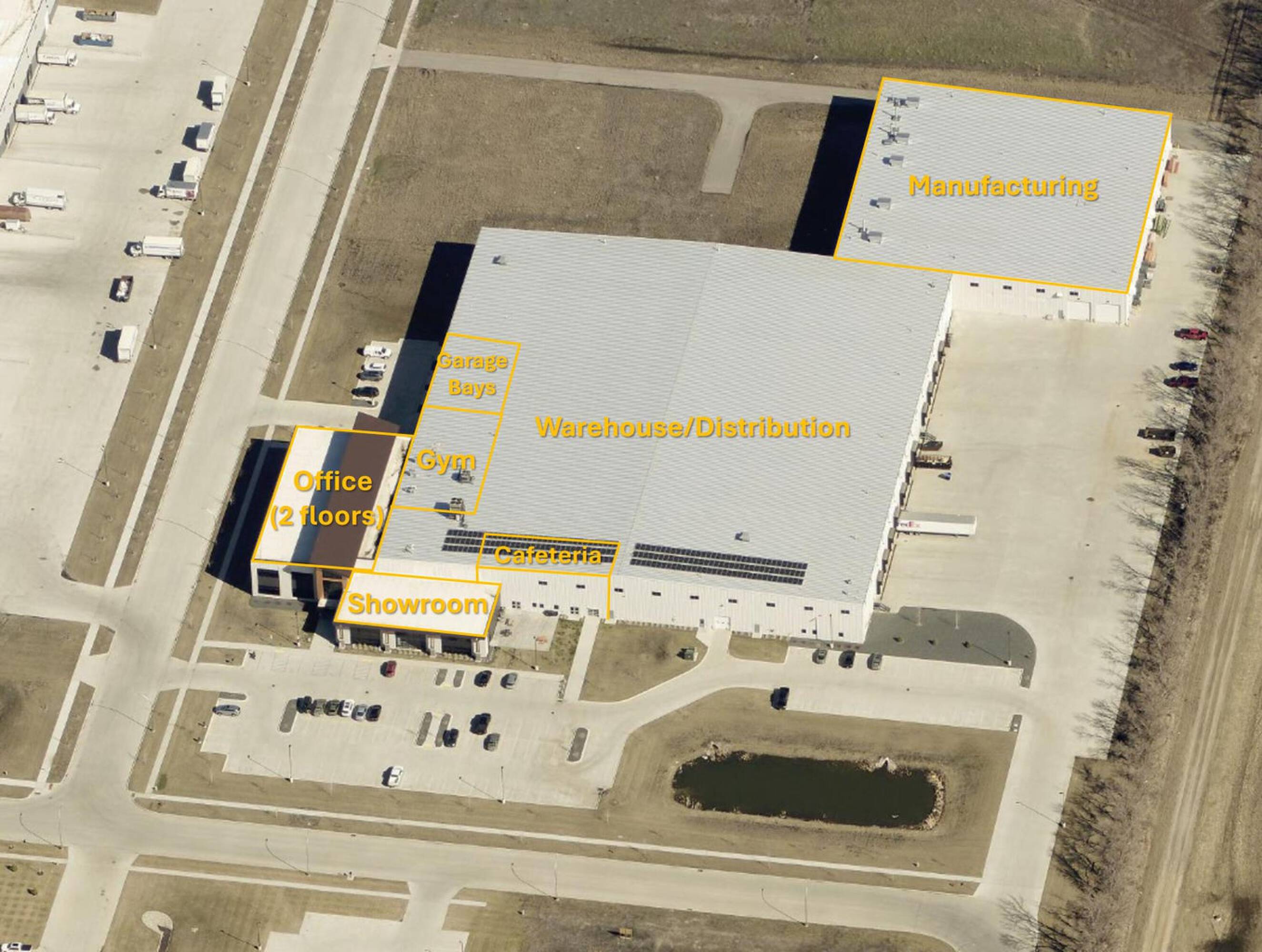 This Class A flex building, constructed in 2021, is located in North Fargo's industrial corridor. The property includes over 20,000 square feet of Class A office space spread across two floors, featuring a modern design with high-end finishes, open floor plans, multiple offices and conference rooms, and a mother's room. The 96,000+ square foot warehouse/distribution space has 12 dock doors, 30-foot sidewalls, LED lighting, and 7-inch reinforced concrete floors, along with a small warehouse office. The 40,000+ square foot manufacturing space, connected to the warehouse, features 25 to 31-foot high ceilings, two drive-in doors, and 8-inch reinforced concrete floors. A 5,000 square foot showroom accessible from the front entrance includes floor-to-ceiling glass. The property also contains a large, fully equipped cafeteria, a gym with seven private showers, a half-court basketball court, and four EV car charging stations. Located less than one mile from I-29, the property offers access to major highways. This industrial complex is designed to accommodate a range of businesses with advanced infrastructure and modern amenities.