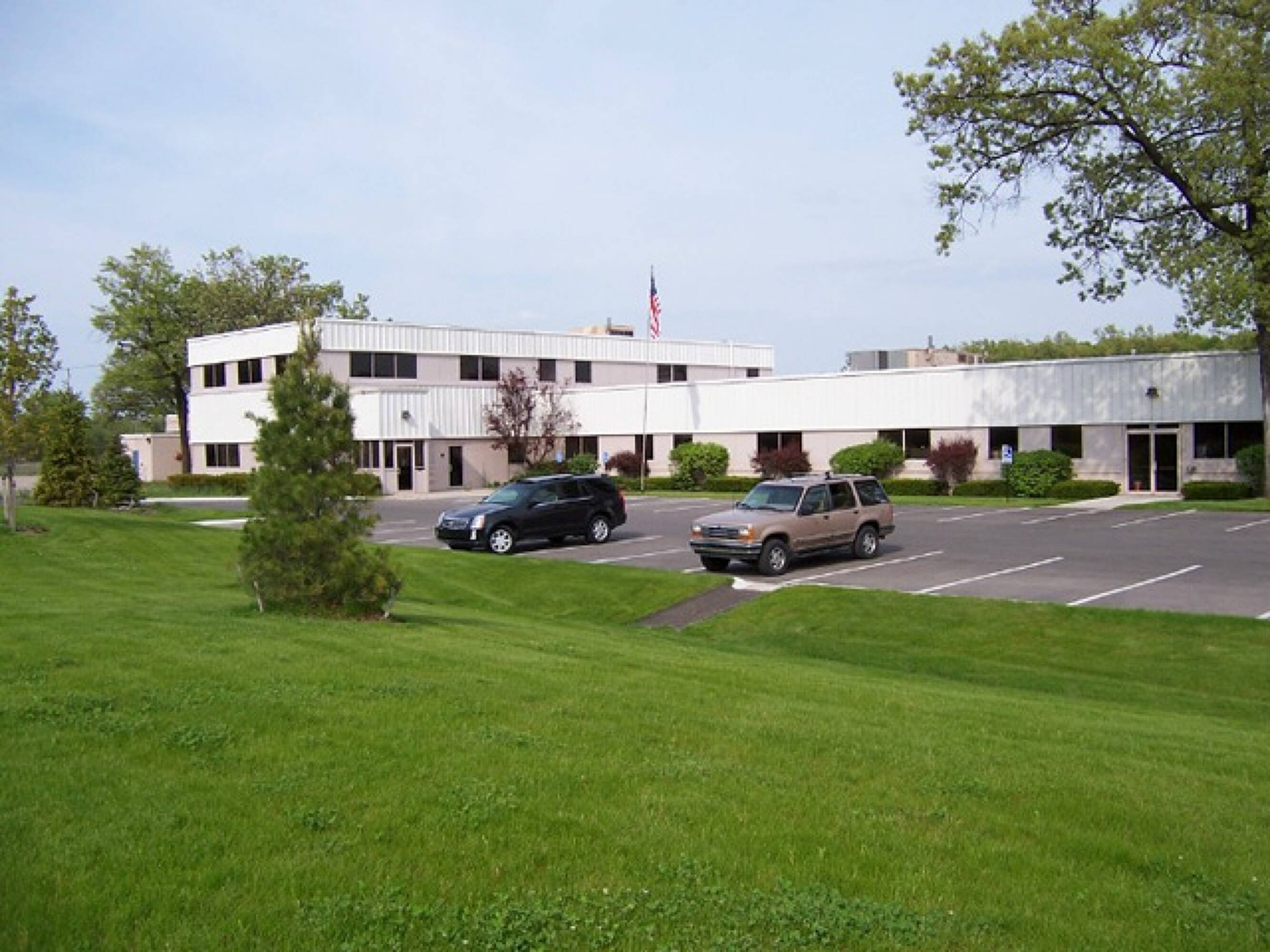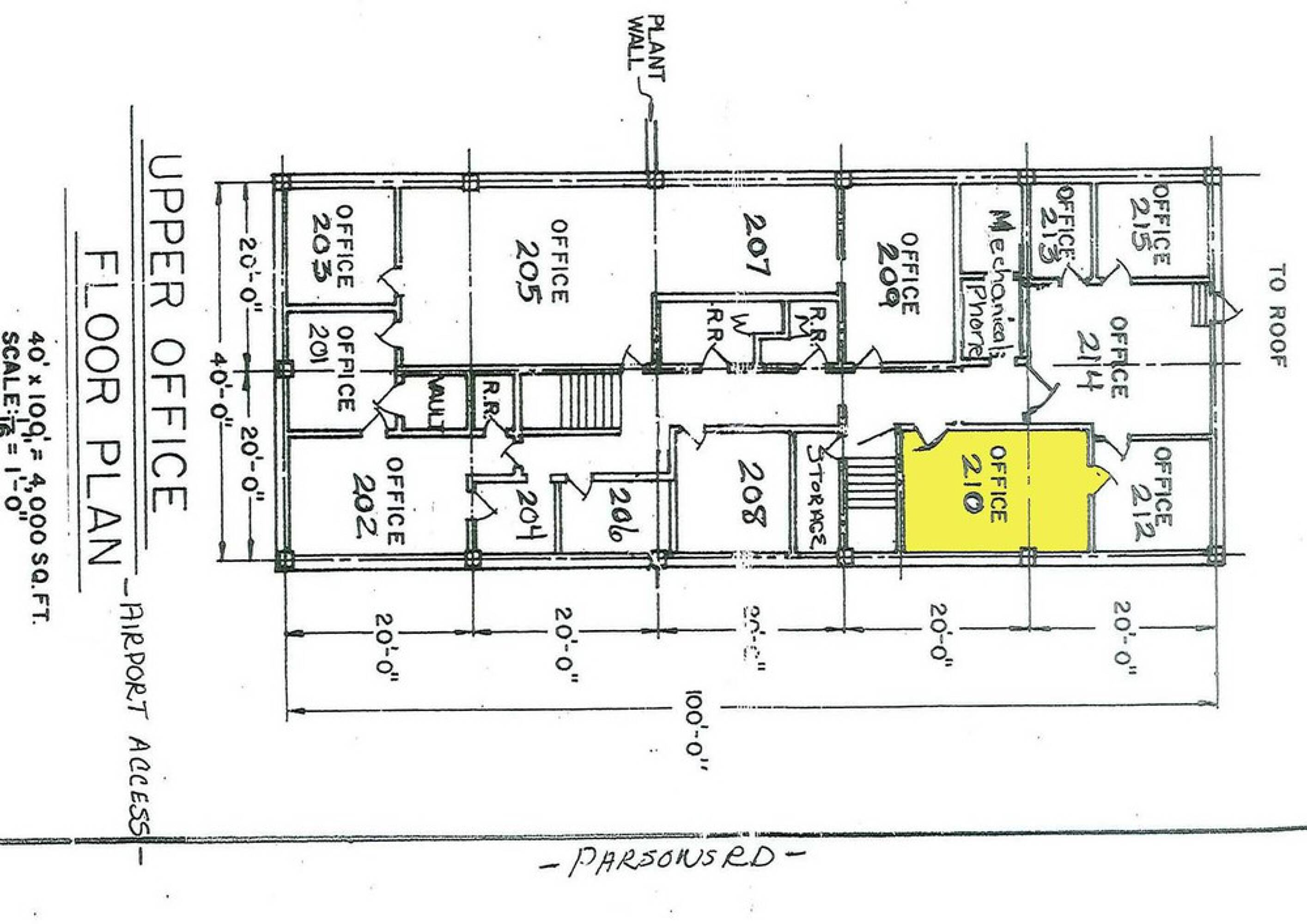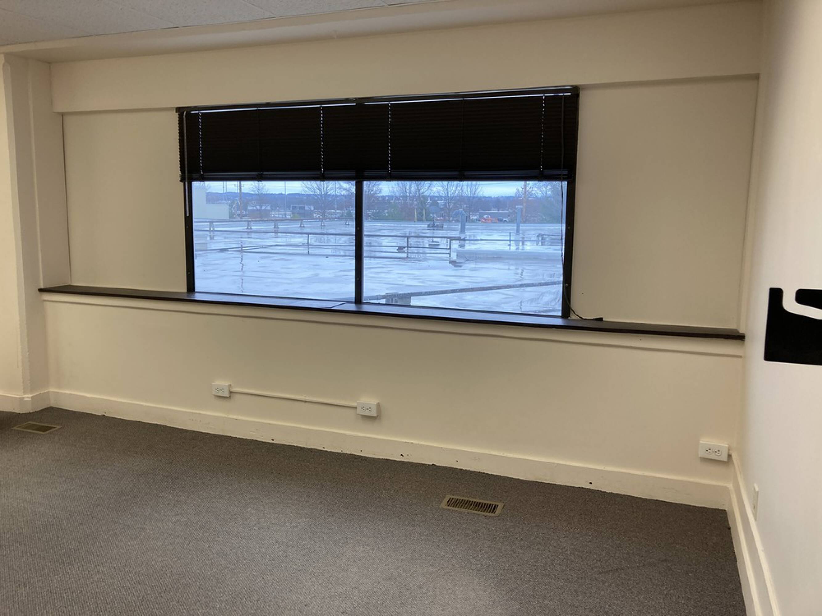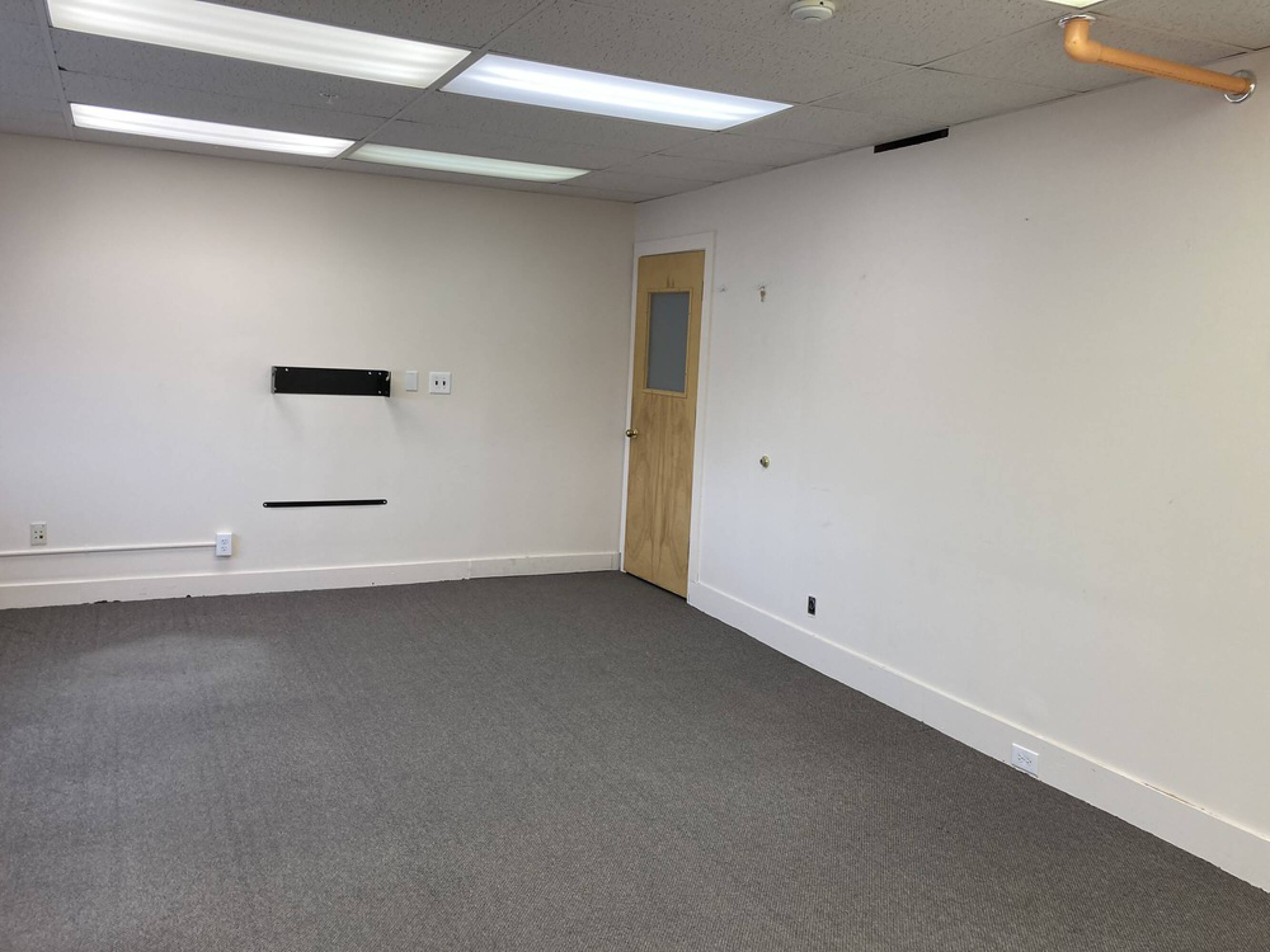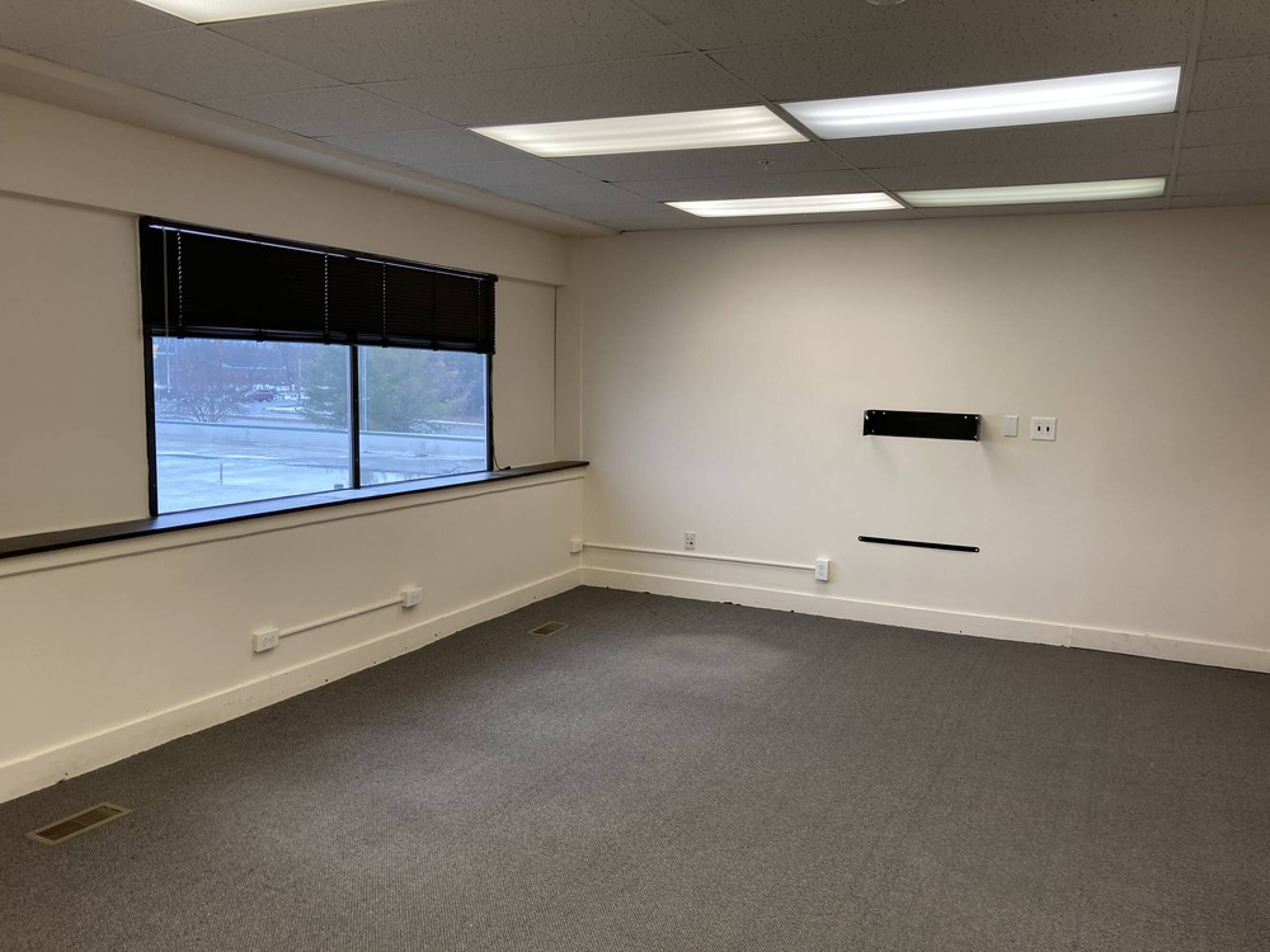 Single office space with shared restrooms and ample parking.