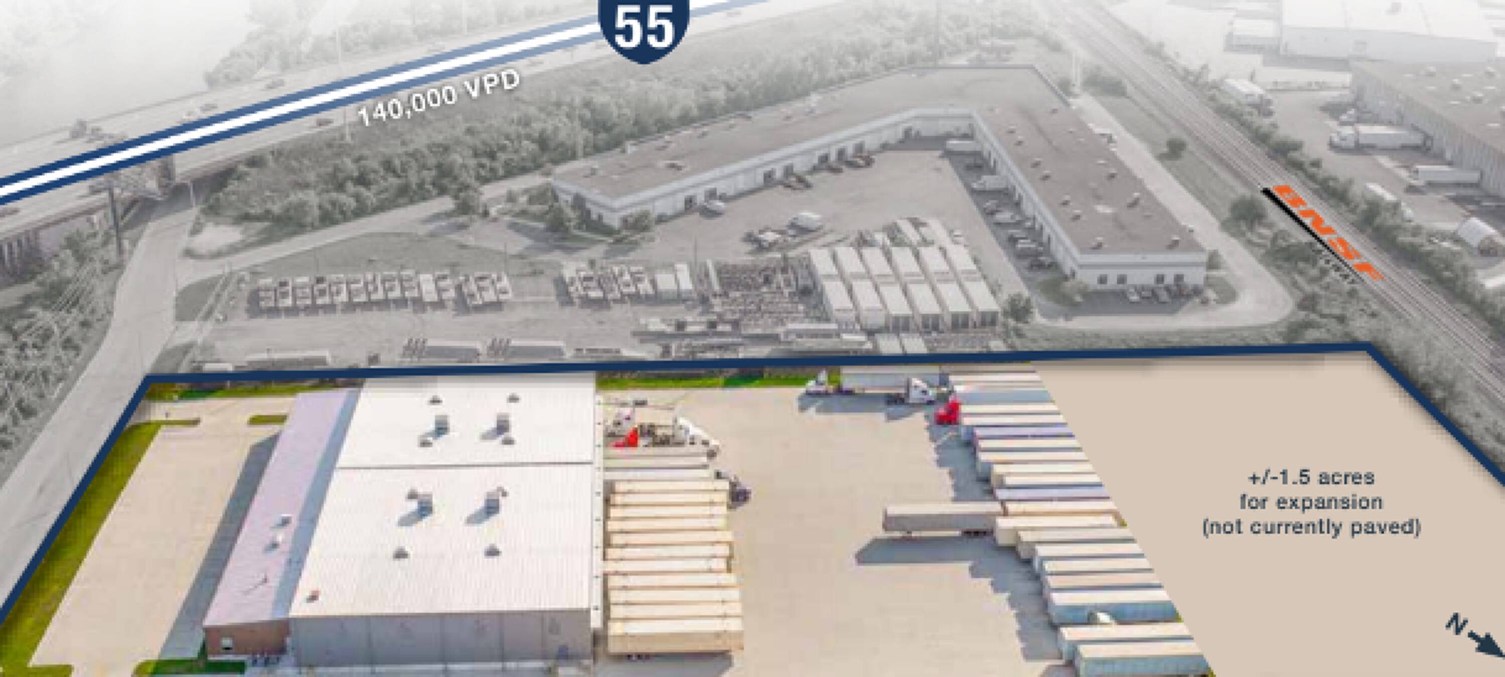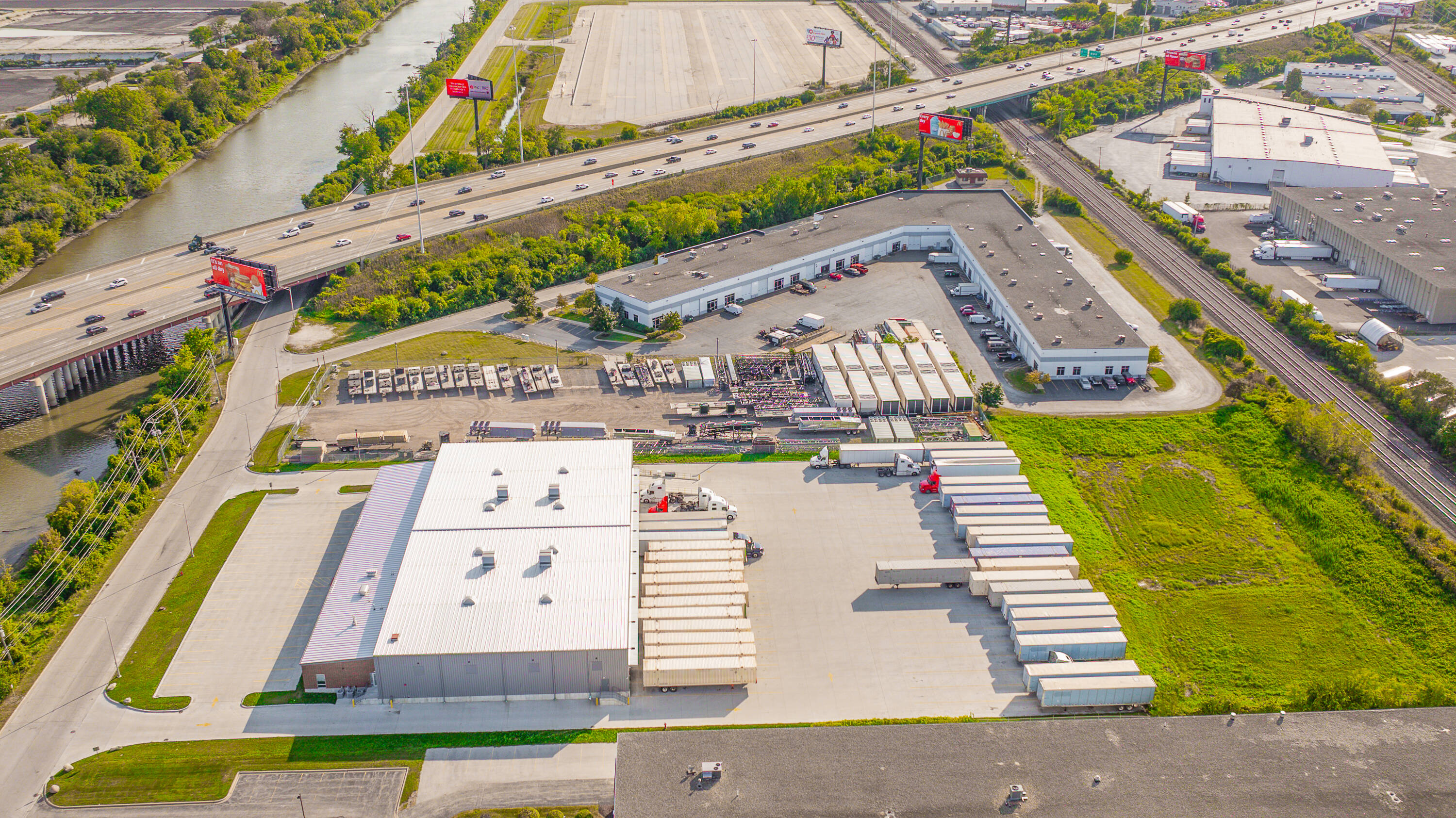 Truck terminal in Hodgkins with I-55 frontage and signage.