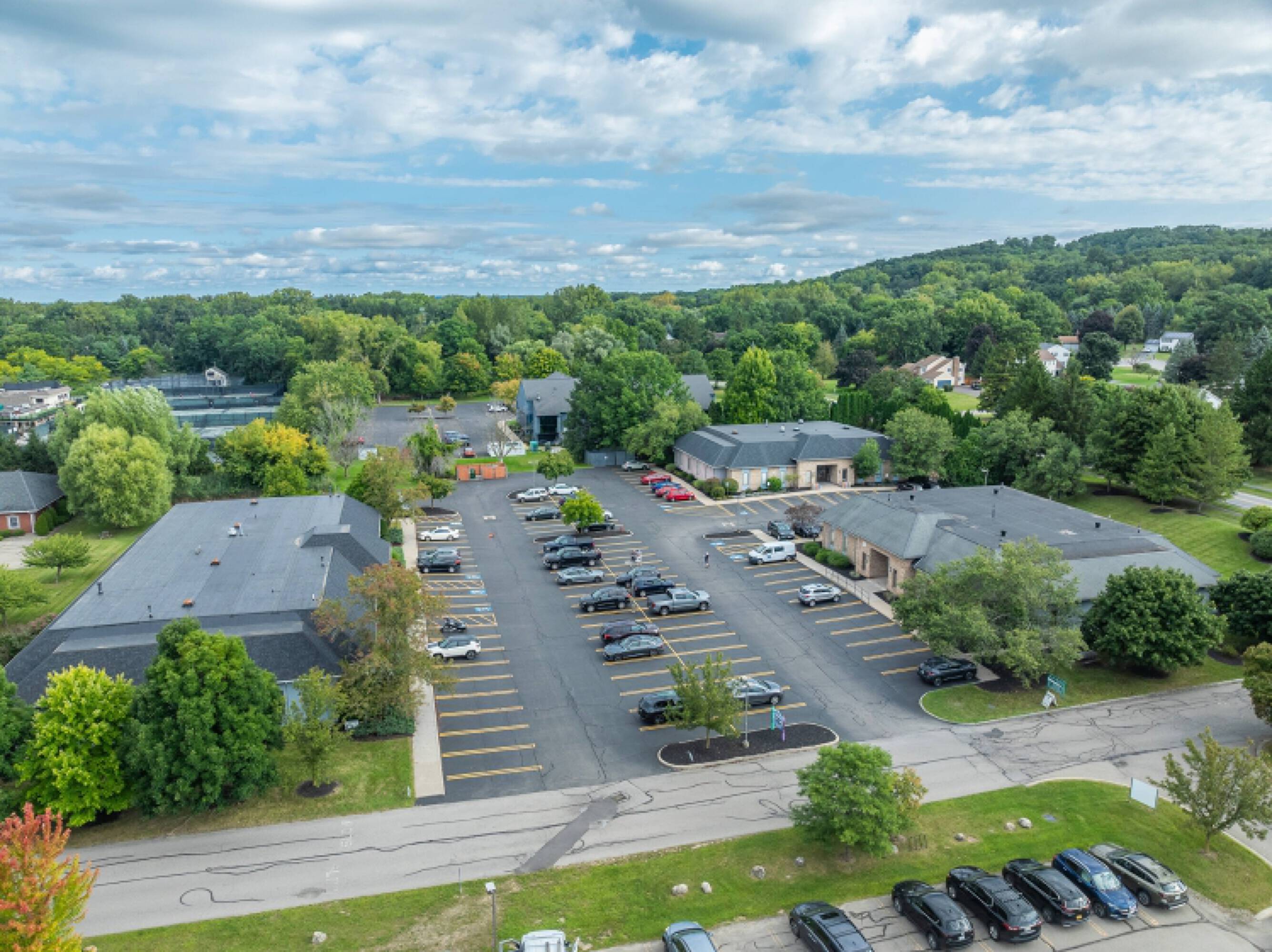 Meadowgate Office Park, situated at the corner of Sully’s Trail and Cambric Circle in the Town of Perinton, offers two office spaces for lease. Building 20 features a well-maintained medical space, formerly a U of R Neurology office, with 8 exam rooms, 3 private offices, a spacious waiting room, and a large reception area. Building 10 provides 6 private offices, a welcoming lobby and waiting area, a kitchenette, and bonus space in the basement suitable for storage or extra workspace. The office park is surrounded by rooftops and businesses in a park-like setting and is conveniently located near Eastview Mall with easy access to Route 96, Route 31, I-490, and I-90.