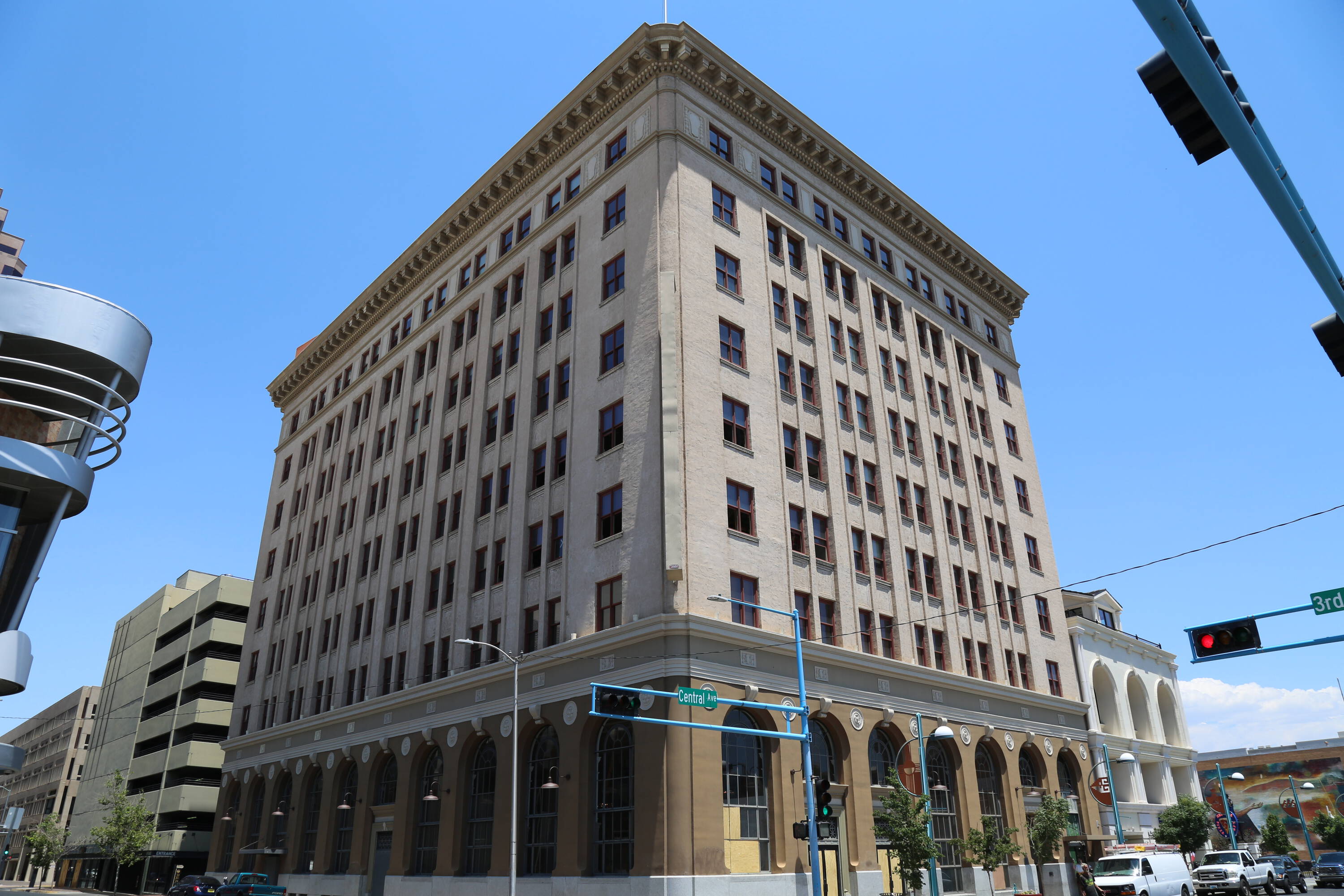 Landmark mixed-use property in downtown Albuquerque, originally First National Bank.