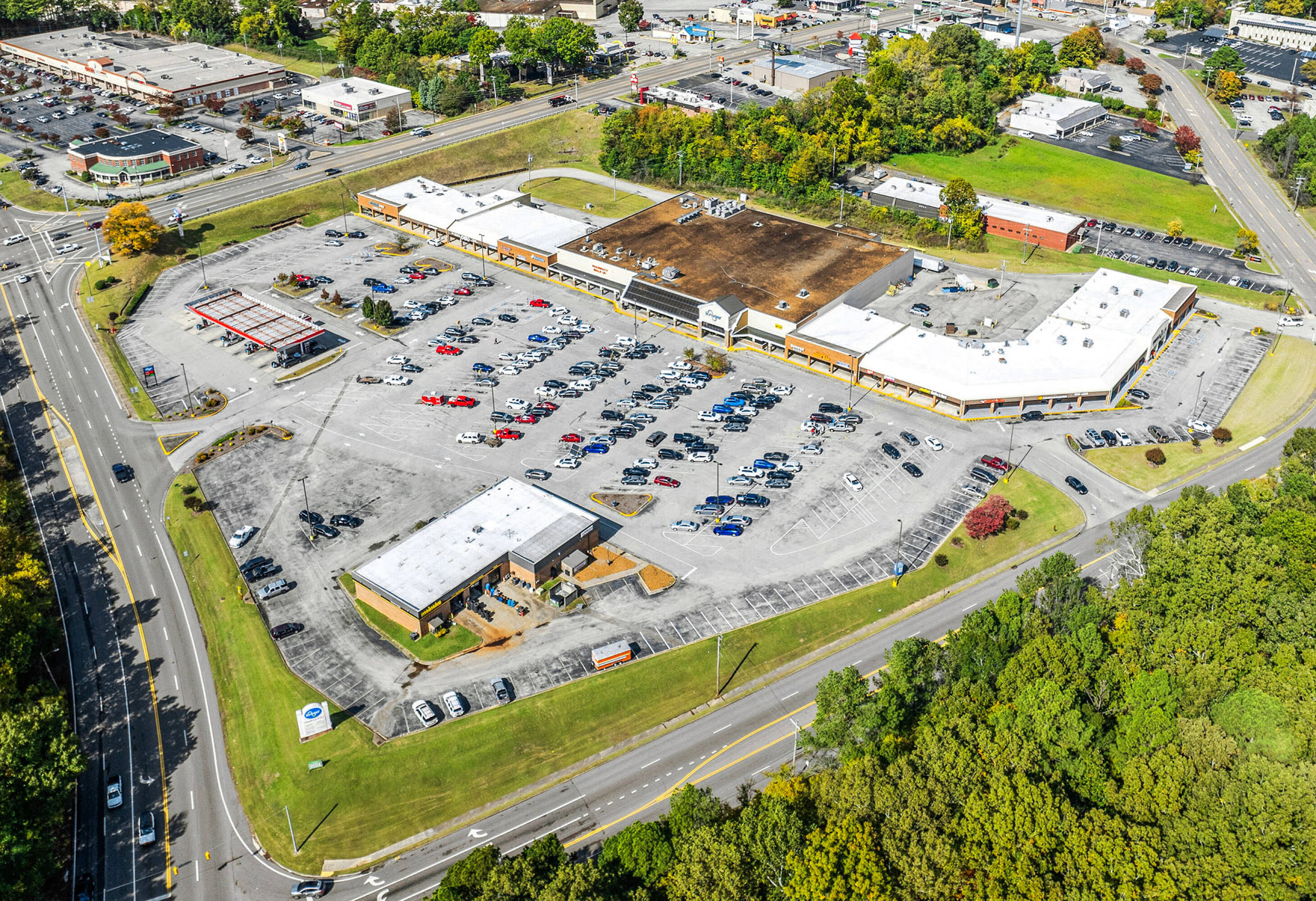 This property features: Anchored by Kroger, a major grocery retailer.; Features a Kroger fuel center for added convenience.; Located at the intersection of North Parkway and South Highland Avenue.