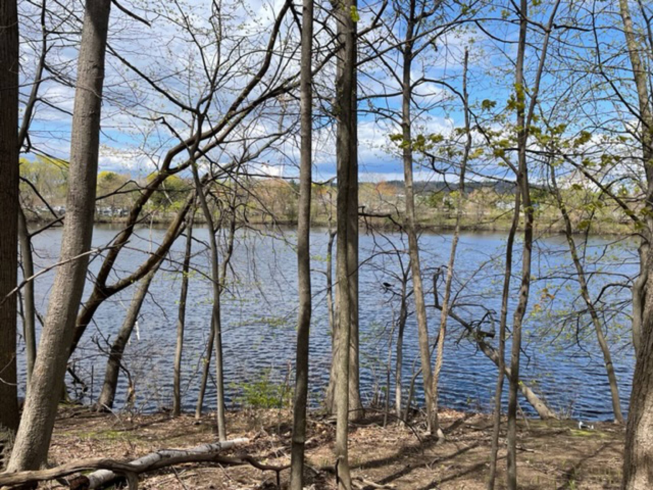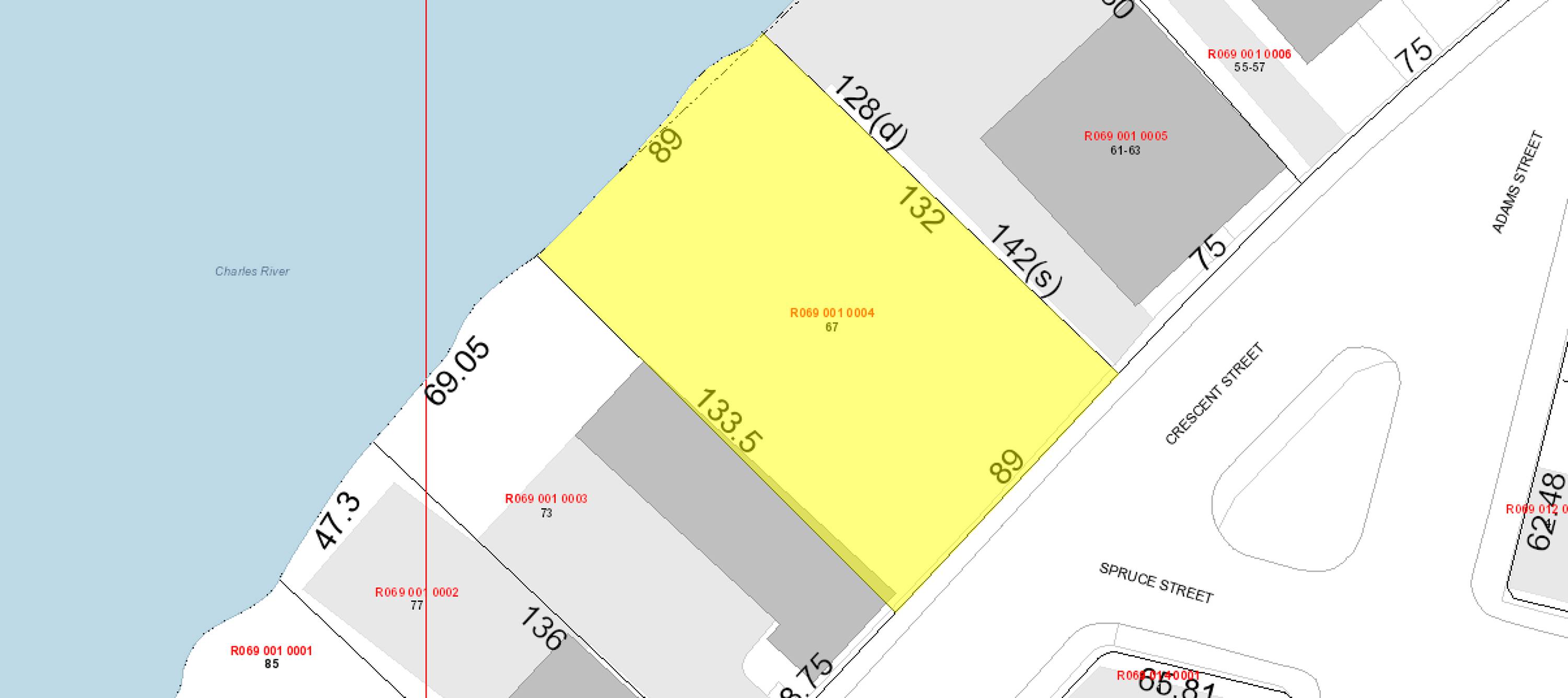 Desirable wooded lot with Charles River views, ready for development.