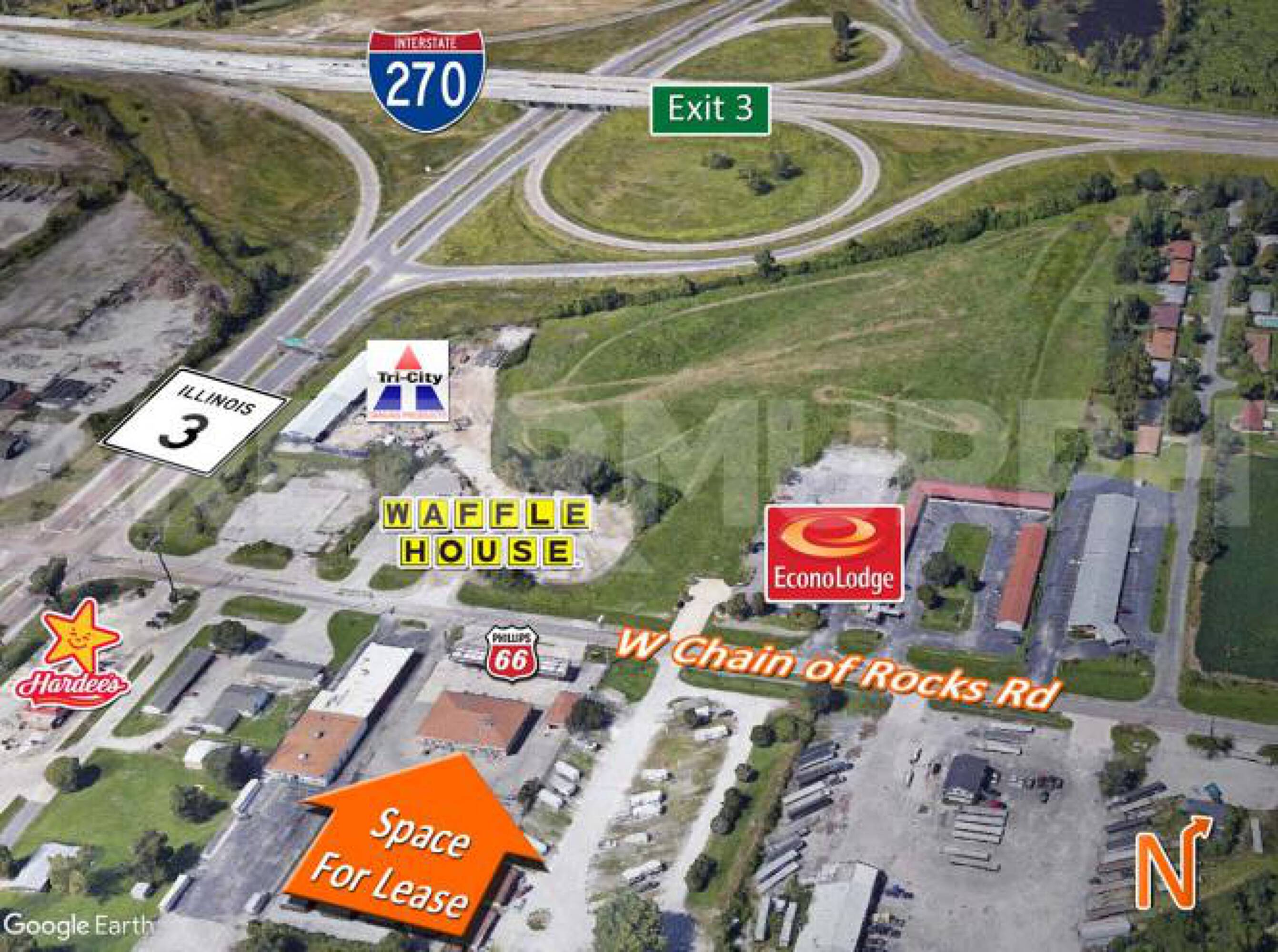 Retail space near I-270 interchange, suitable for various businesses.
