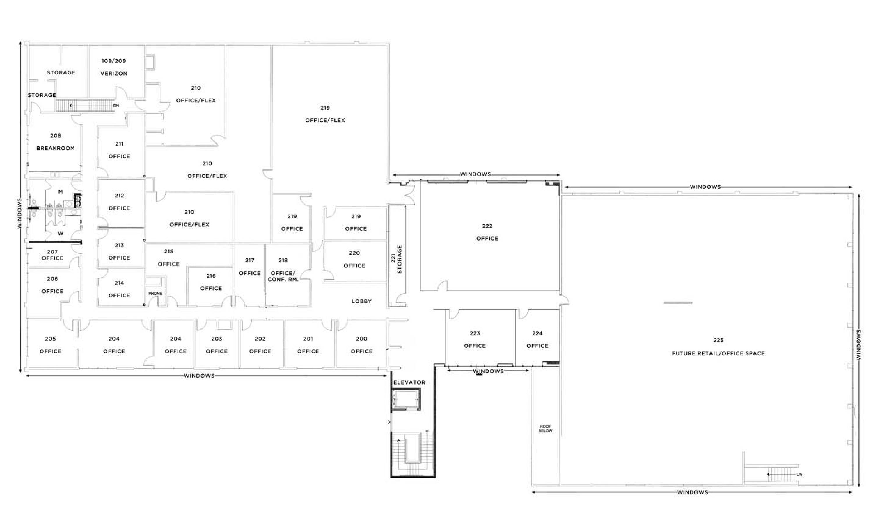 Recently renovated commercial property with retail and office spaces.