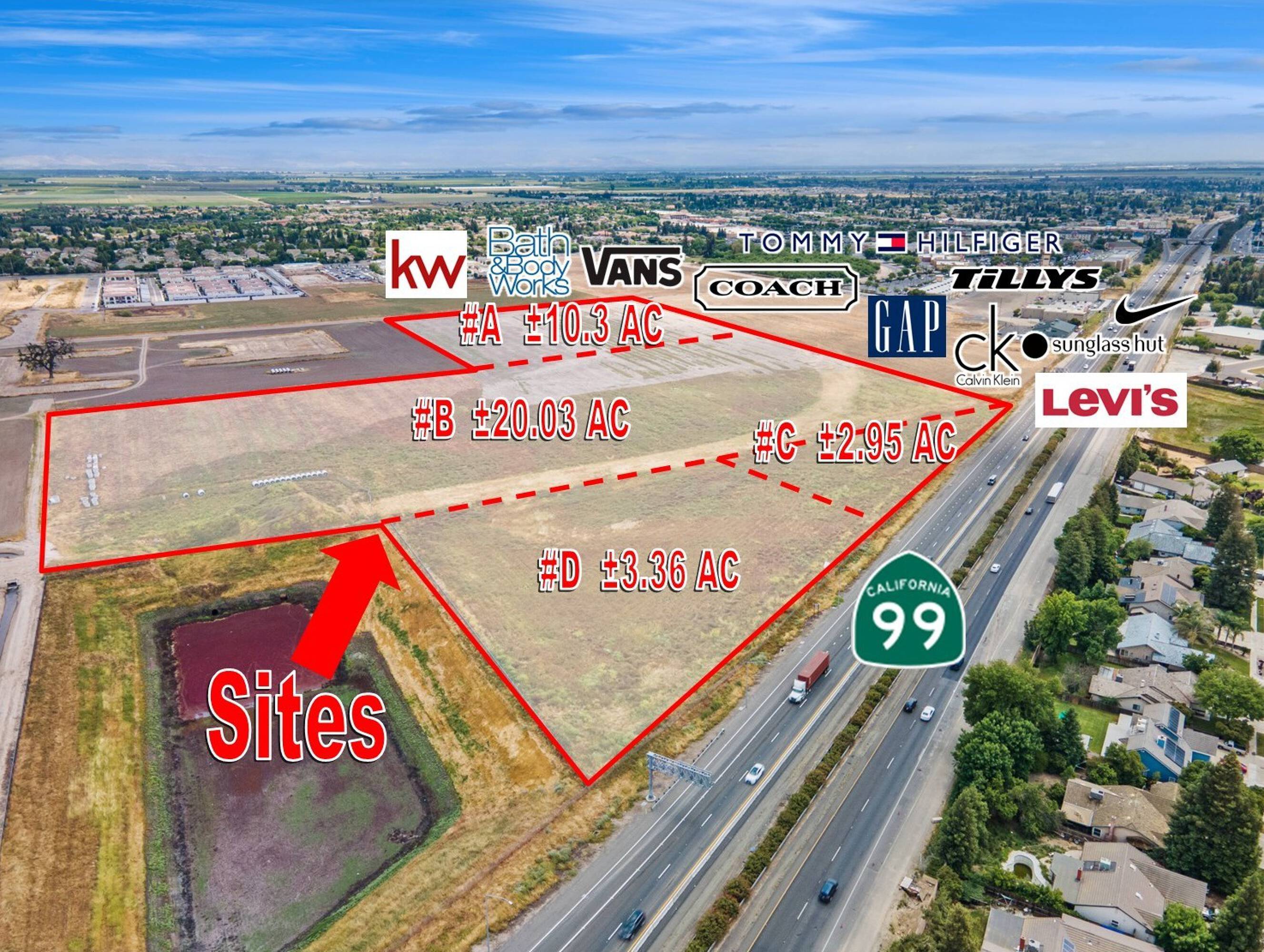 Highway-fronting land suitable for retail development near Tulare Outlets.