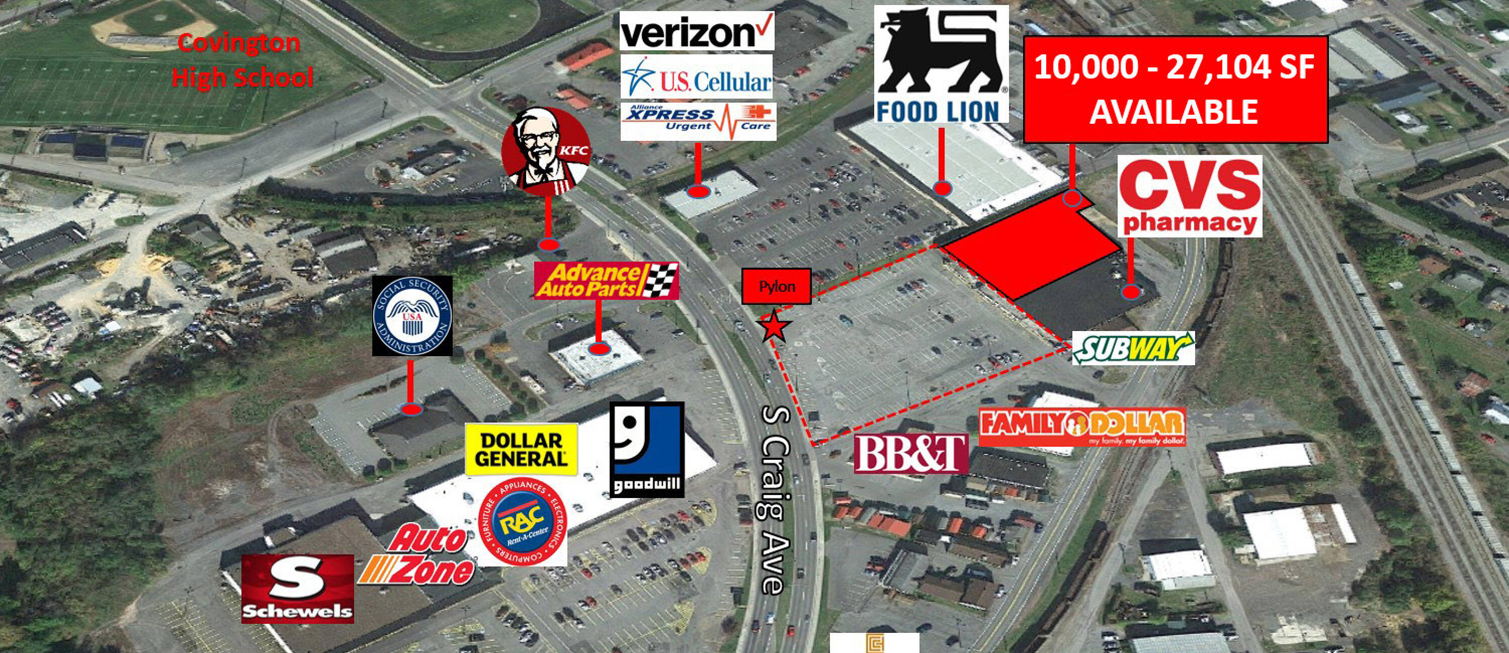 Retail space available for lease in Covington, Virginia.