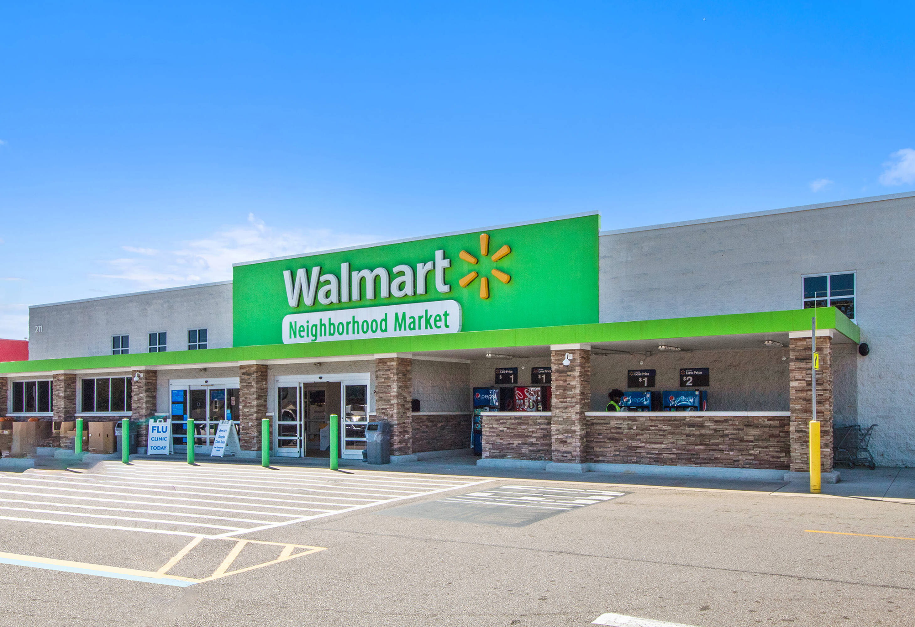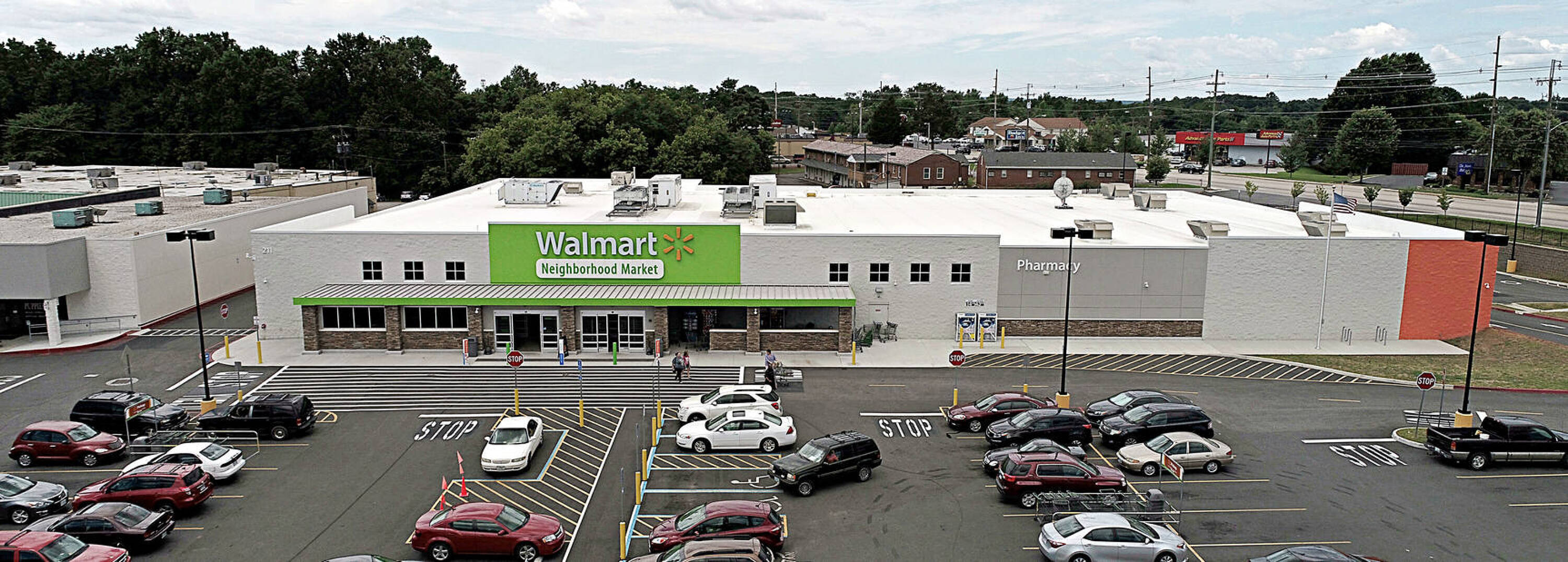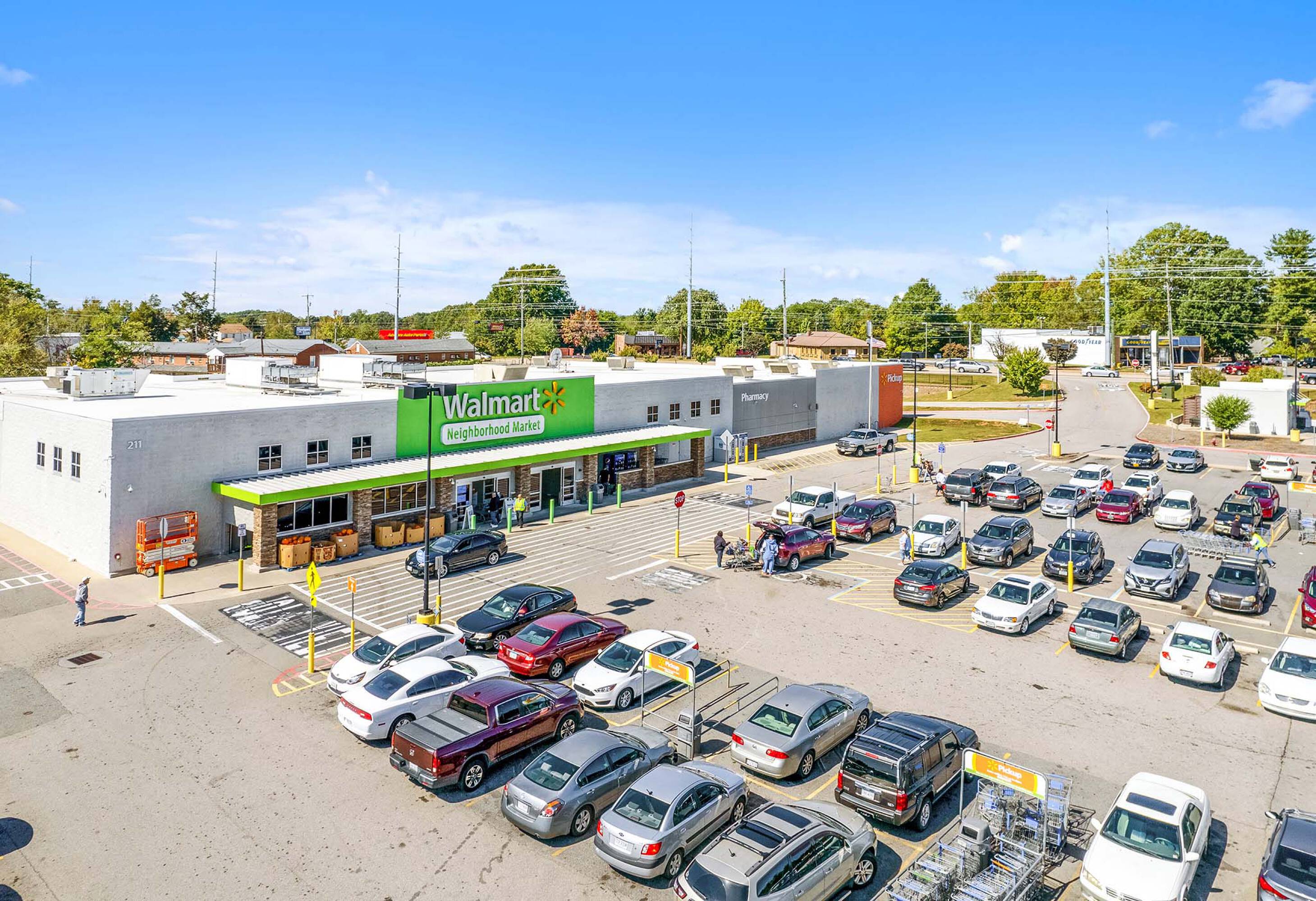 Retail space for lease anchored by Walmart Neighborhood Market.