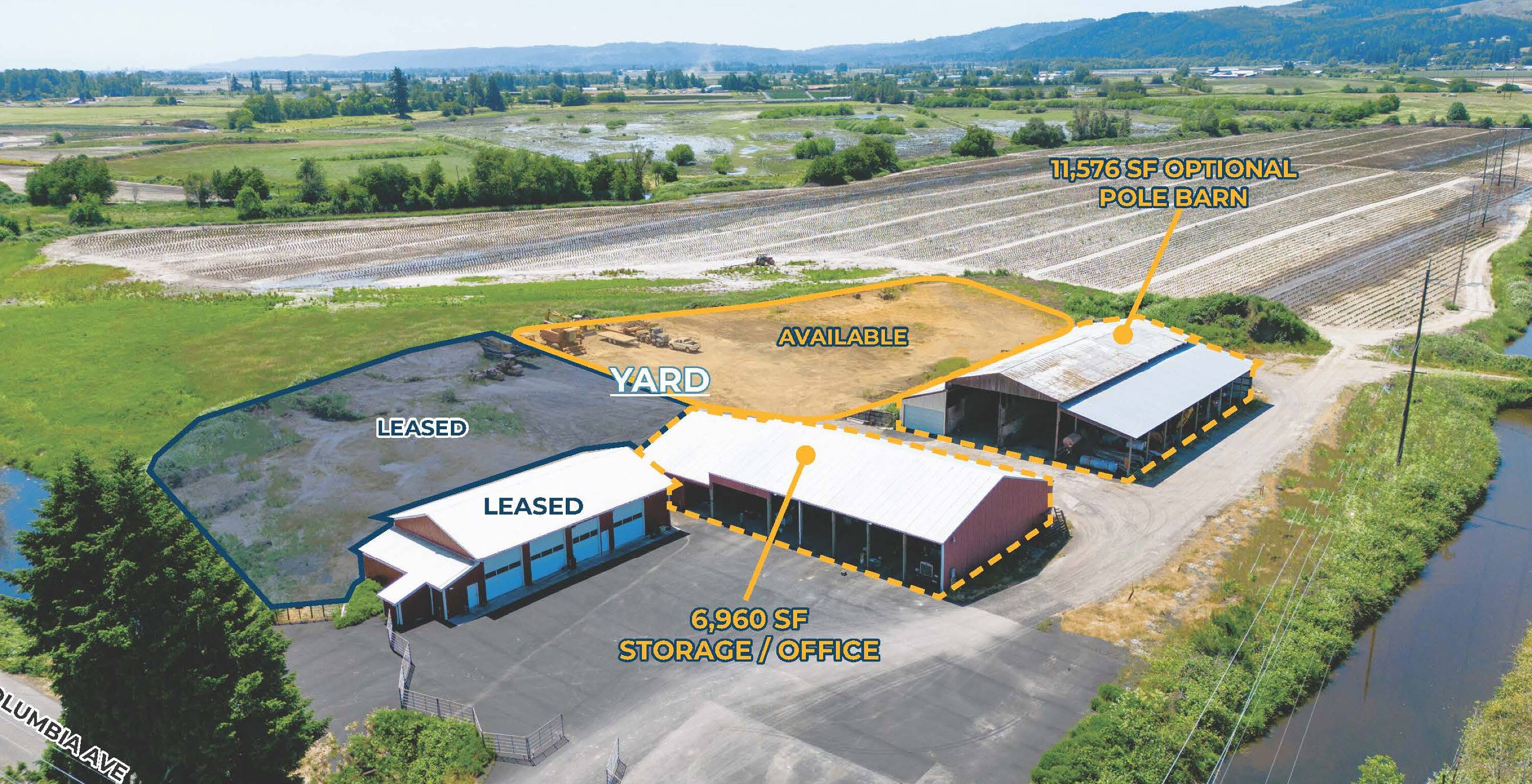 Commercial space for rent with a one-acre yard.