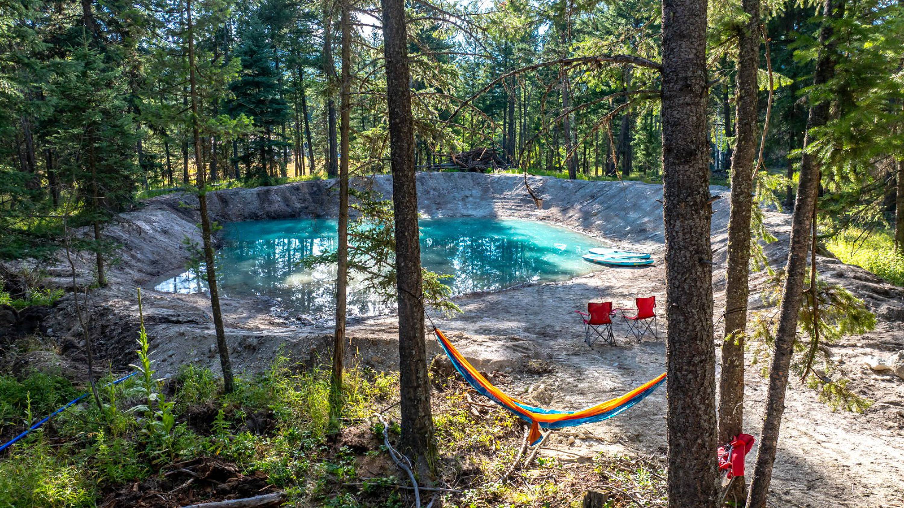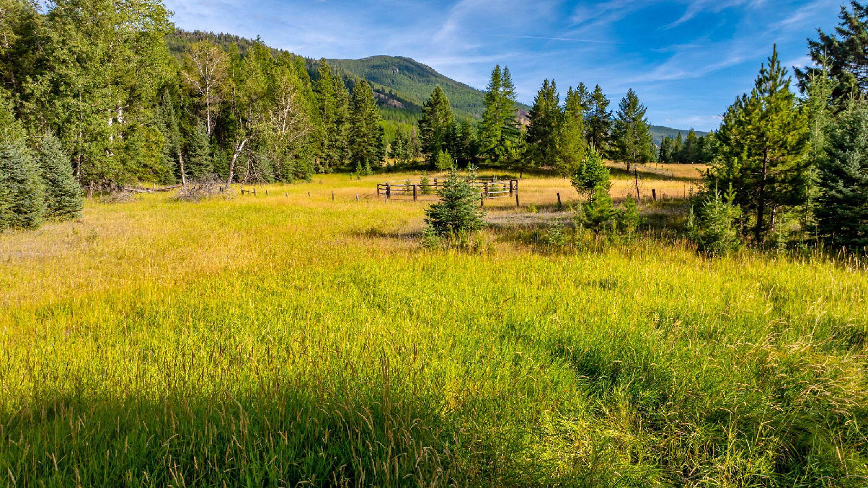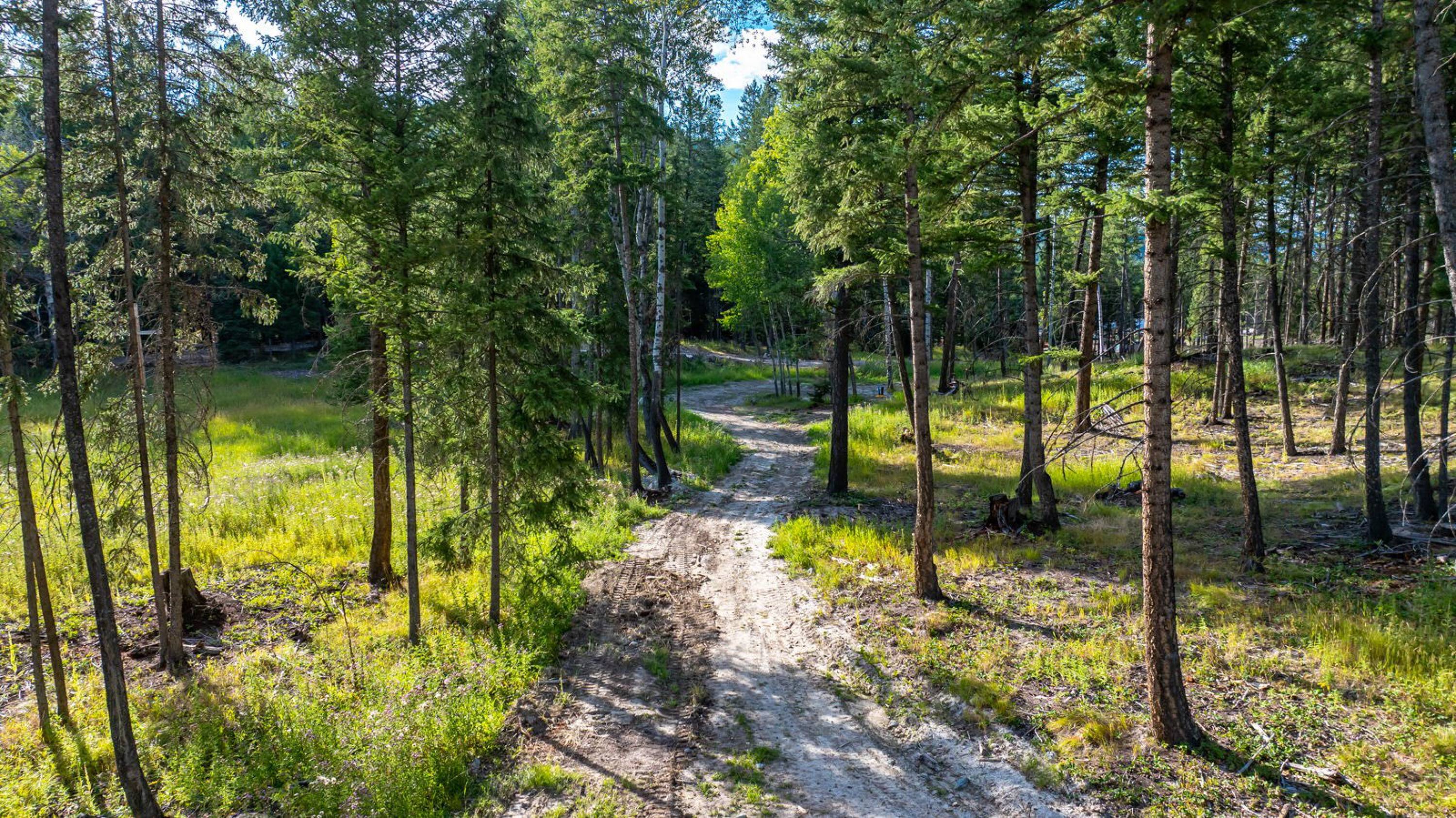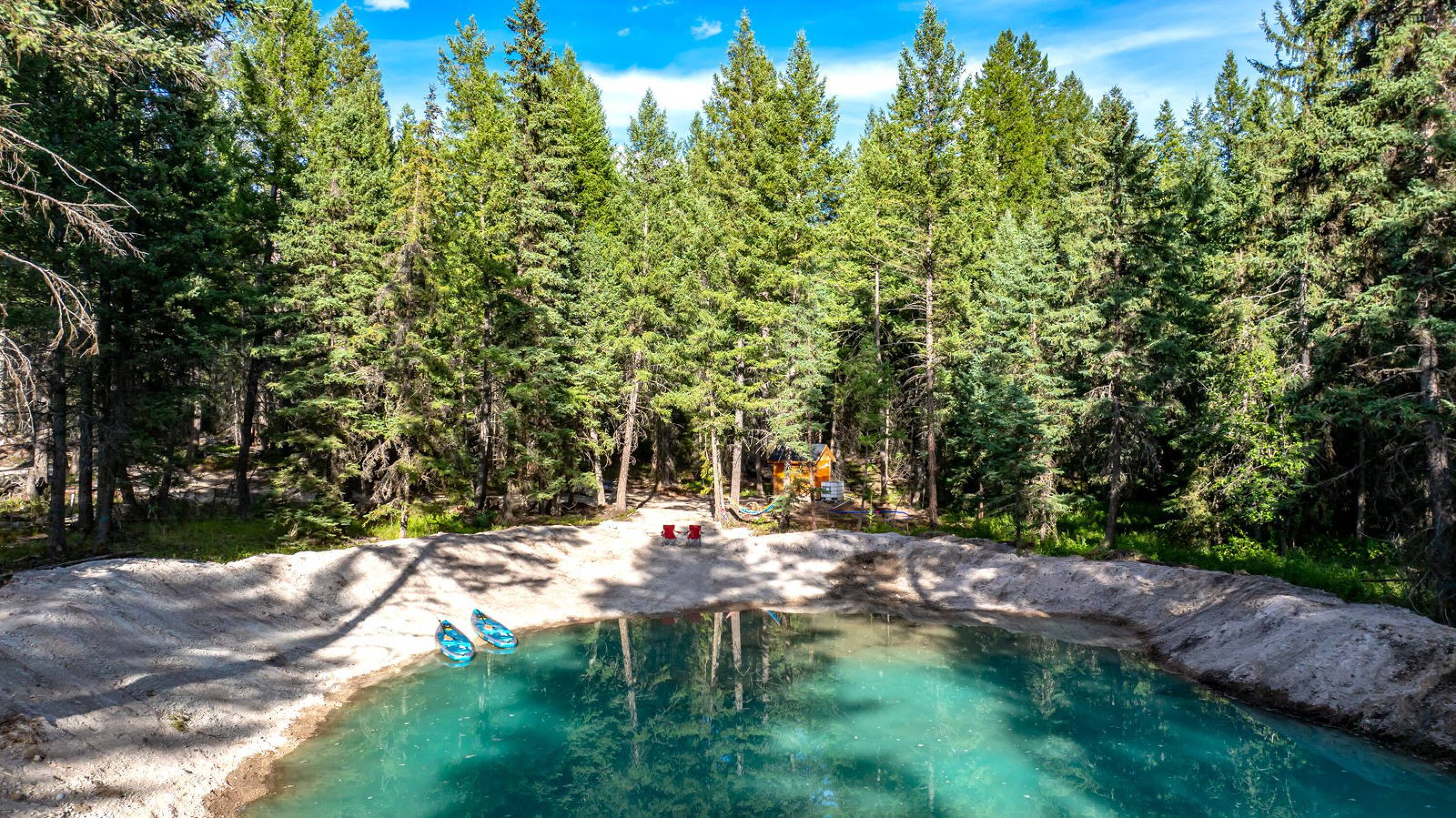 This 10-acre property features lush meadows and mature timber. A completed tiny home is included. The private setting contains two wells, a pond, and a firepit area. It is located approximately 20 minutes from Kalispell. A new 3-bedroom septic system has been installed, which can accommodate additional development beyond the existing one-bedroom tiny home.