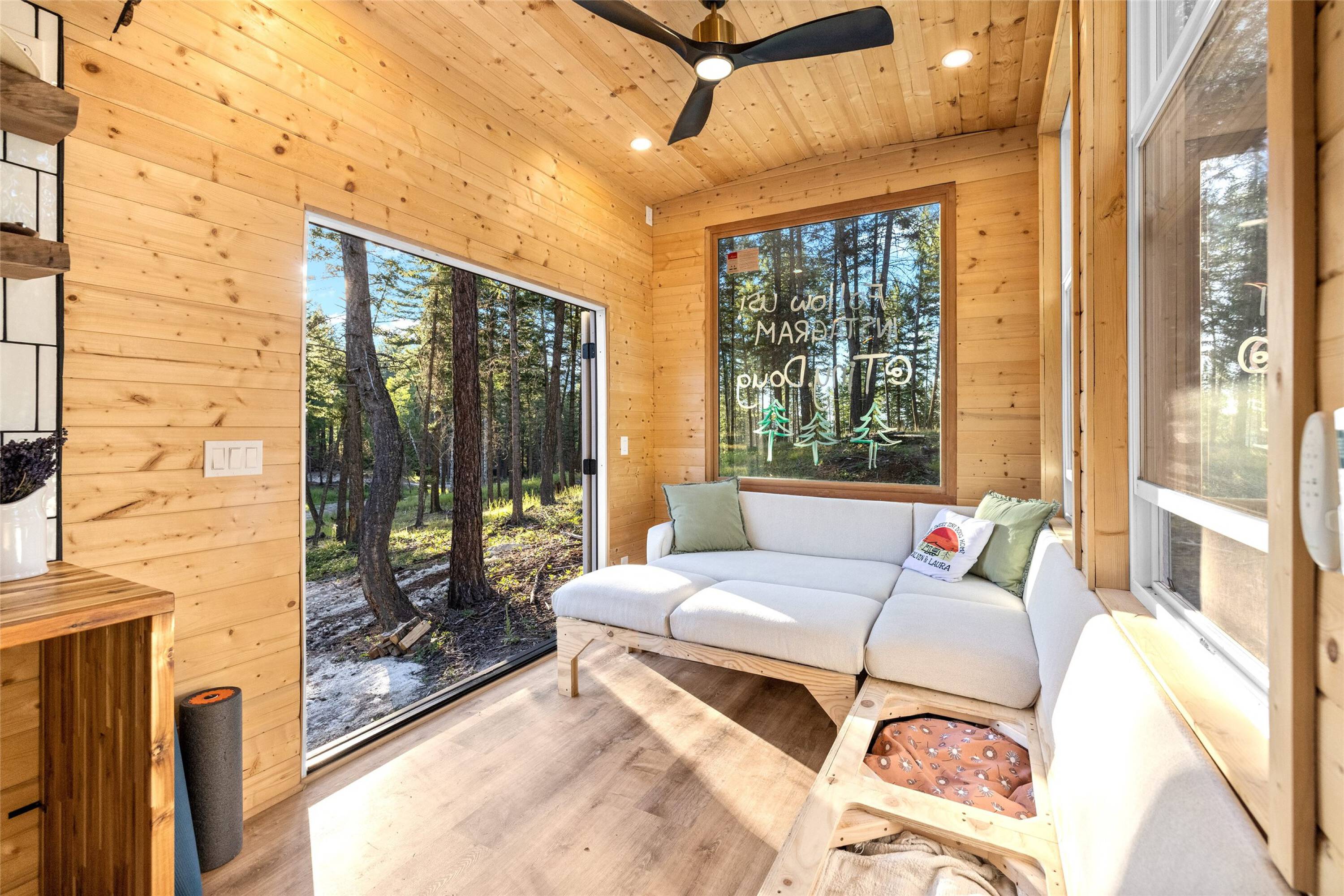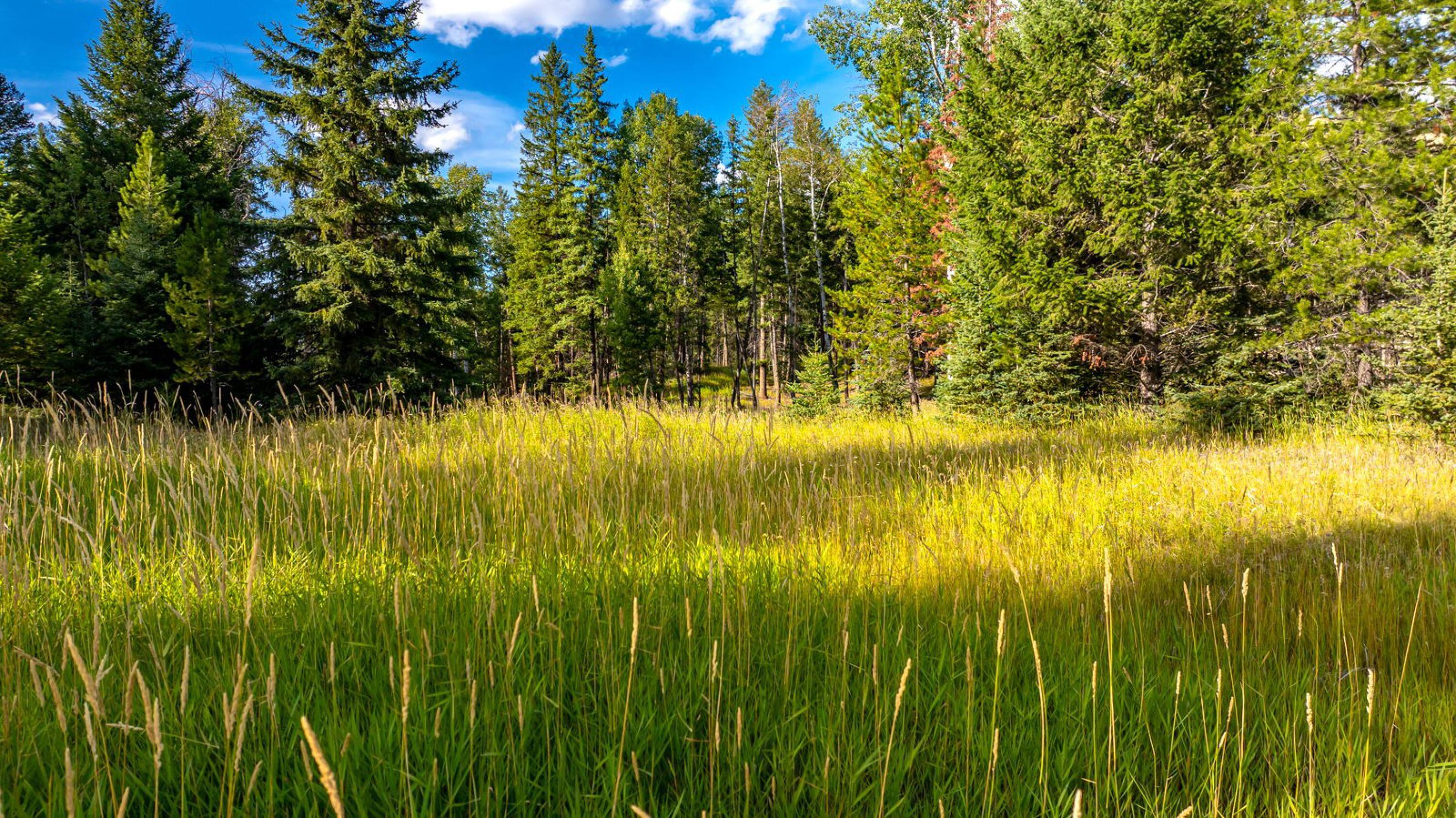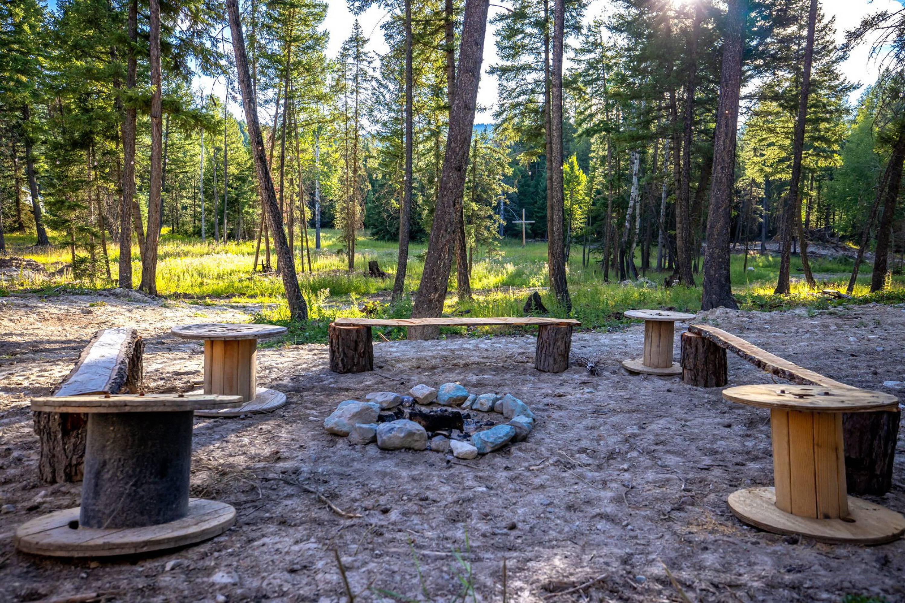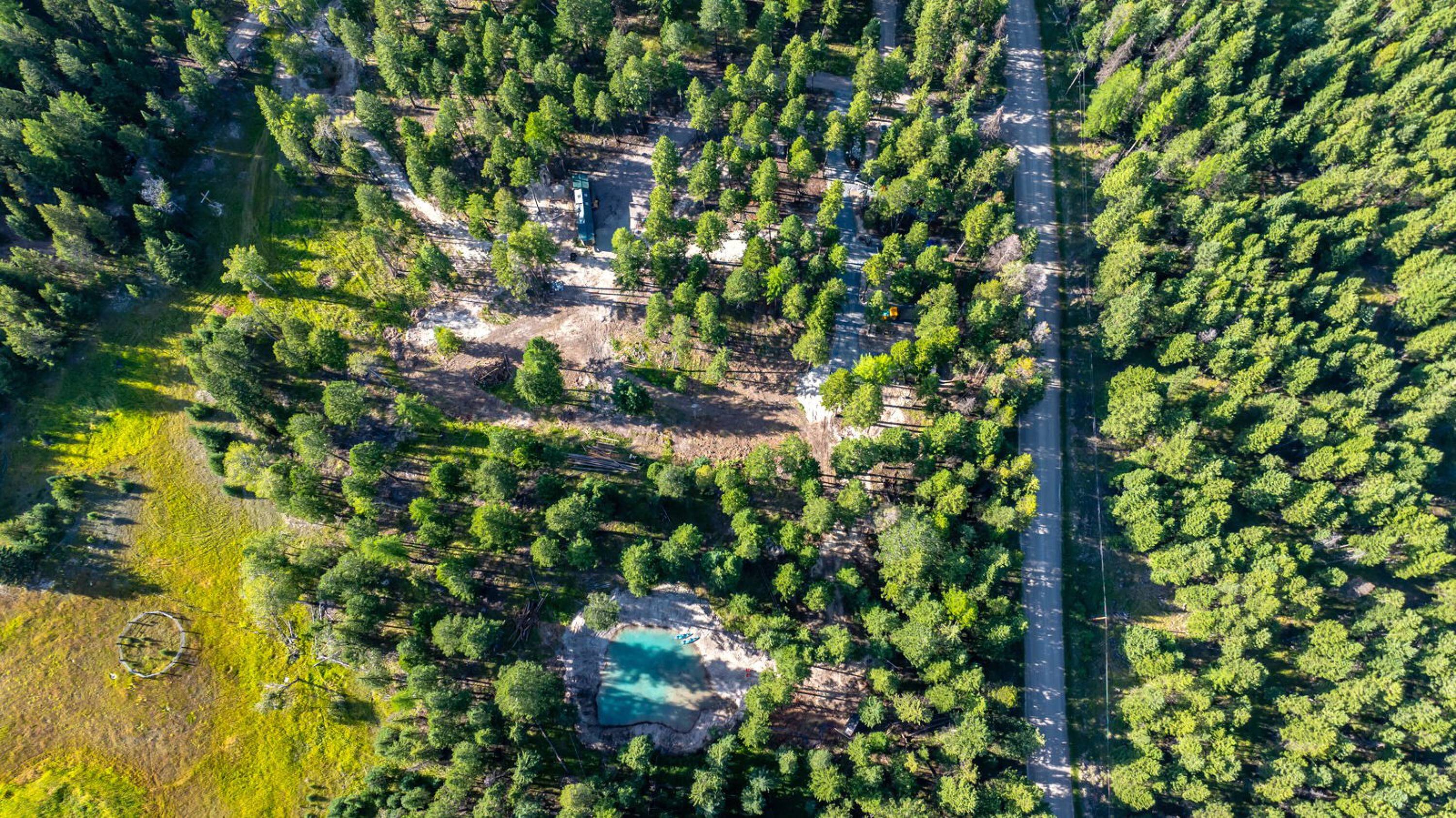 This 10-acre property features lush meadows and mature timber. A completed tiny home is included. The private setting contains two wells, a pond, and a firepit area. It is located approximately 20 minutes from Kalispell. A new 3-bedroom septic system has been installed, which can accommodate additional development beyond the existing one-bedroom tiny home.