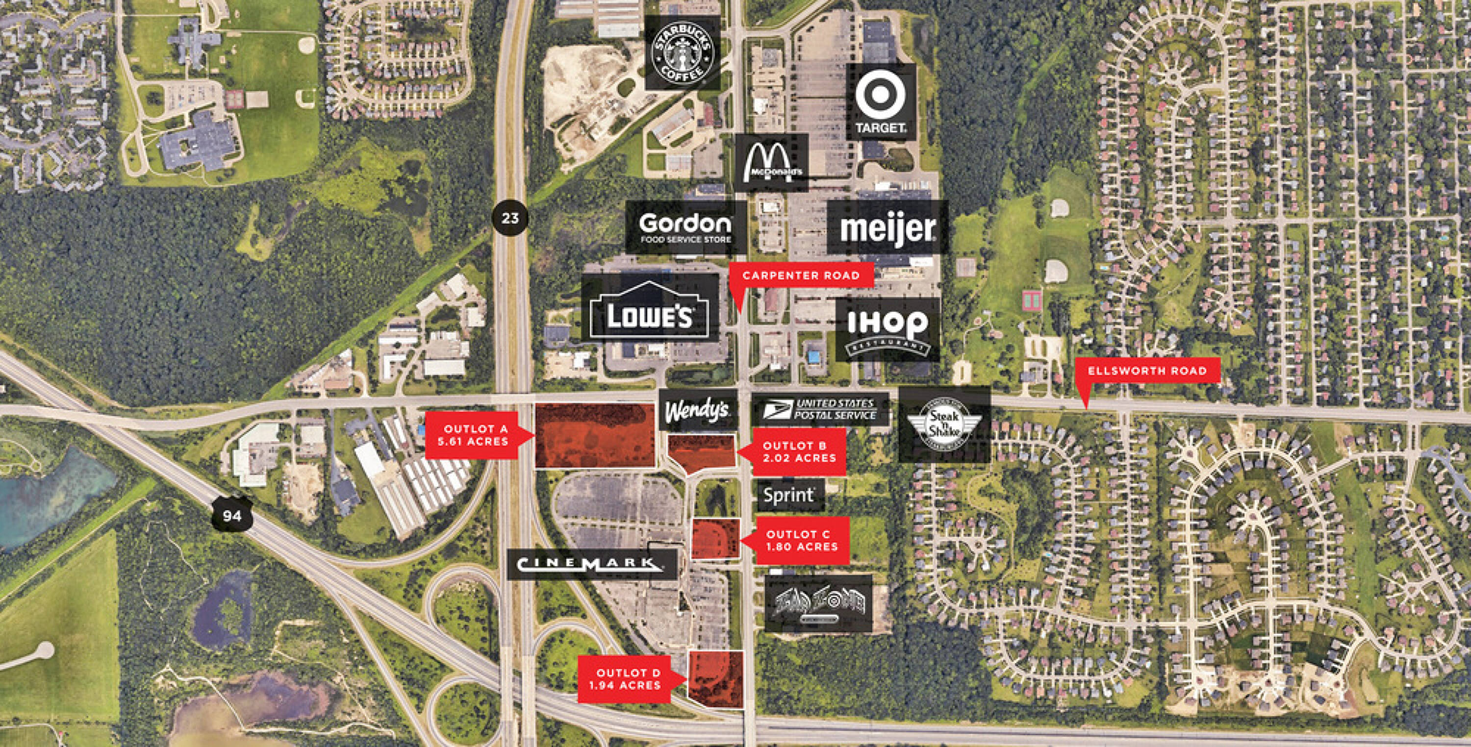 Property Features for 4 Outparcels On SW Corner of Ellsworth & Carpenter Road